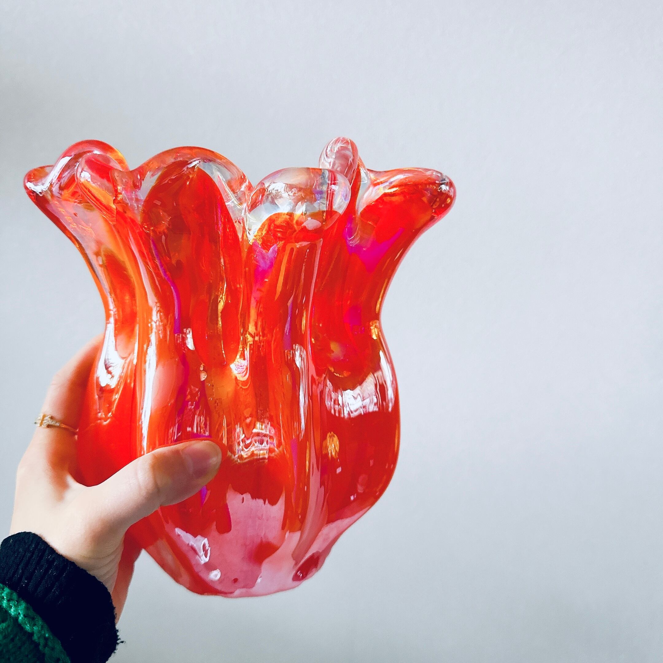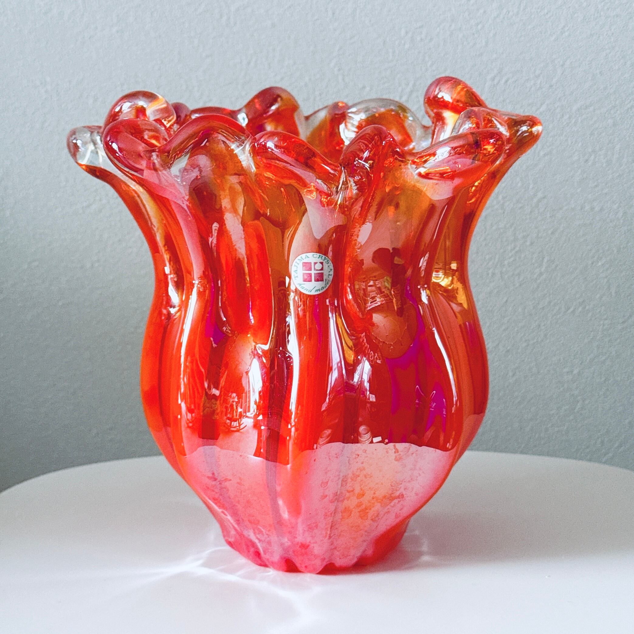 frill glass vase red