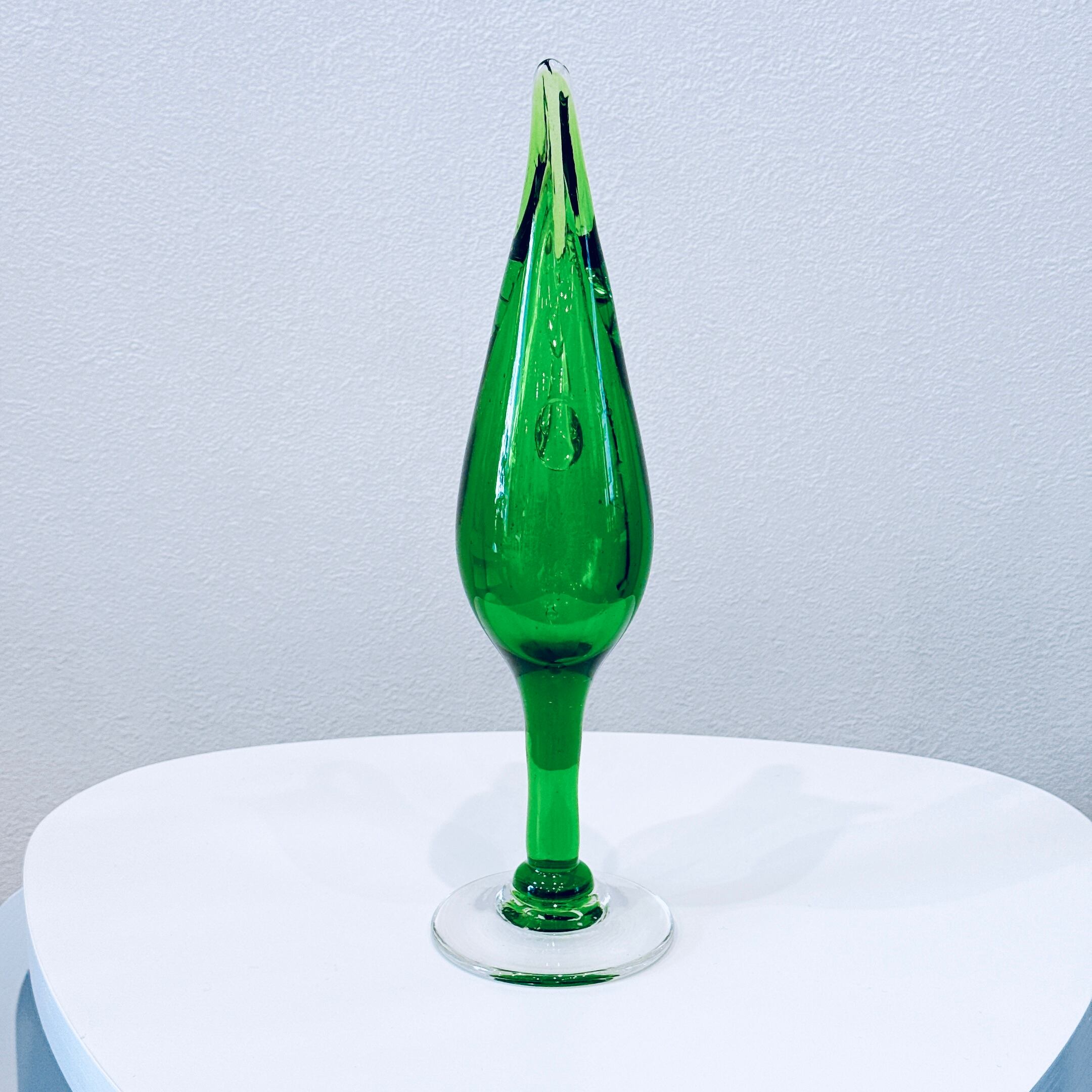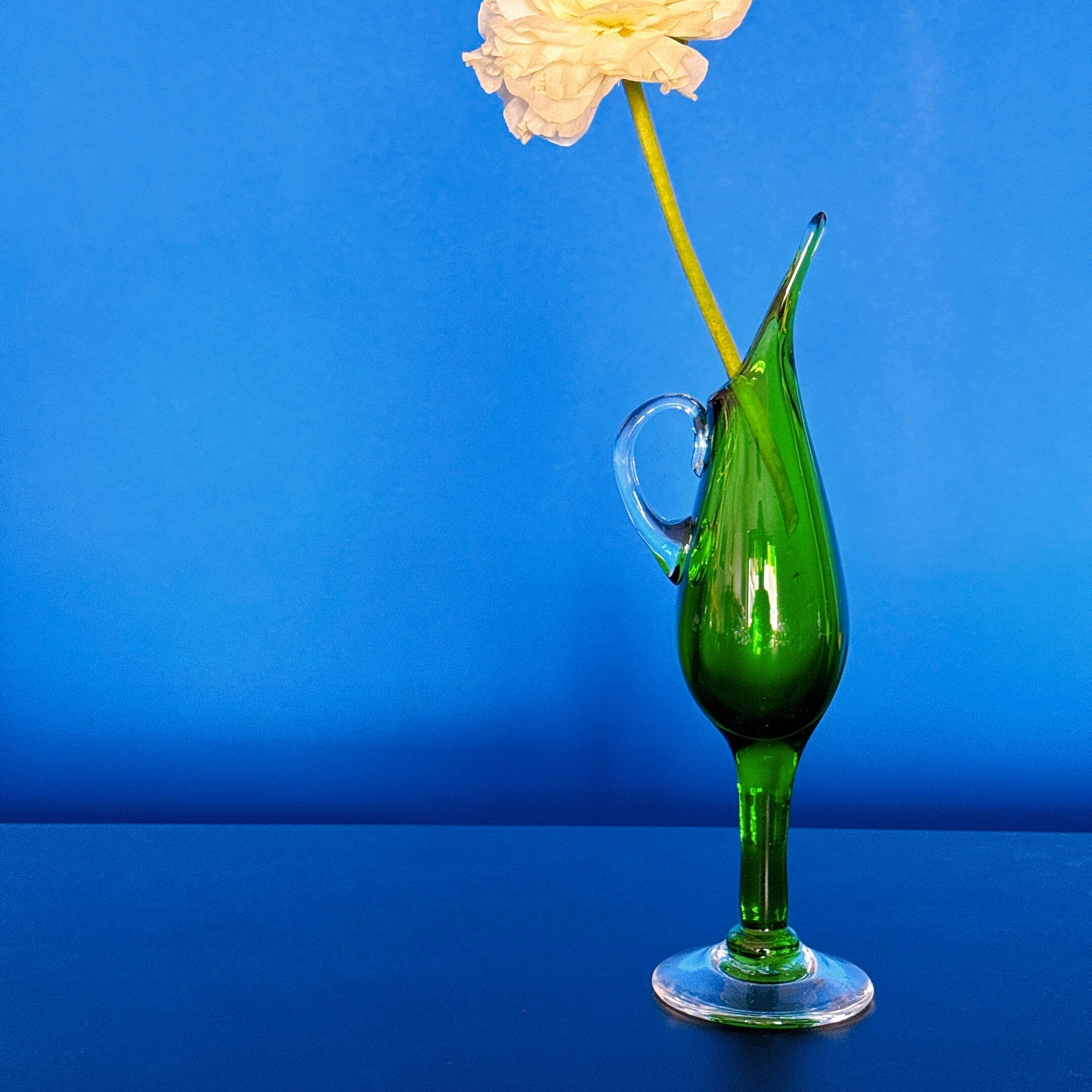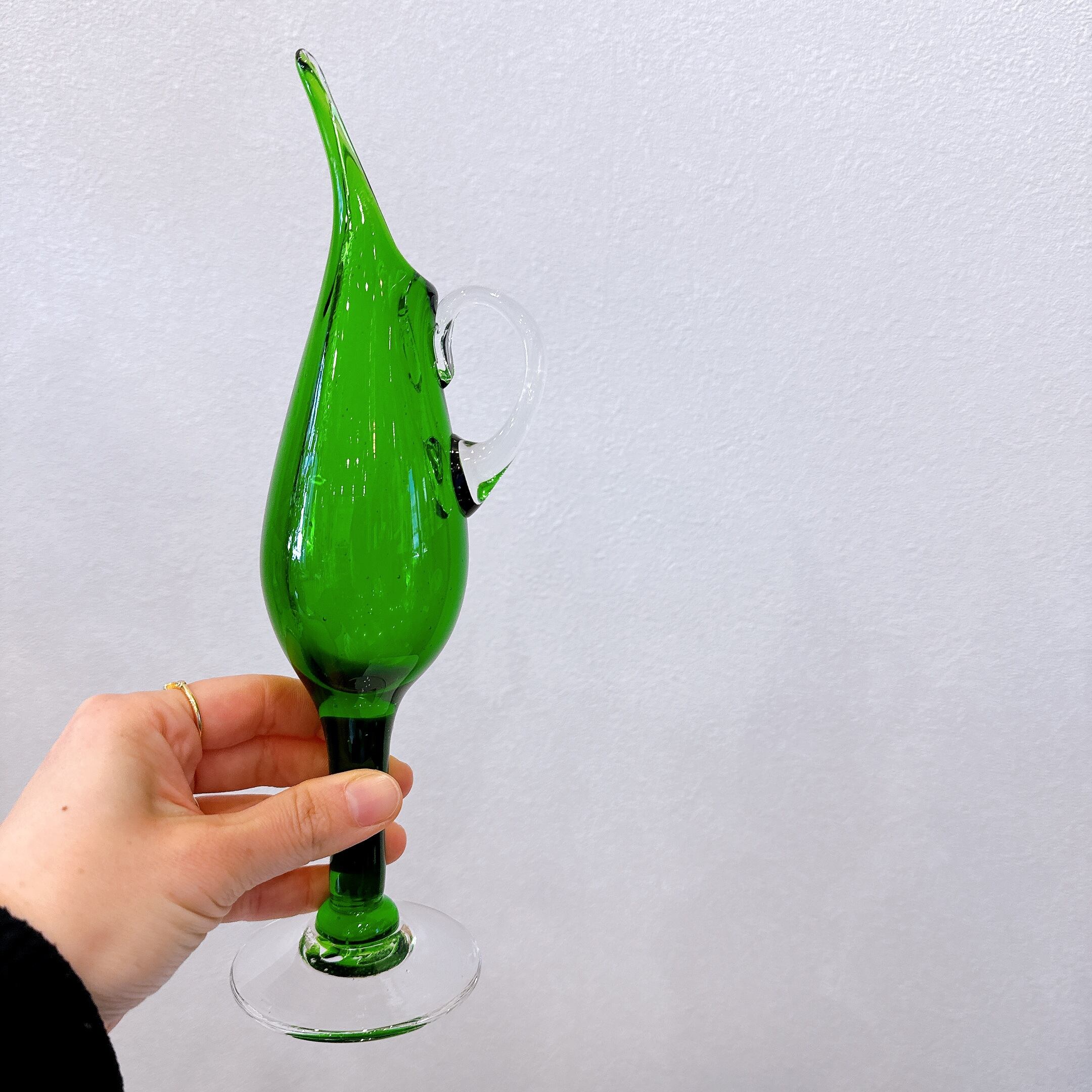 鳥のくちばしのような形がかっこいい、ガラス製のヴィンテージフラワーベースです。1点ものになります。