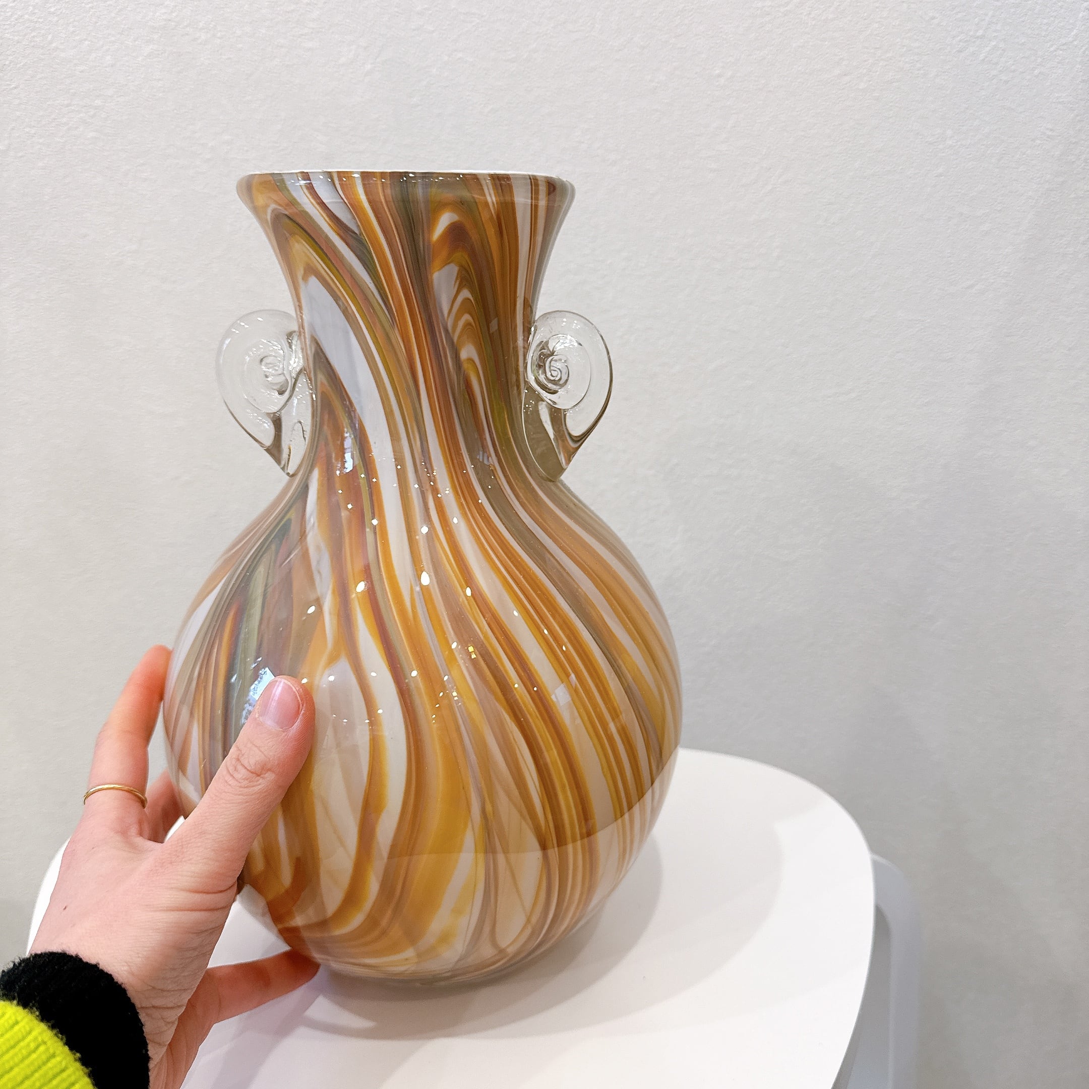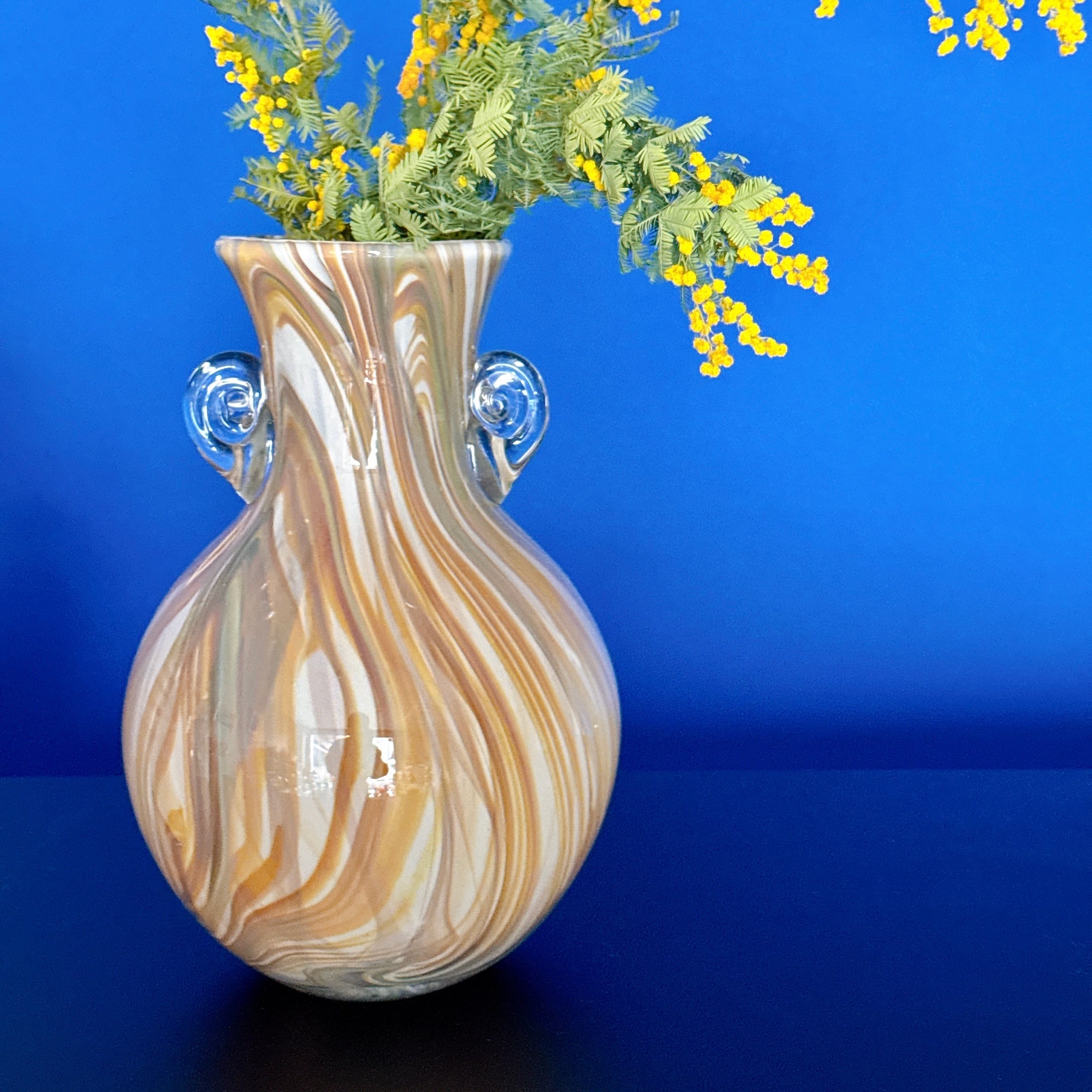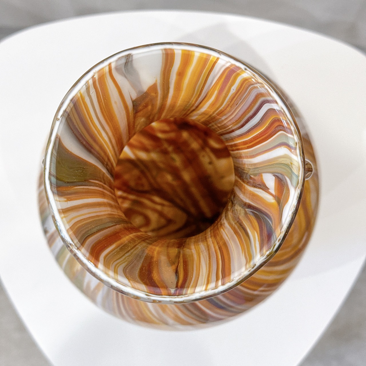 マーブル模様が美しい、昭和レトロなヴィンテージフラワーベースです。1点ものになります。