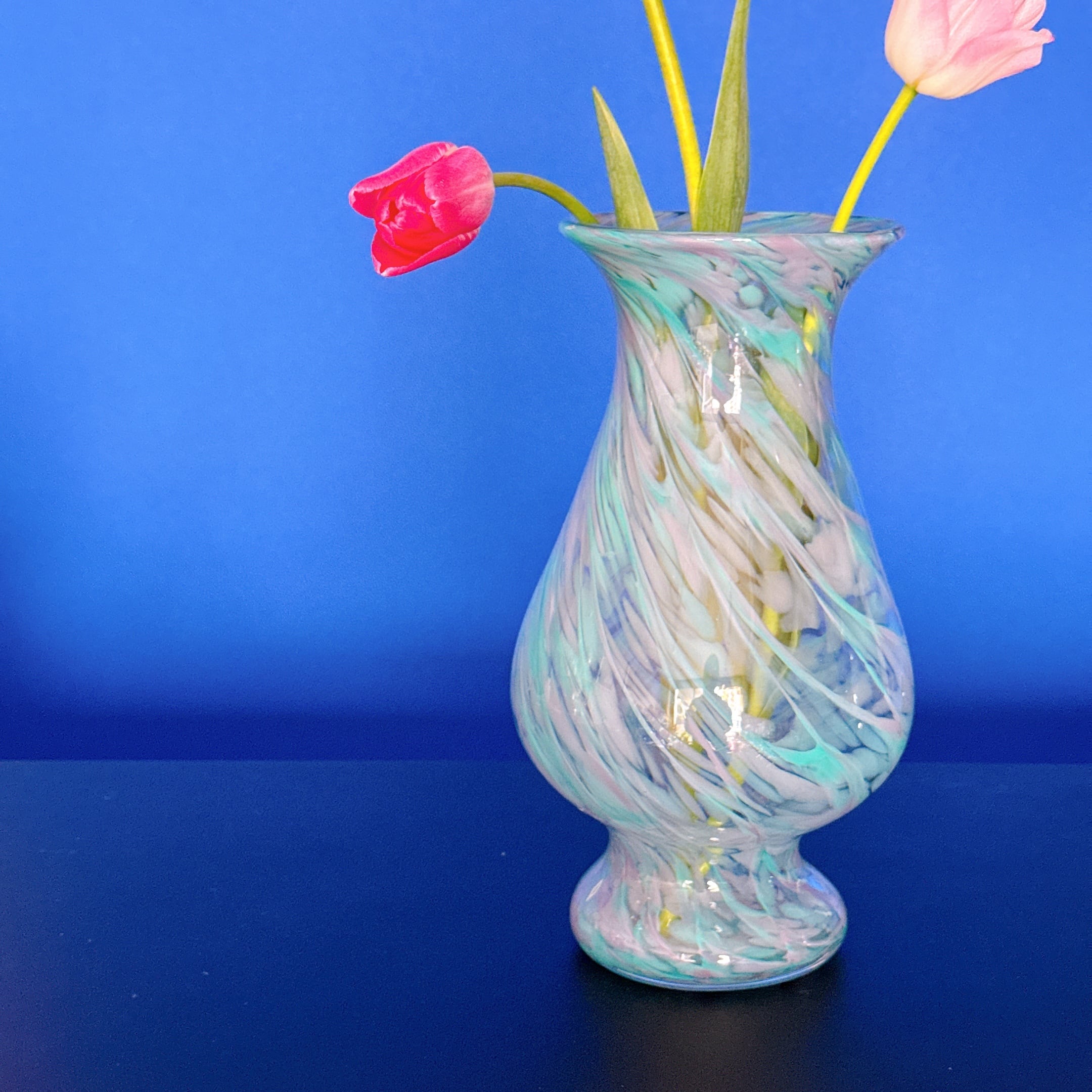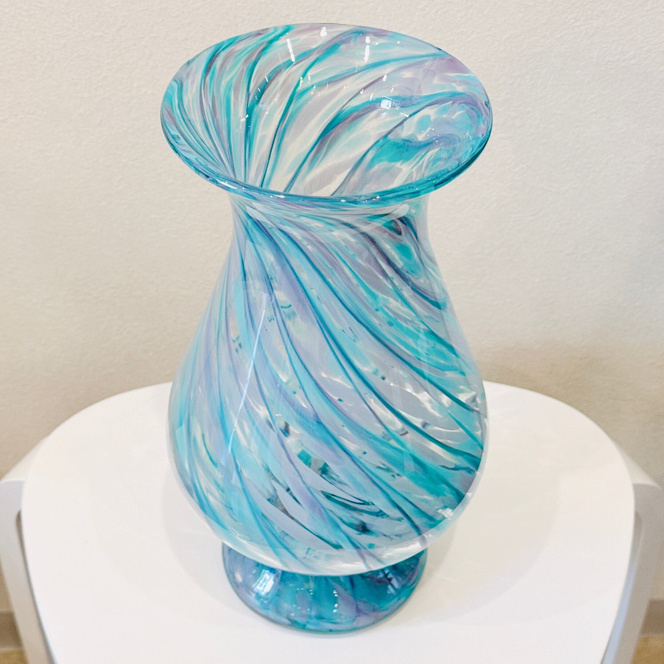 ブルーグレーの模様が美しい、昭和レトロなヴィンテージフラワーベースです。1点ものになります。