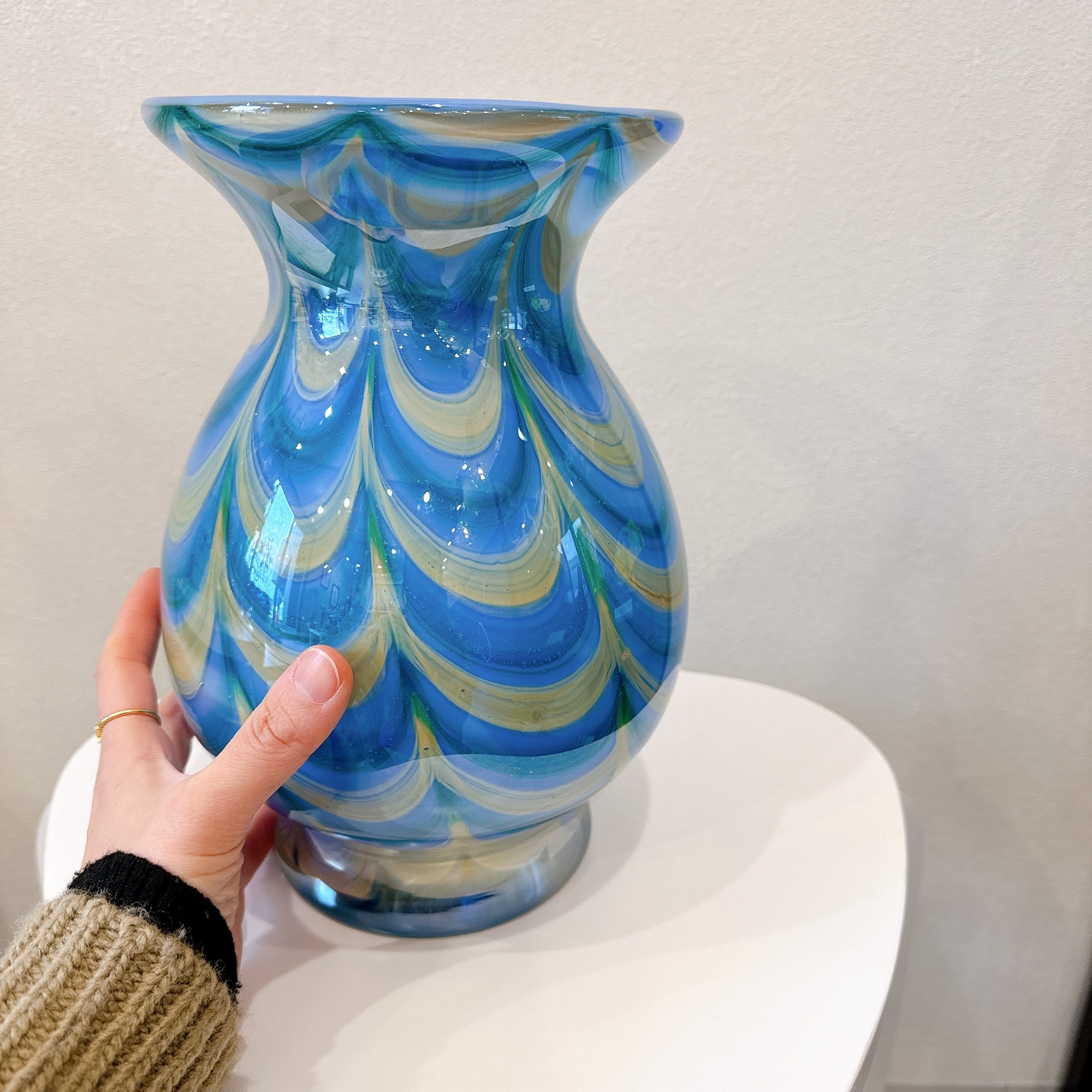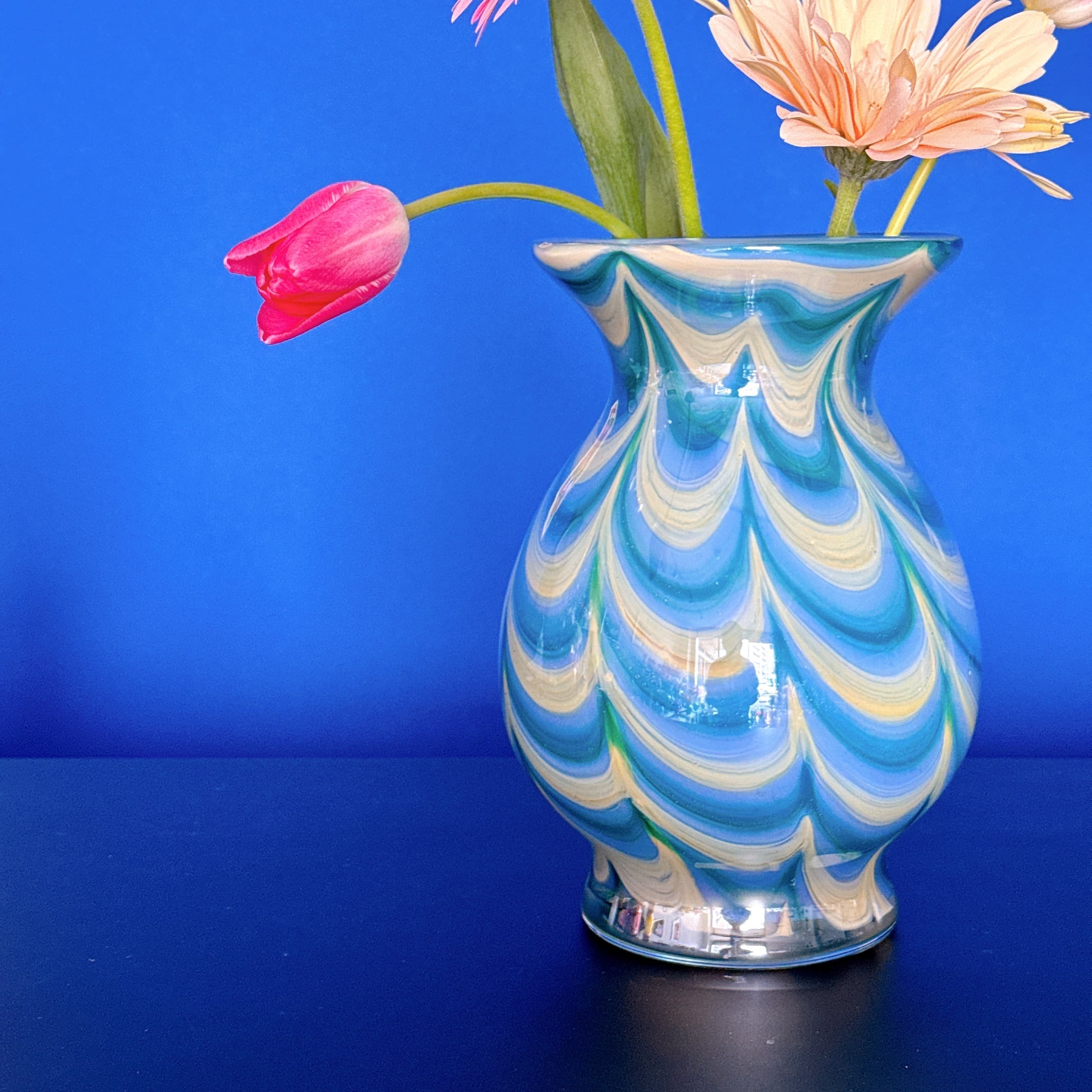 レトロなフリル模様が可愛い、昭和のレトロポップなヴィンテージフラワーベースです。1点ものになります。