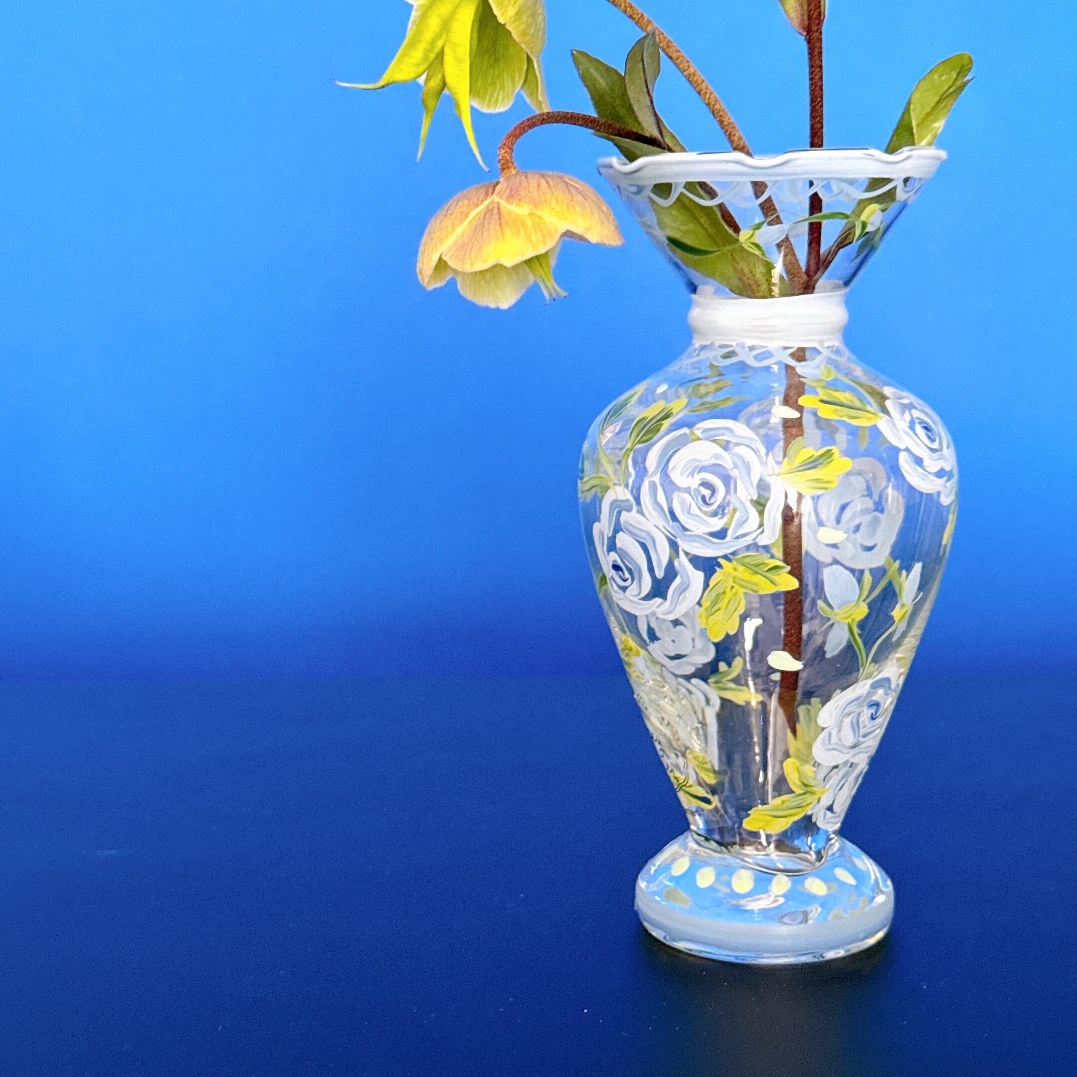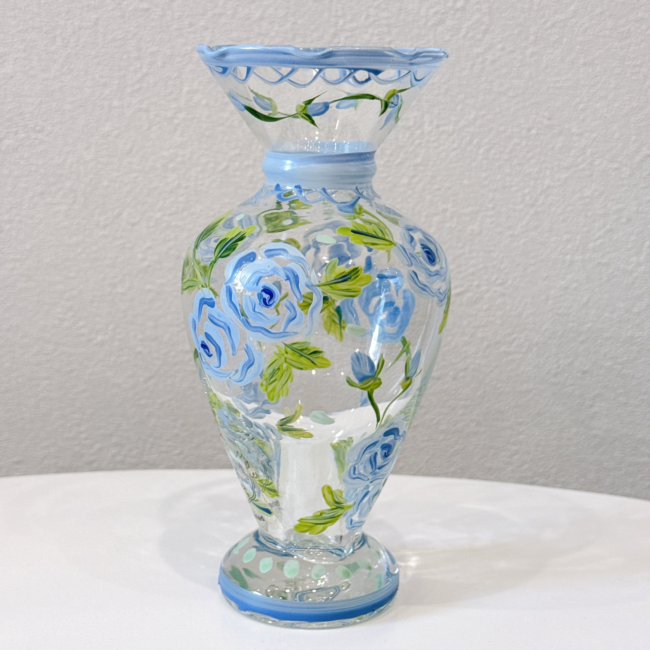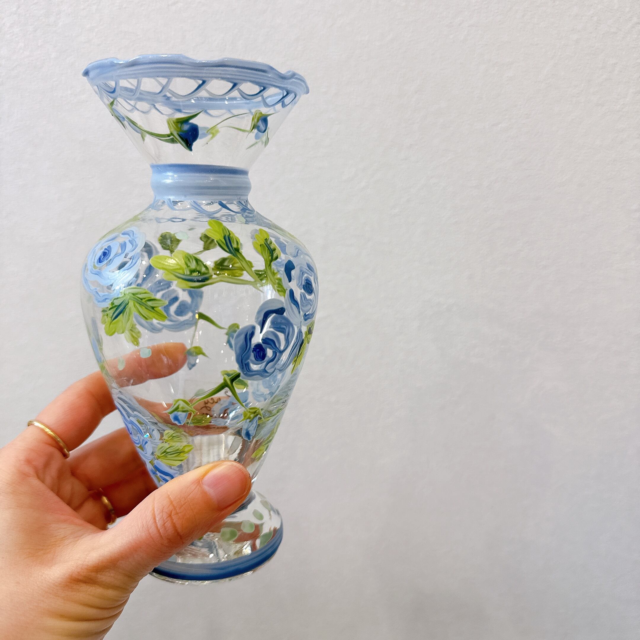hand painted glass vase blue
