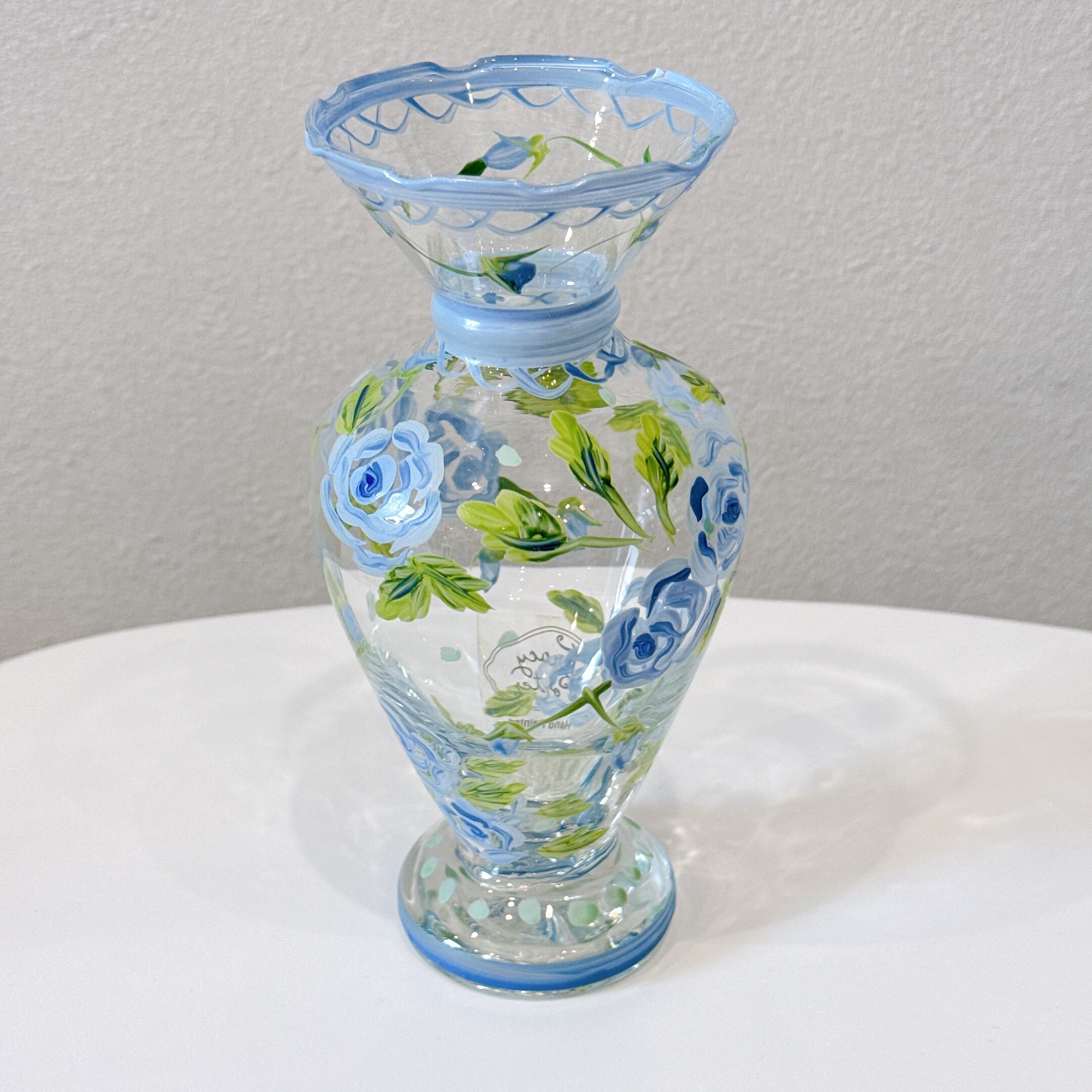 Tracy Porter Glass社のハンドペイントの花柄が可愛い、ヴィンテージフラワーベースです。1点ものになります。