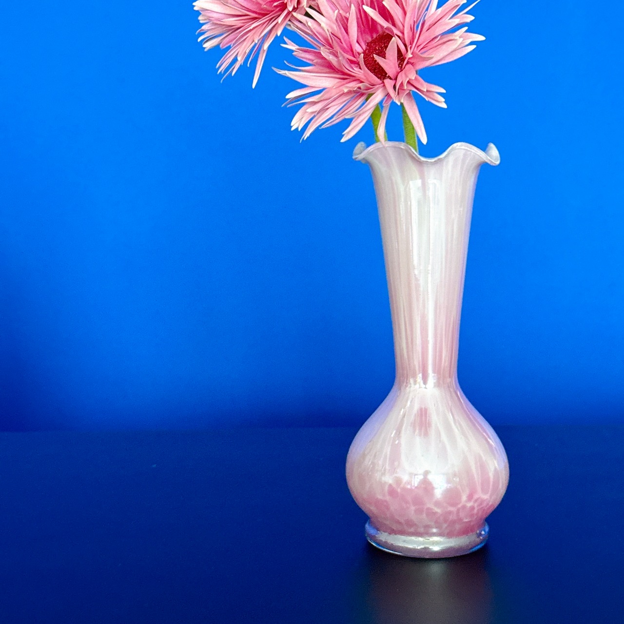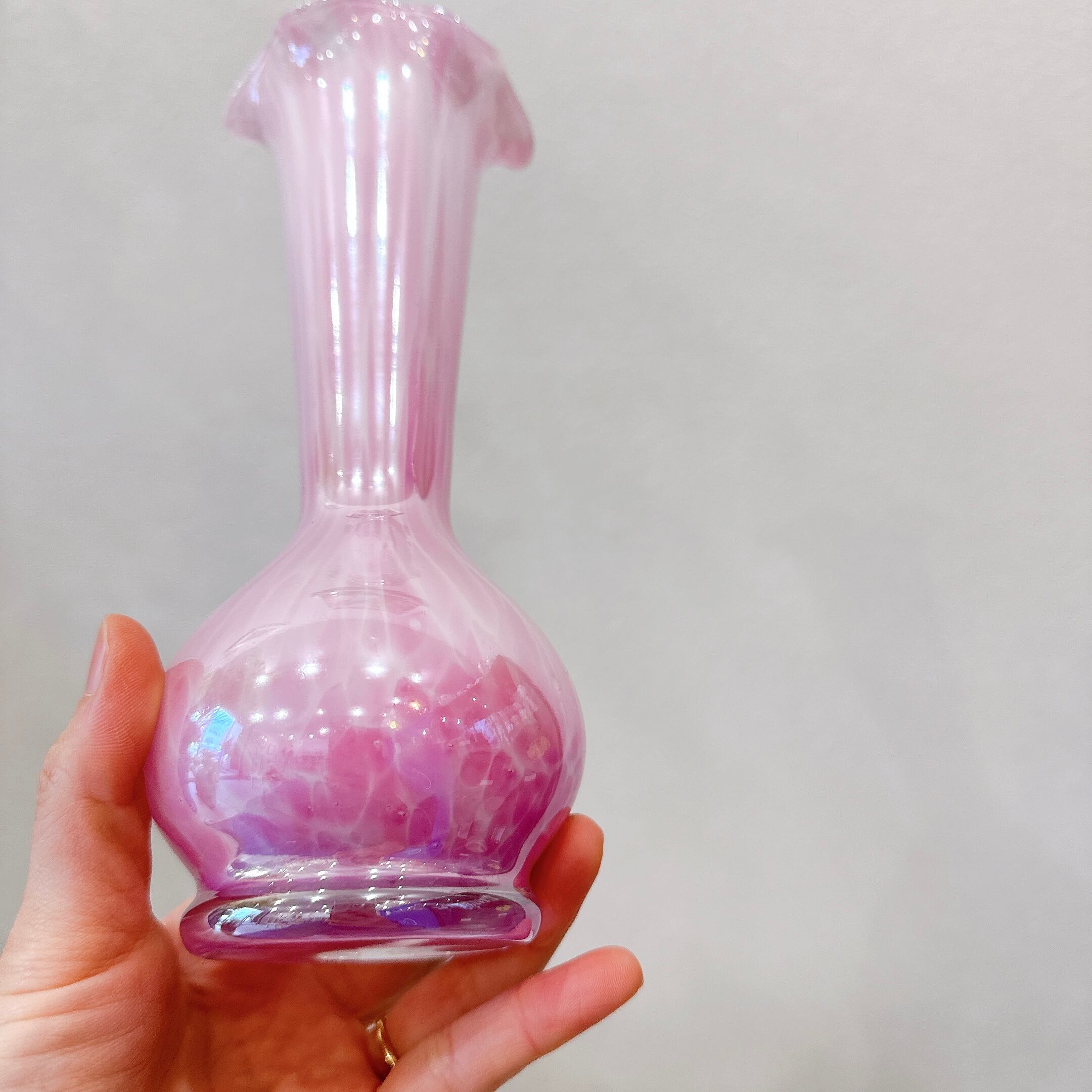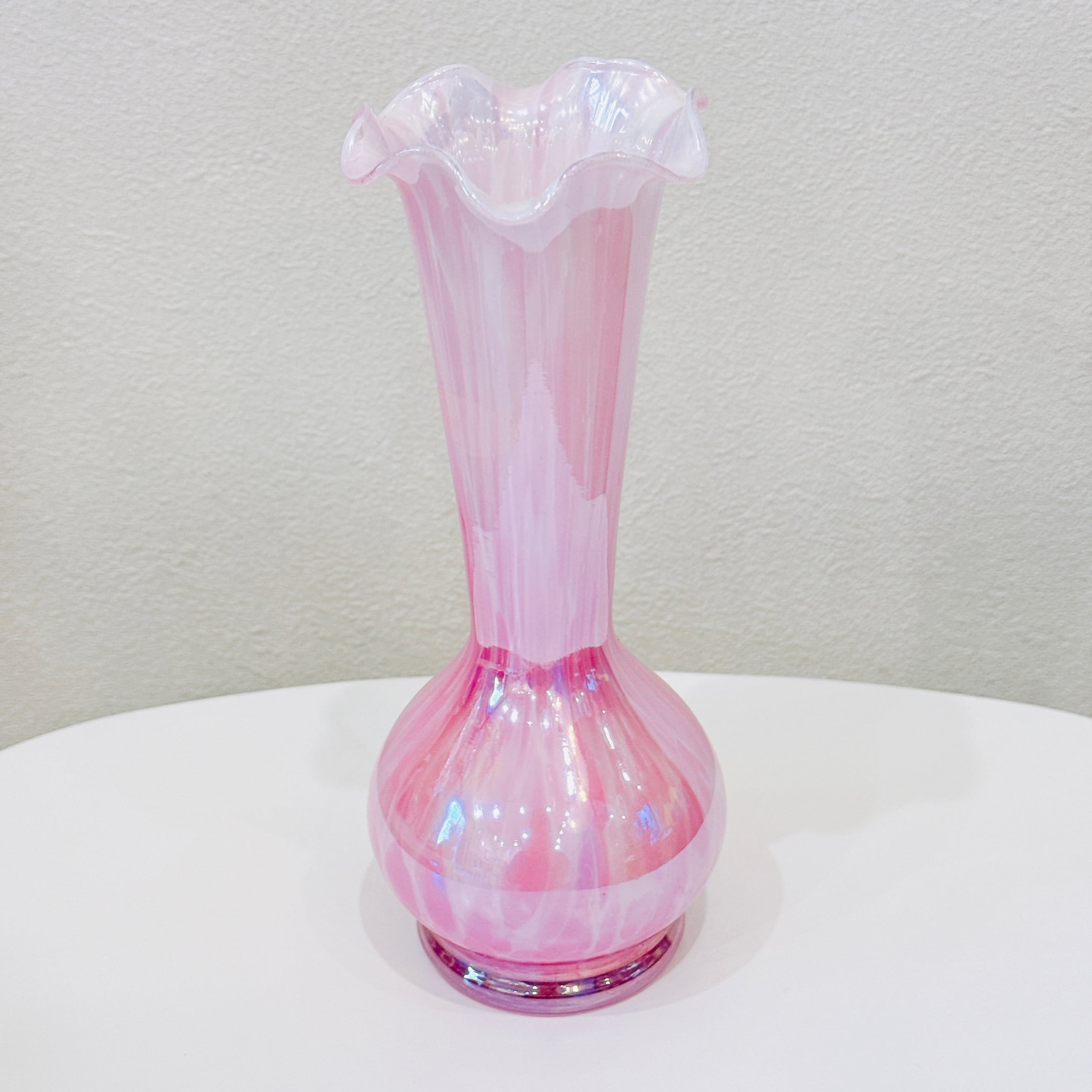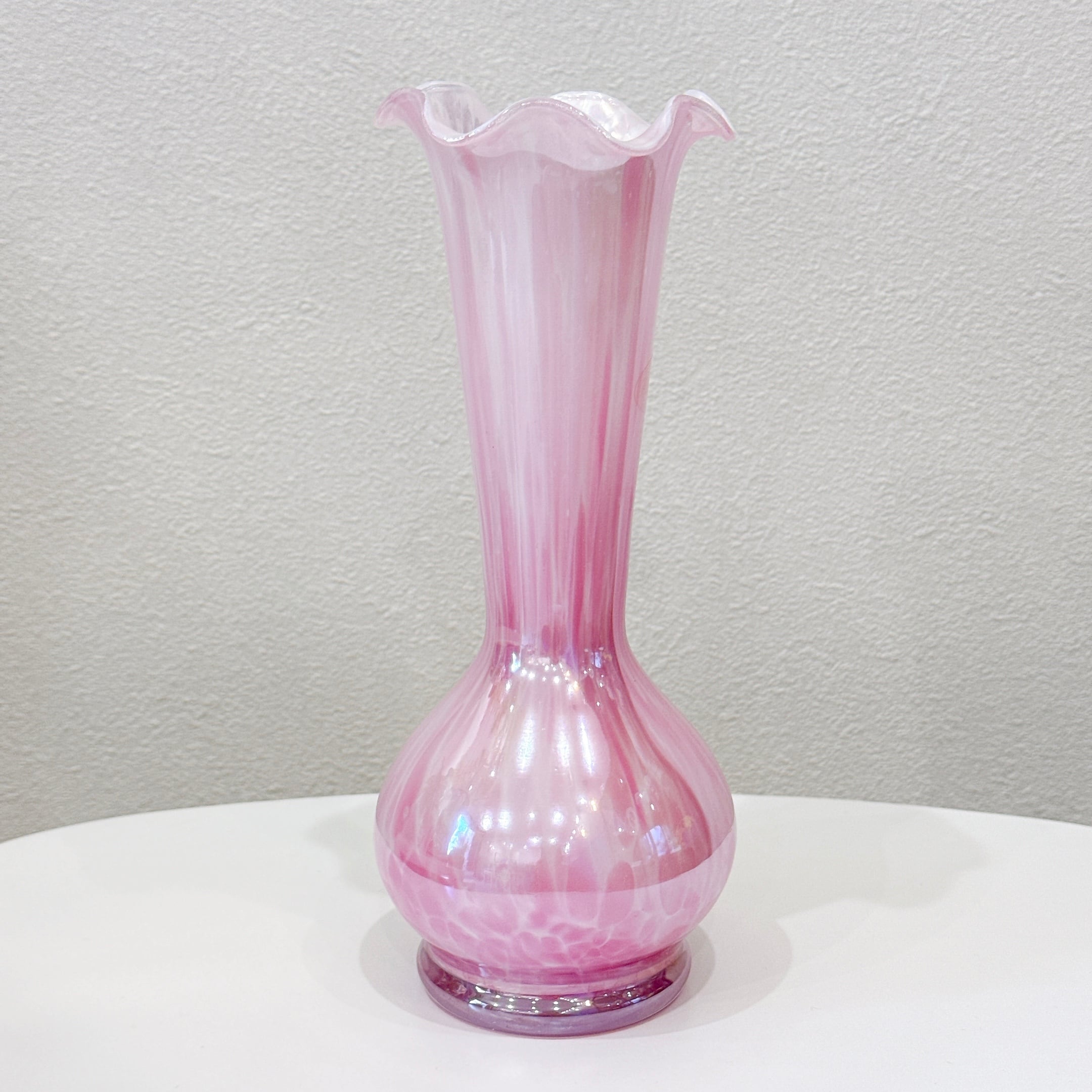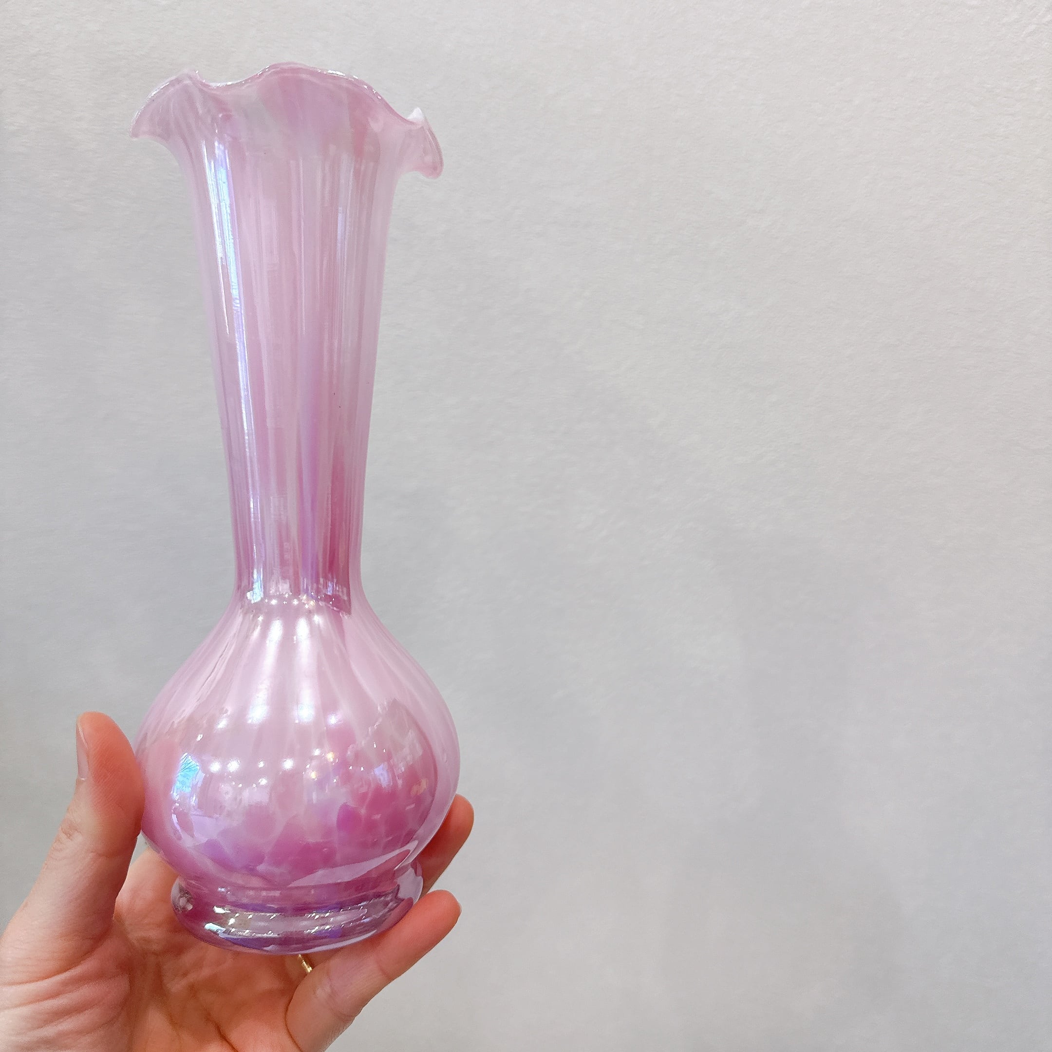 きれいなピンク色とフリルの口が可愛い、昭和レトロなヴィンテージフラワーベースです。1点ものになります。
