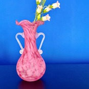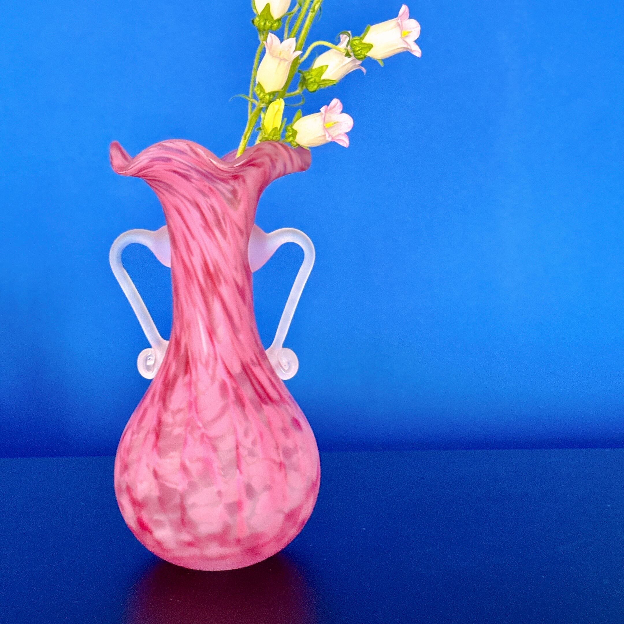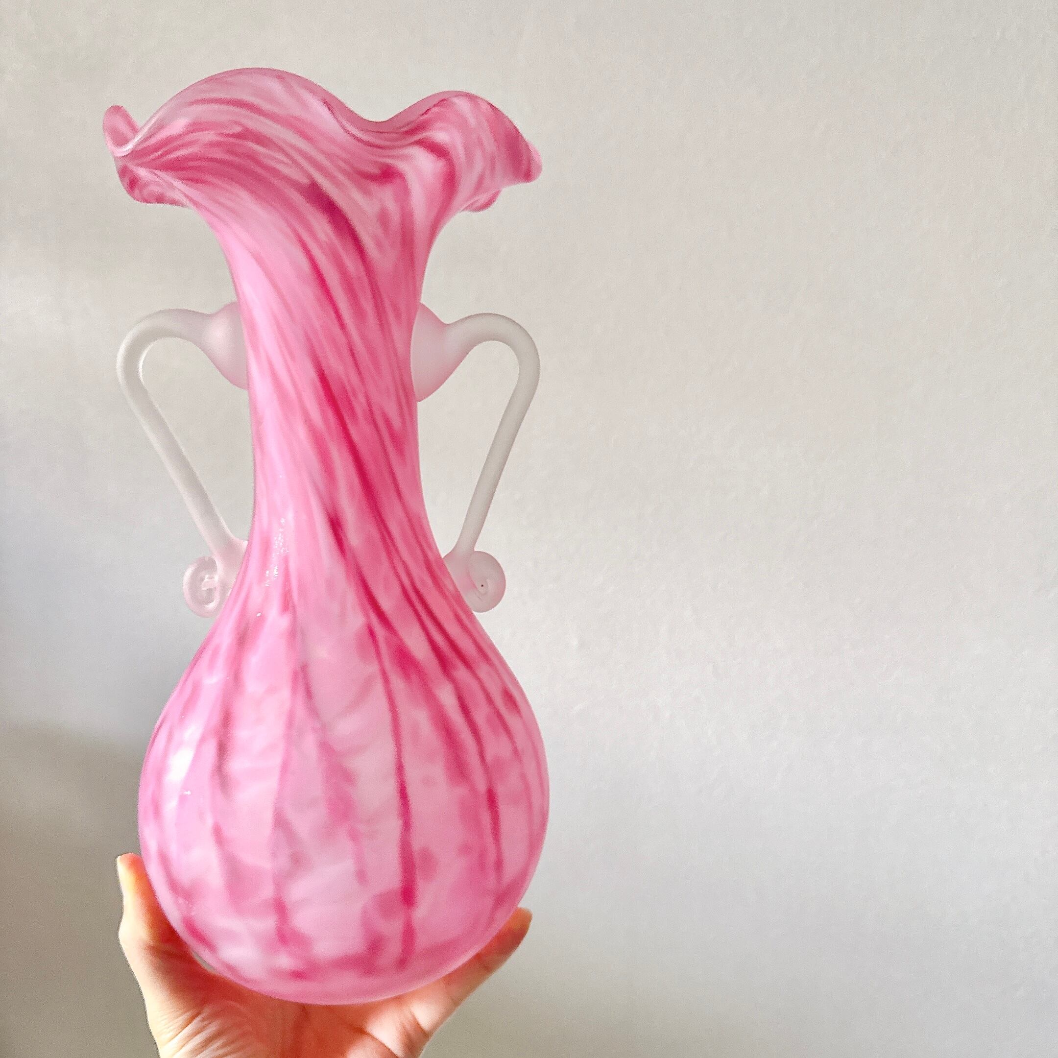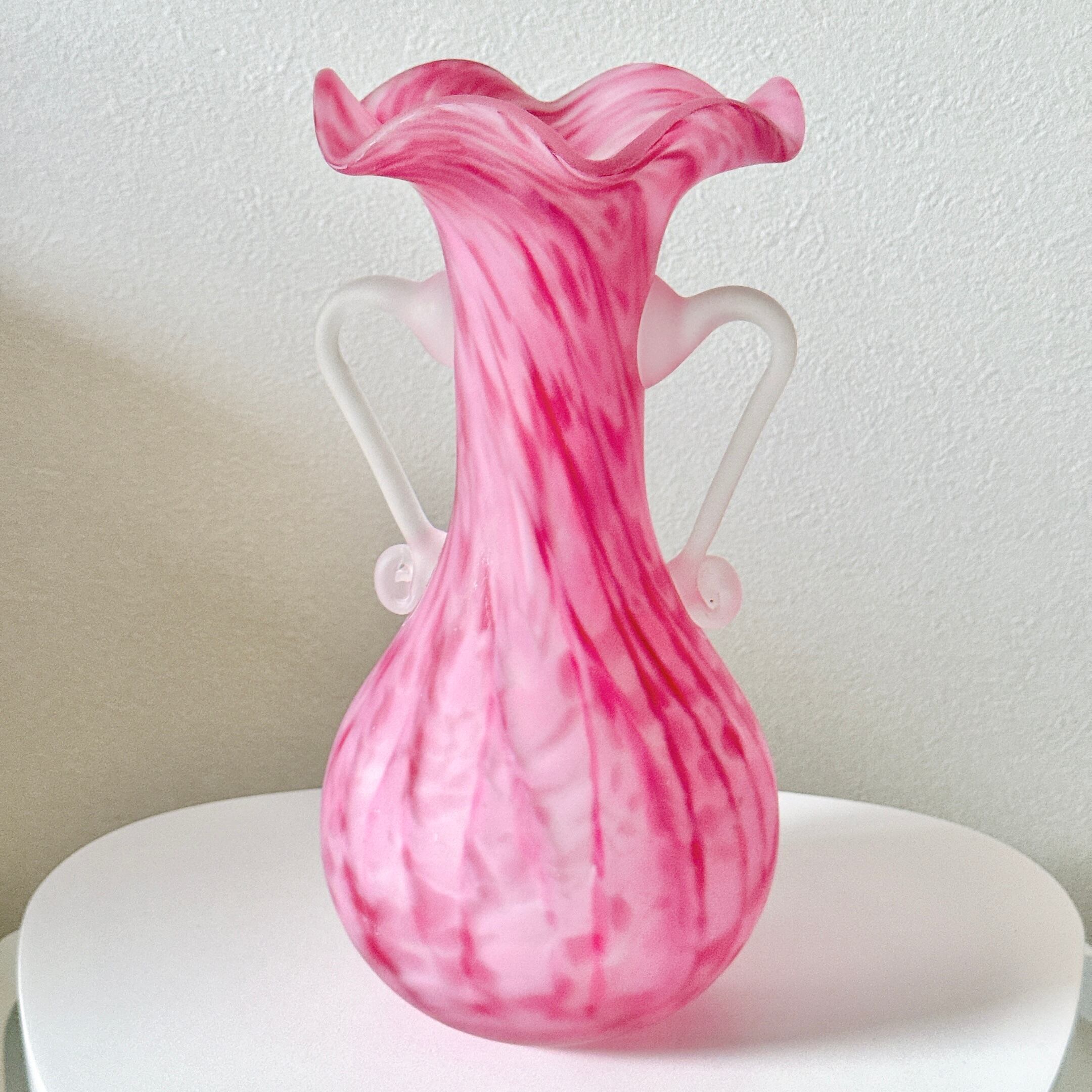 取手とフリルが可愛い、昭和レトロなヴィンテージフラワーベースです。1点ものになります。
