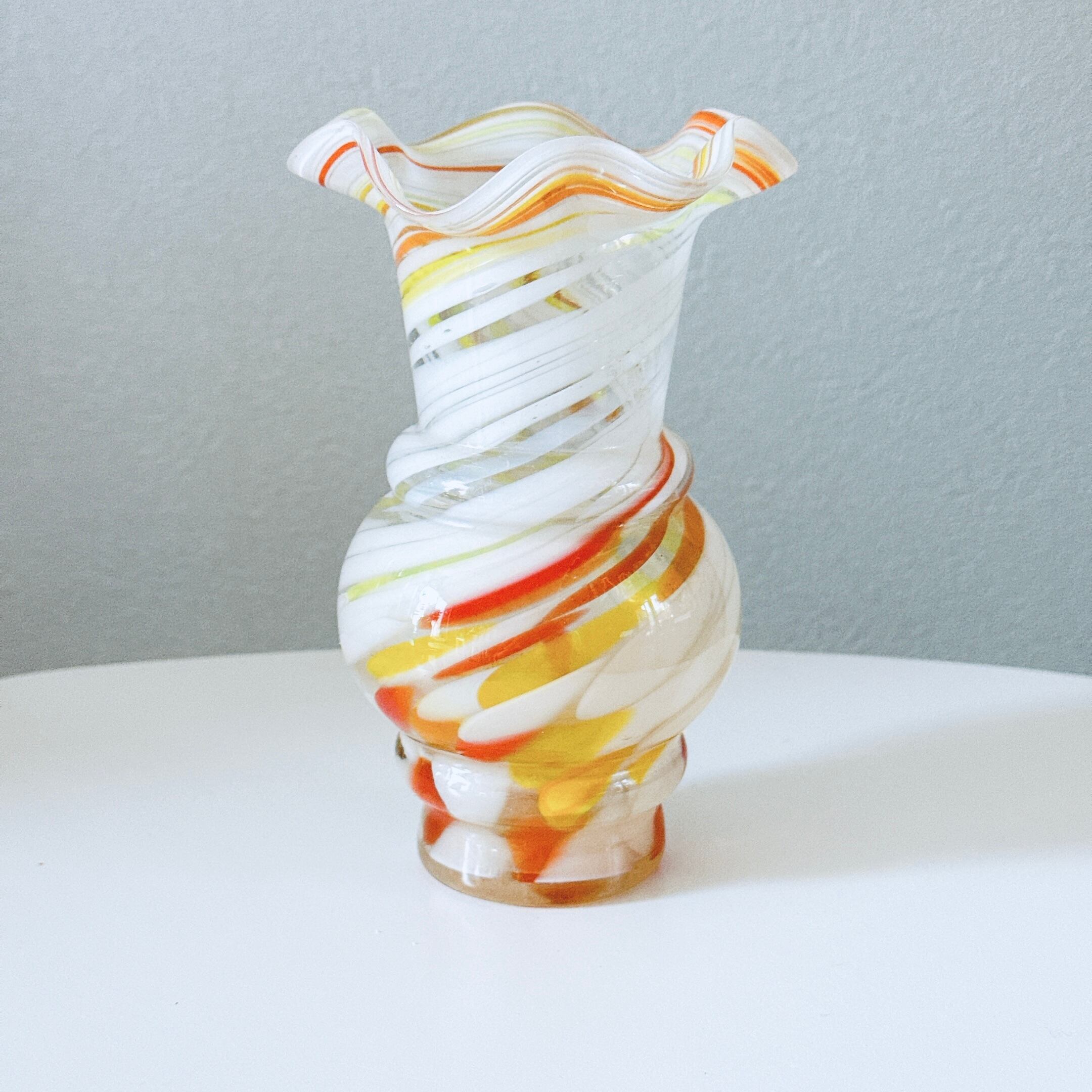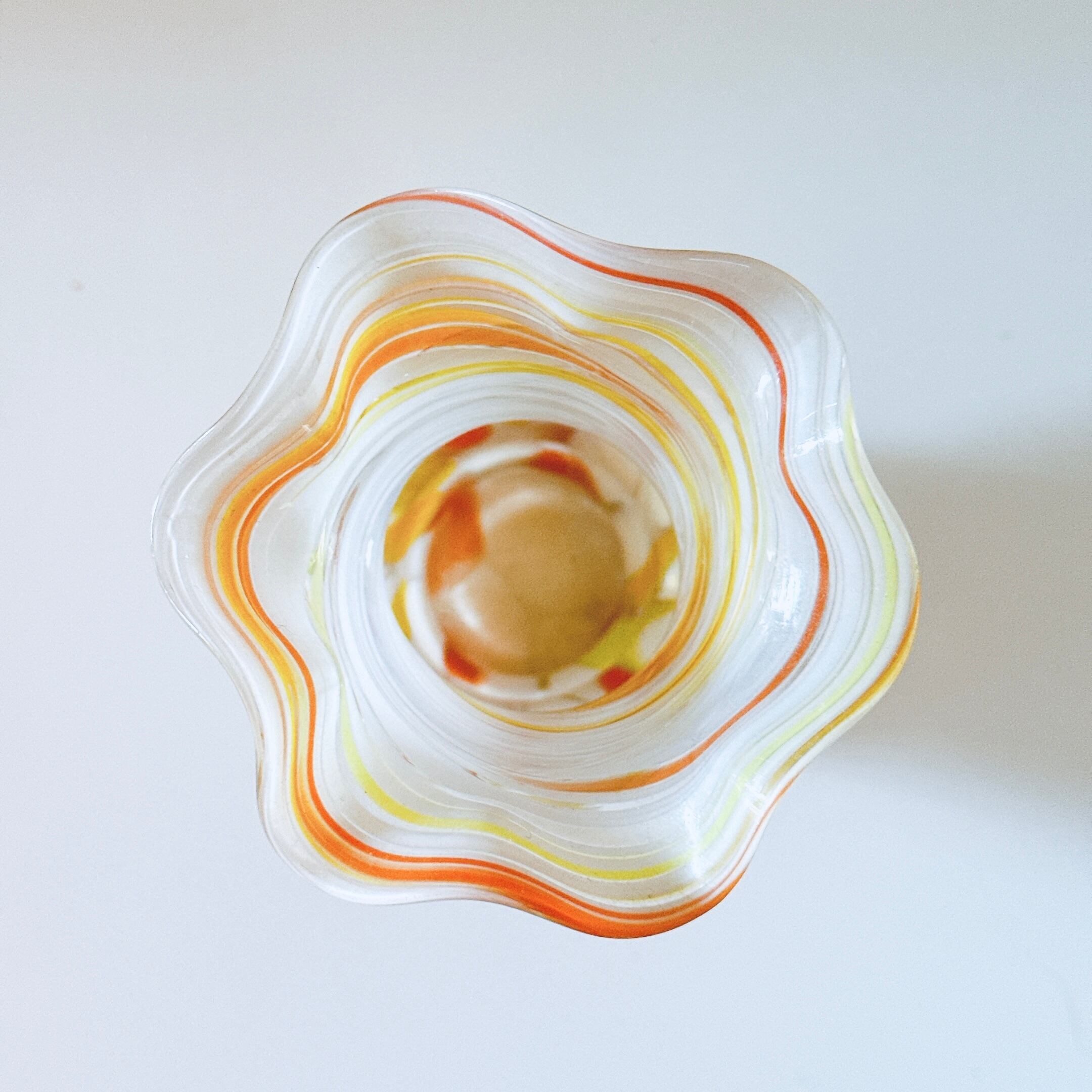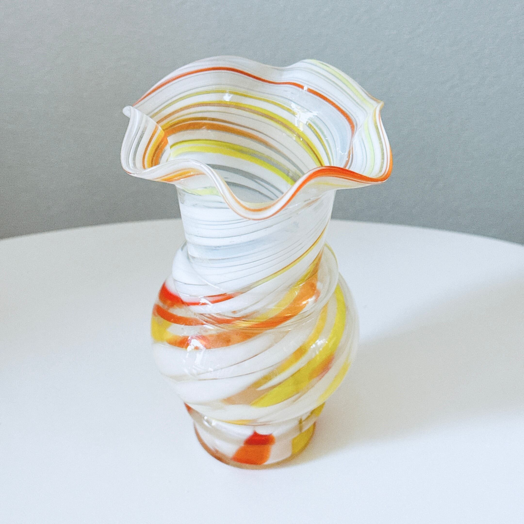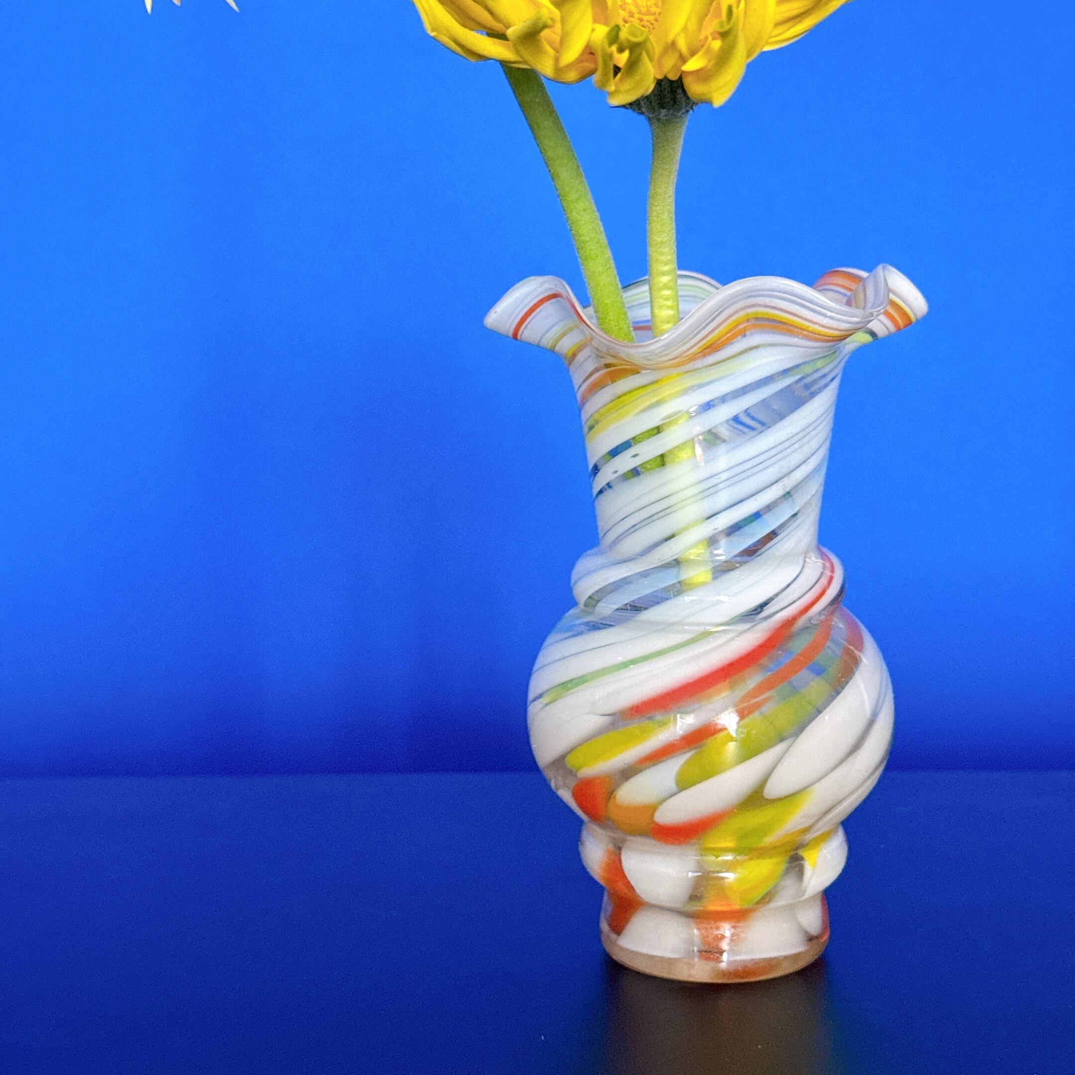 フリルとポップなマーブル模様が可愛い、ヴィンテージフラワーベースです。1点ものになります。