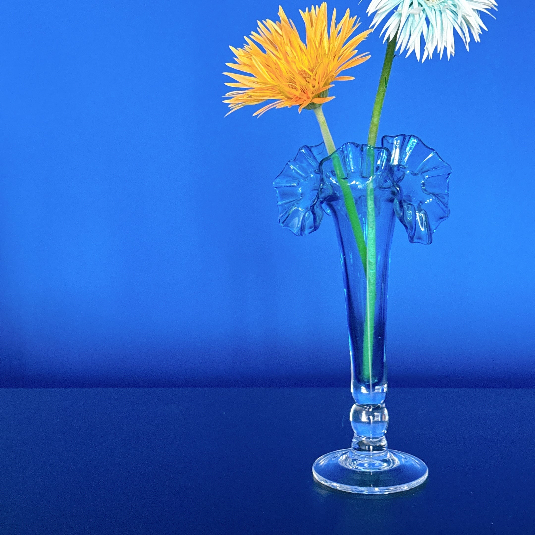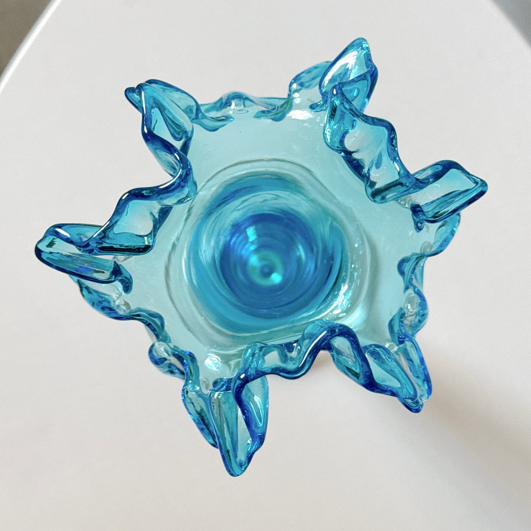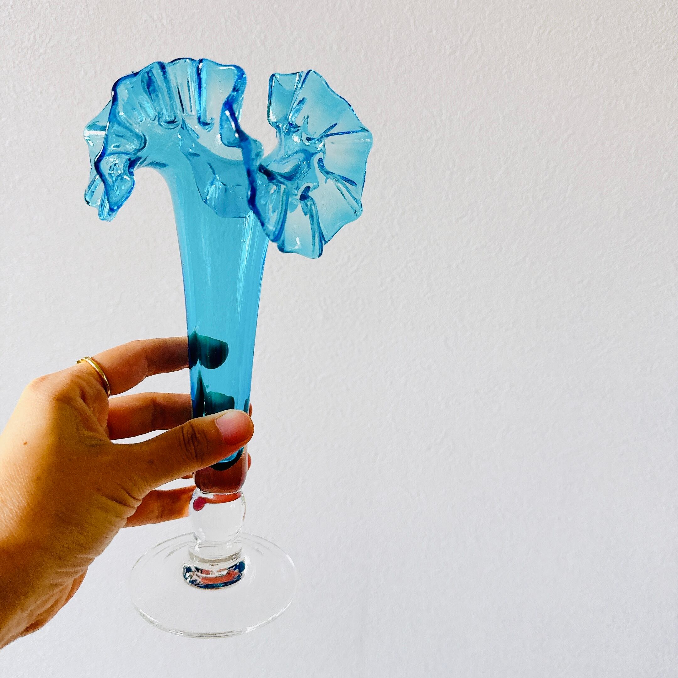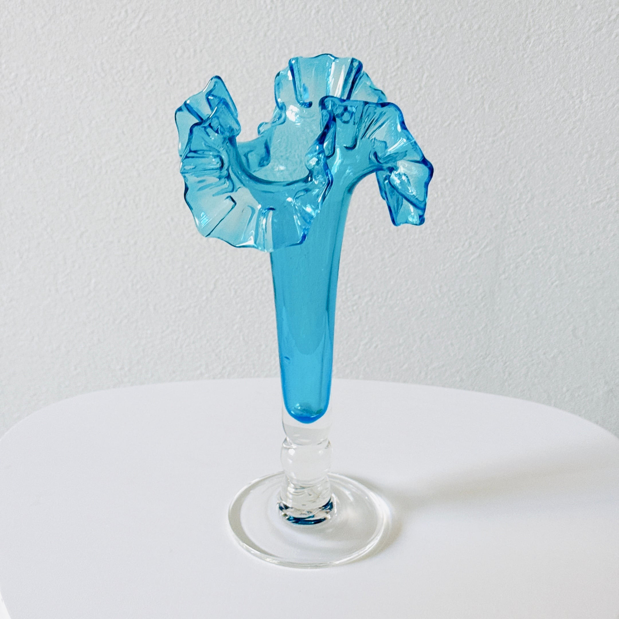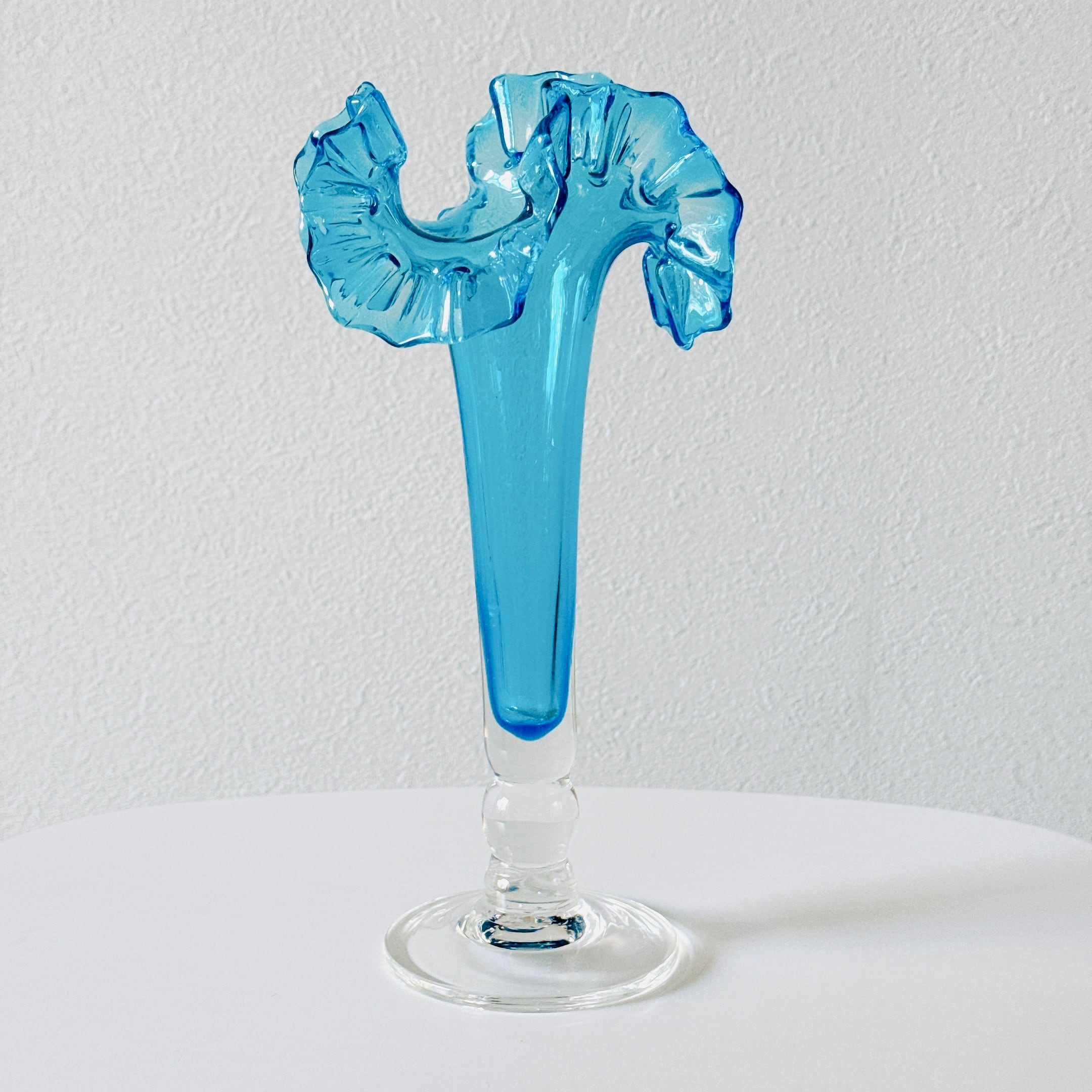 北一硝子の花瓶です。繊細なピンクのフリルが可愛い、昭和レトロなヴィンテージフラワーベースです。