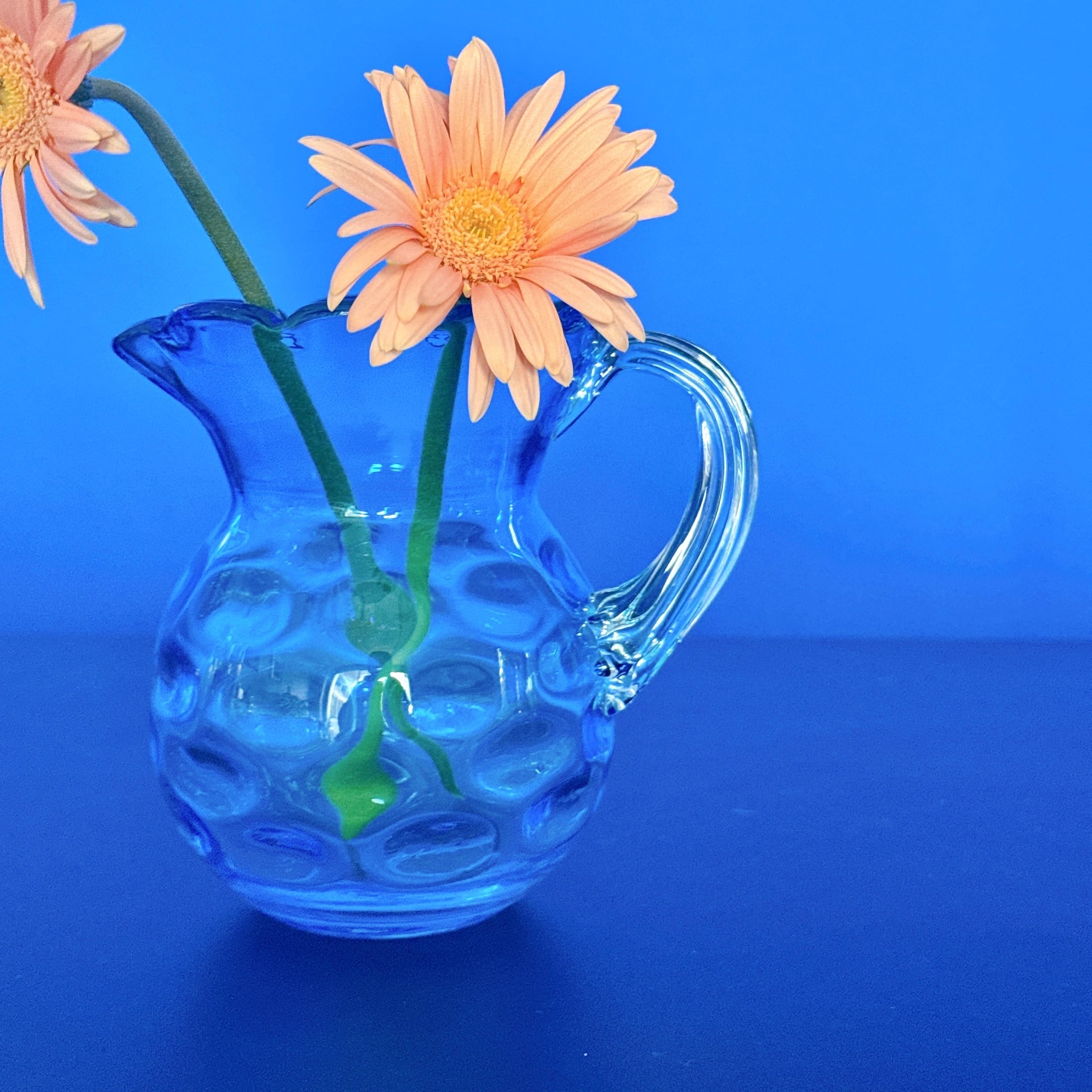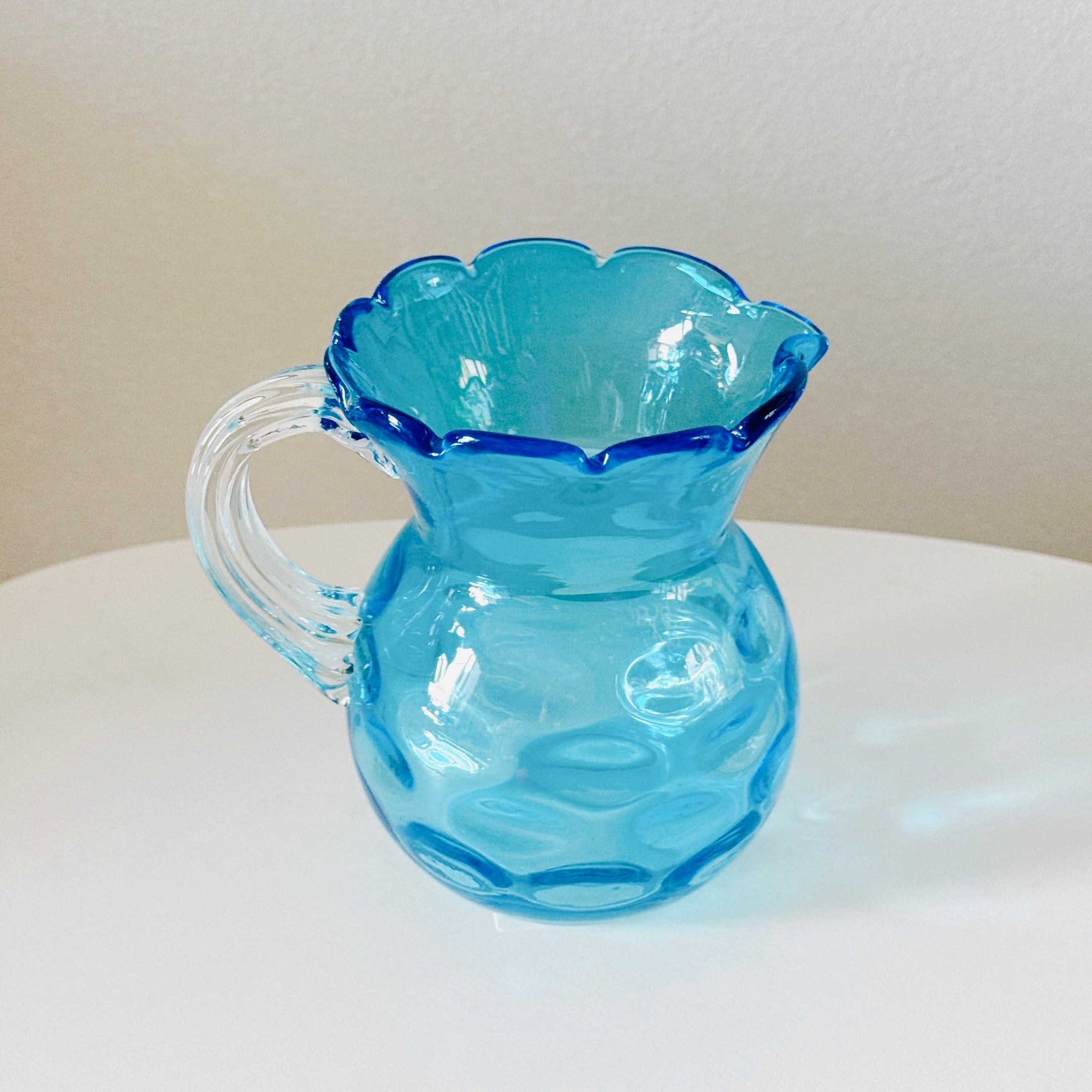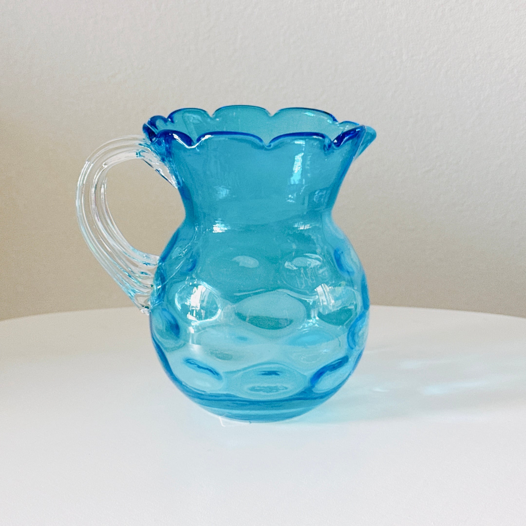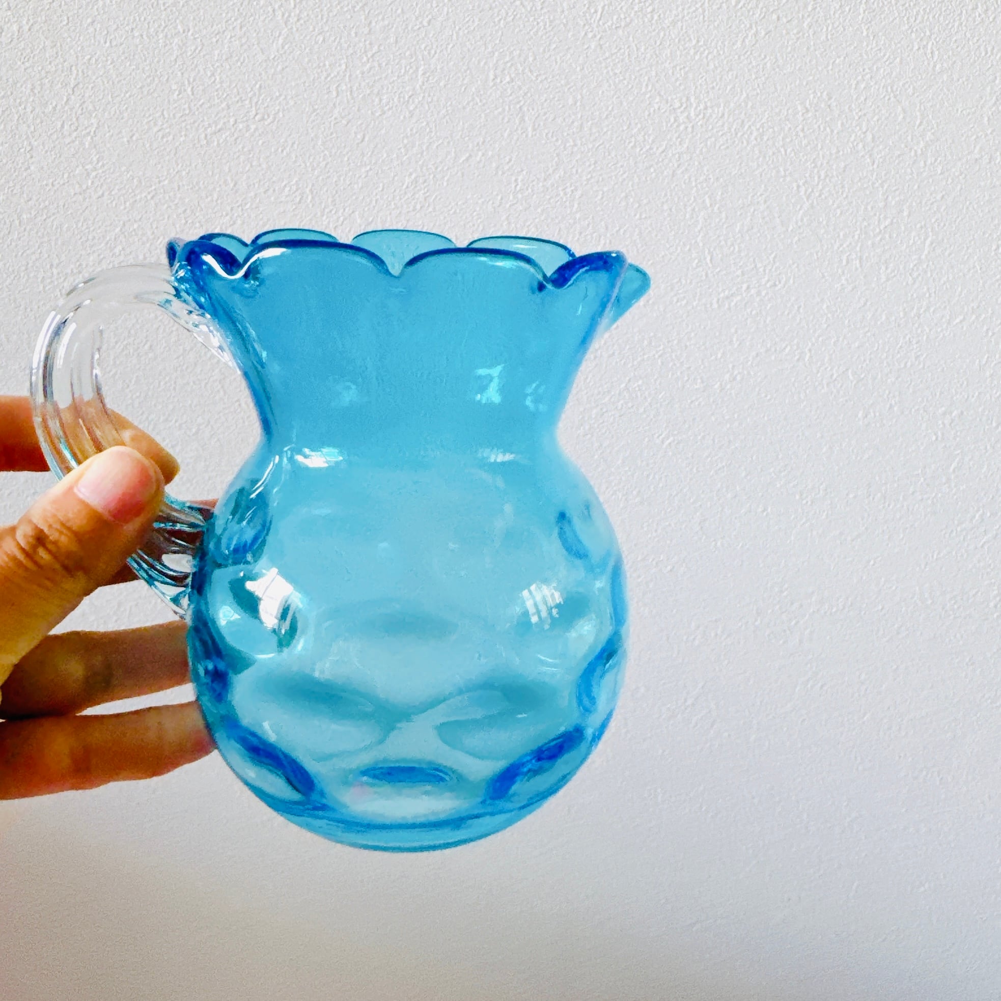 鮮やかな水色が可愛い、北一硝子のヴィンテージピッチャーです。1点ものになります。