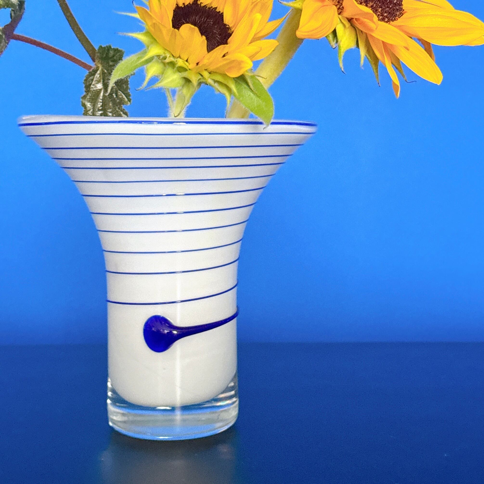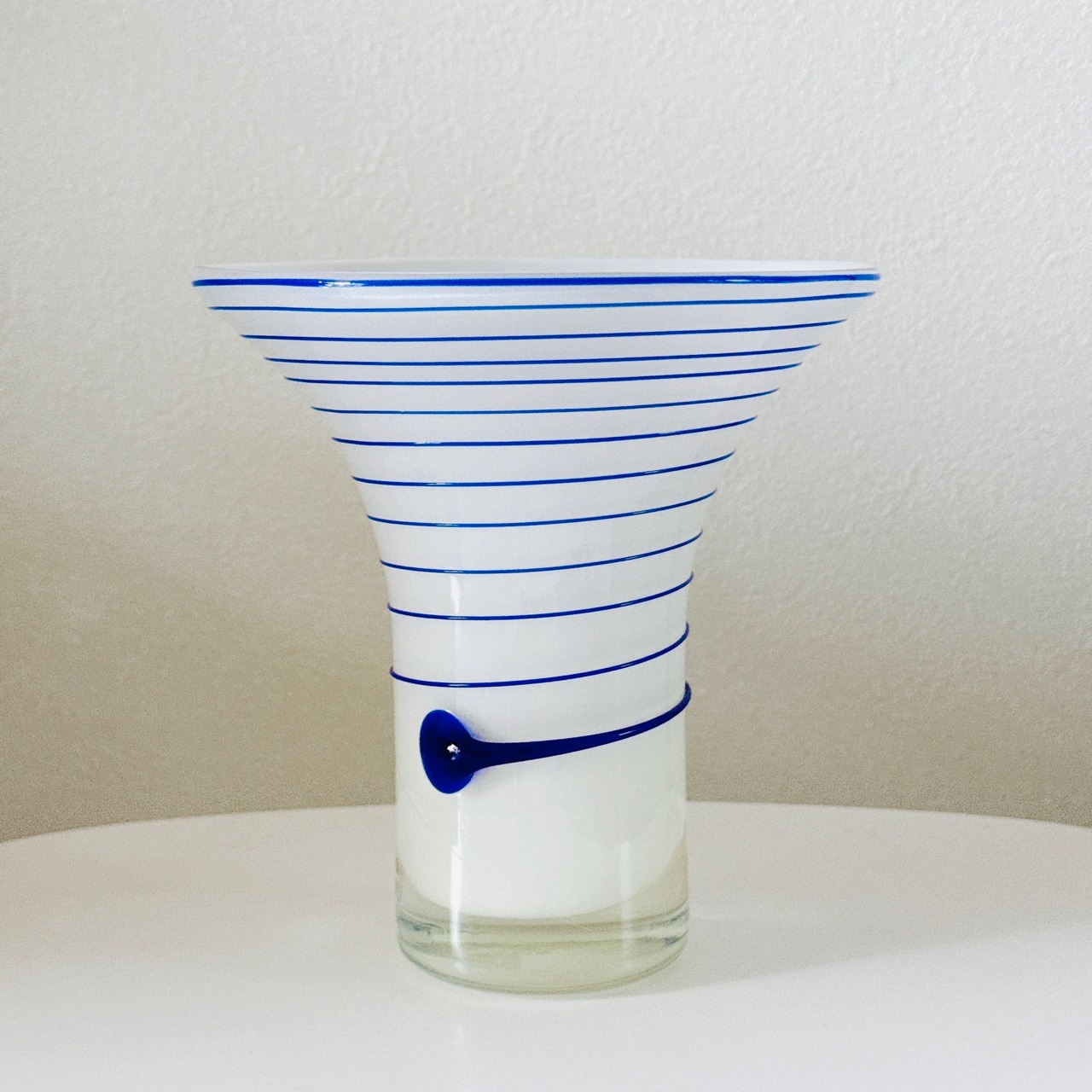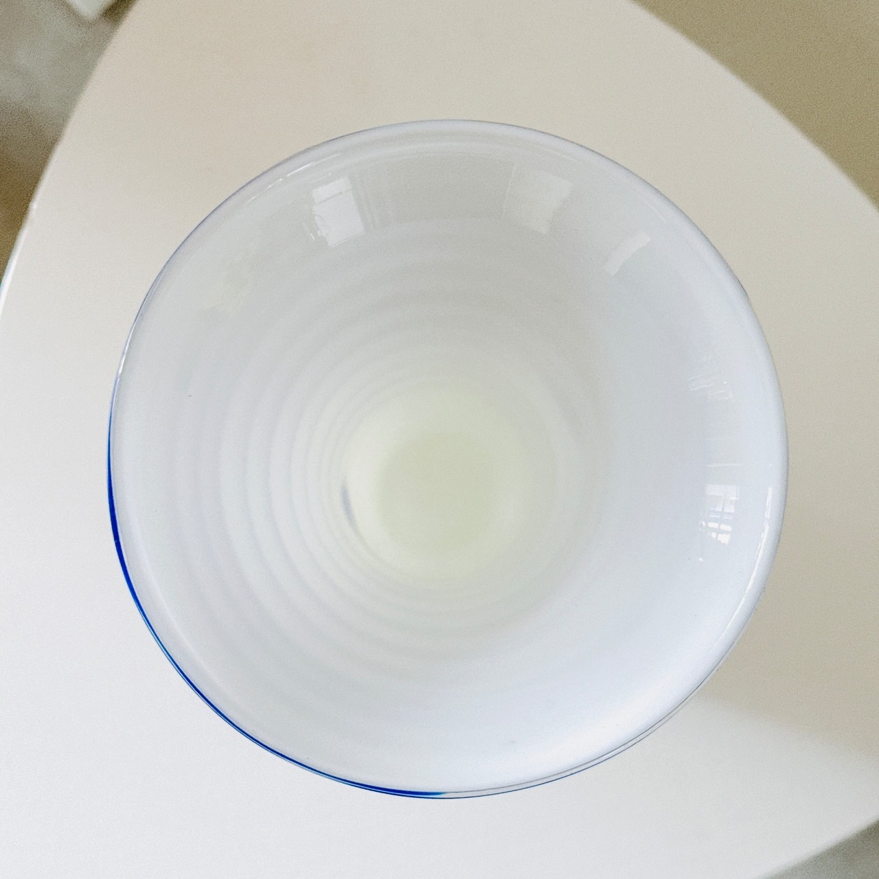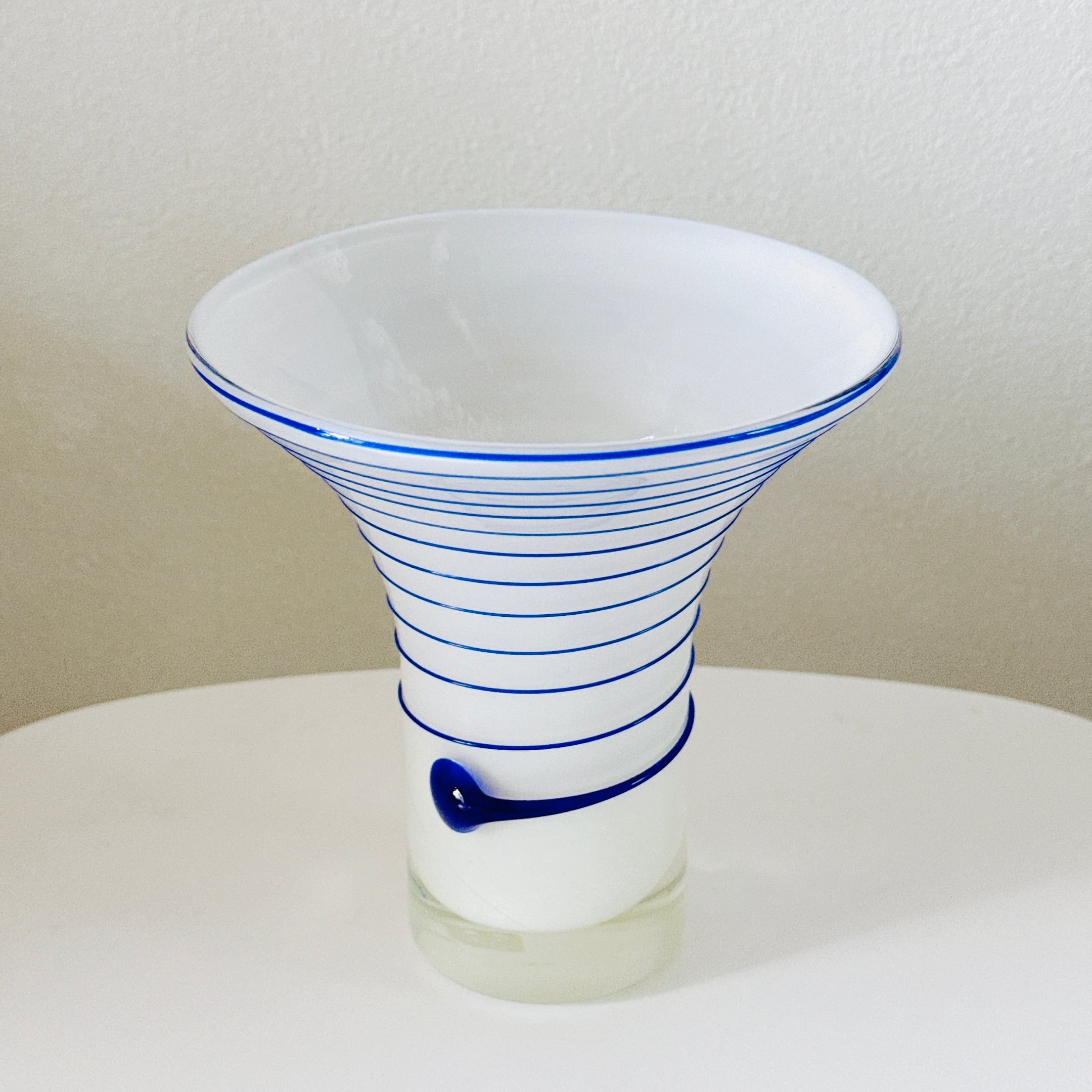 広い口とスパイラルの細工が可愛い、昭和レトロなヴィンテージフラワーベースです。1点ものになります。