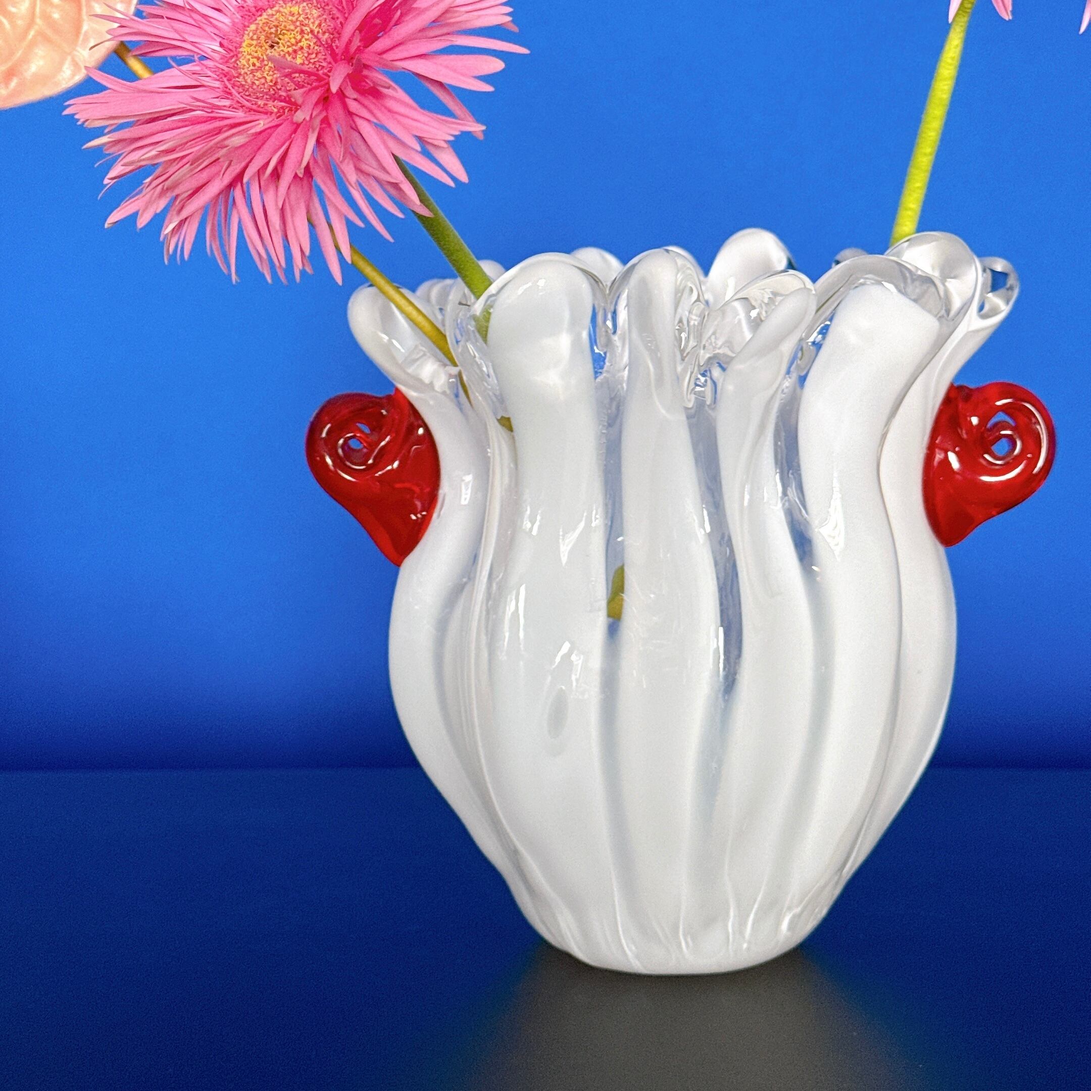 赤い耳が可愛い、昭和のレトロポップなヴィンテージフラワーベースです。1点ものになります。