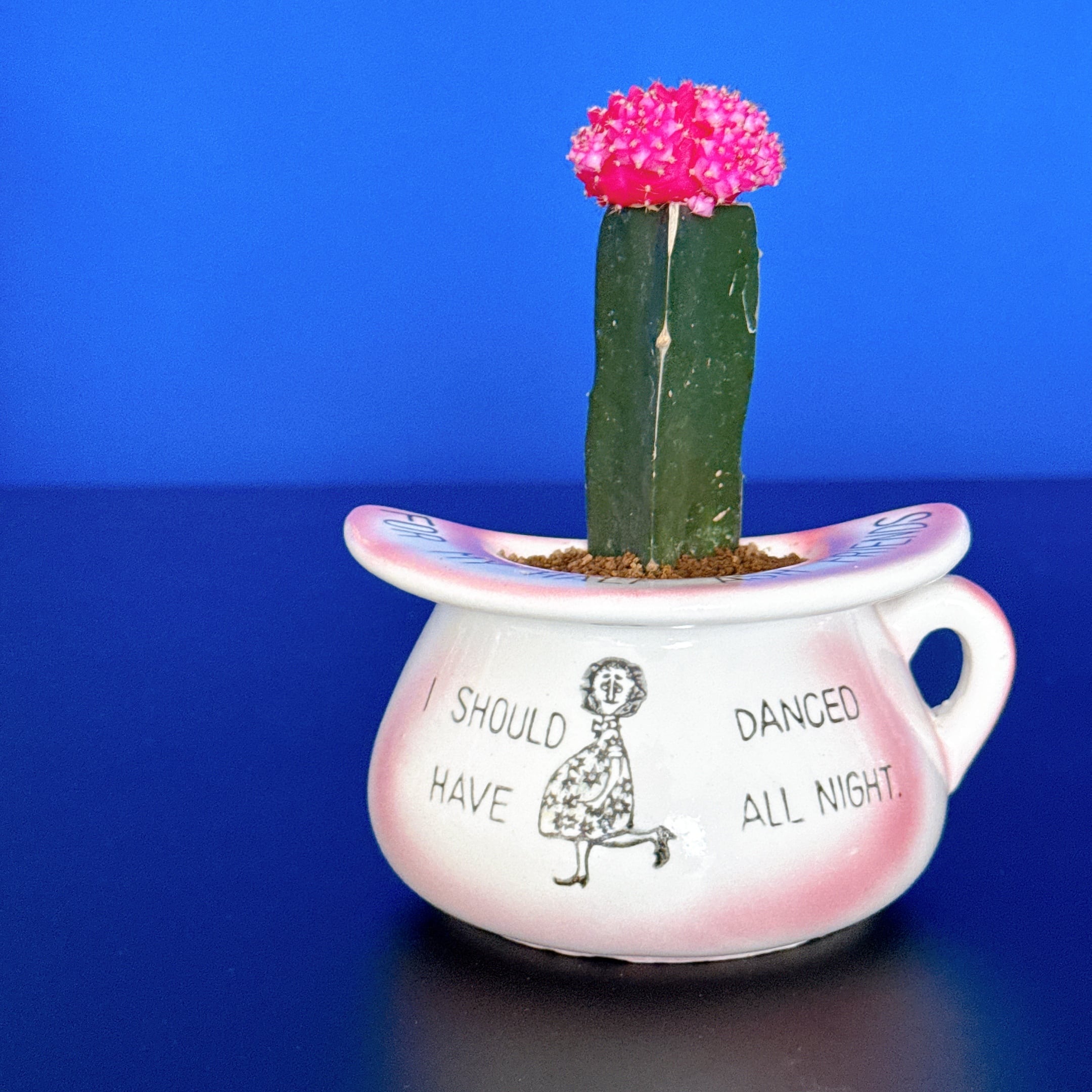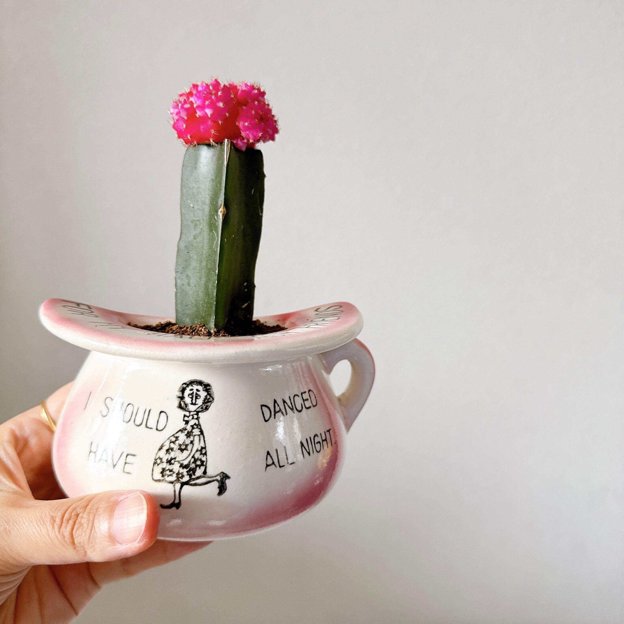 鮮やかな色が可愛いヒボタンをヴィンテージのプランターに入れました。1点ものになります。