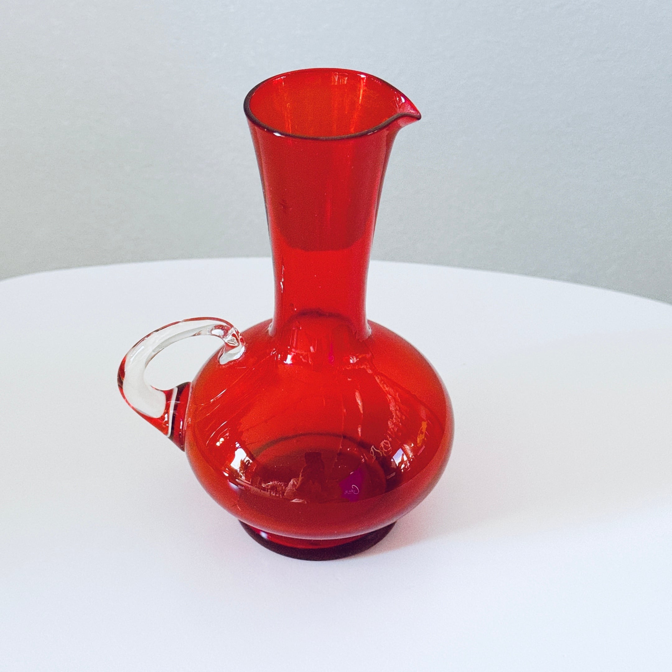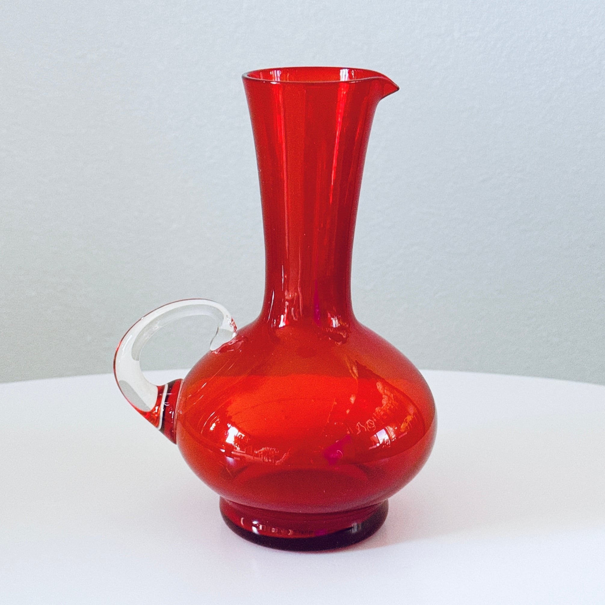 鮮やかな赤色と持ち手が可愛い、昭和レトロなヴィンテージフラワーベースです。1点ものになります。