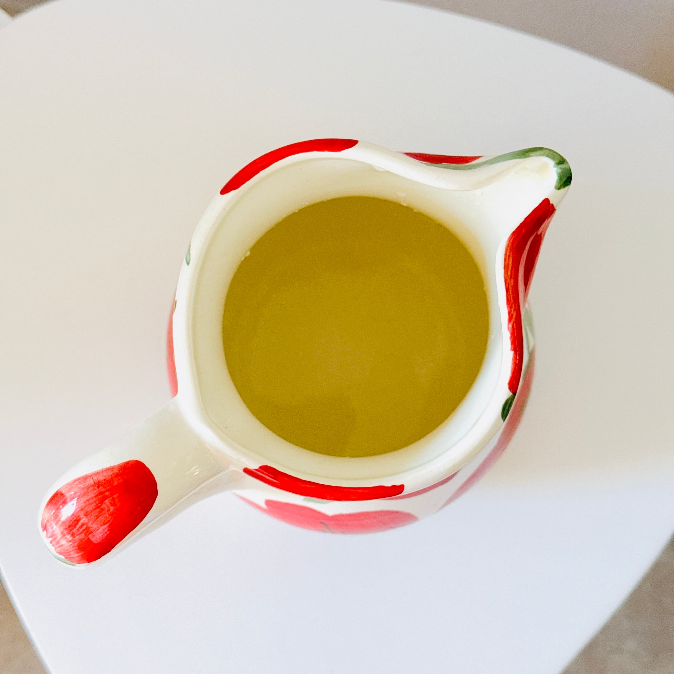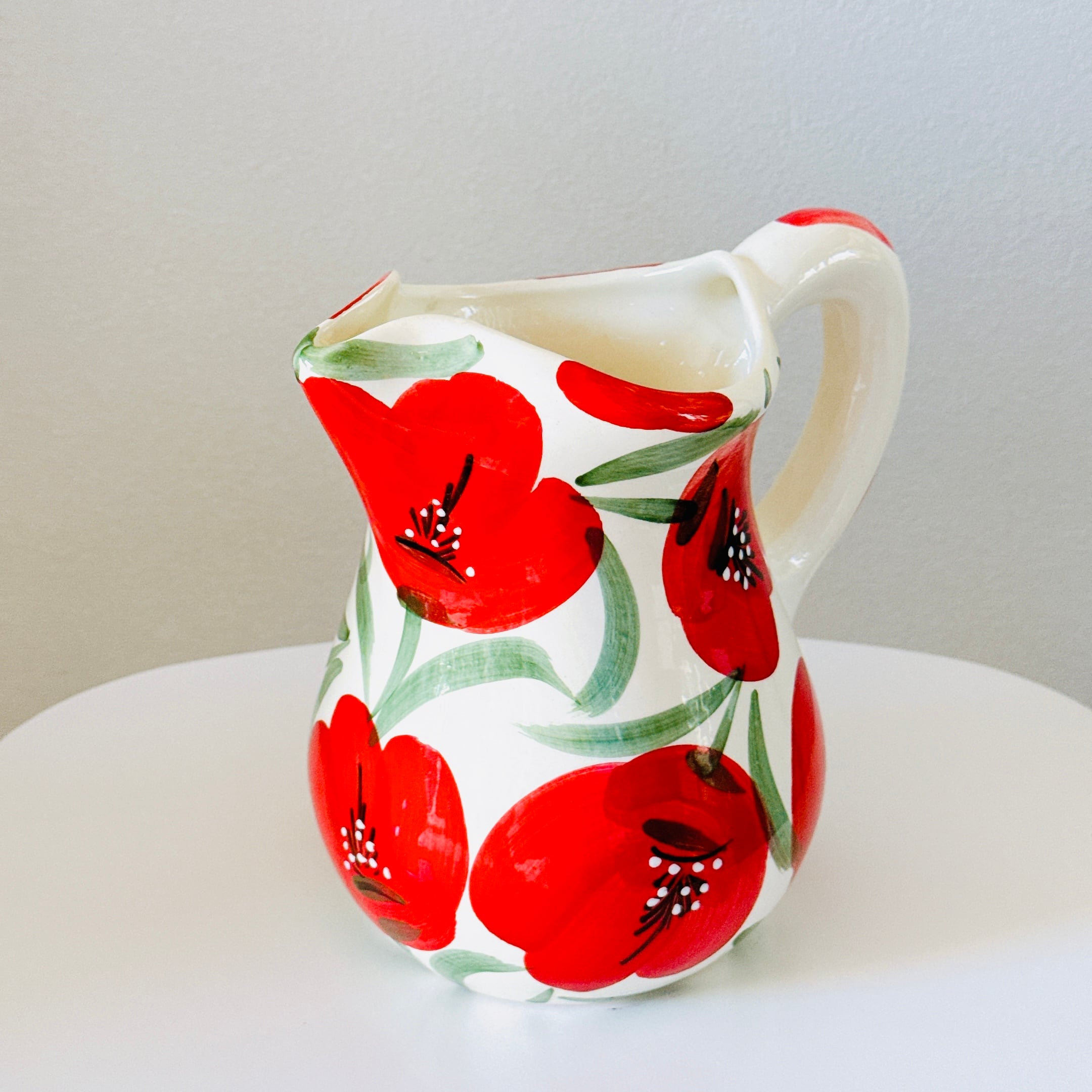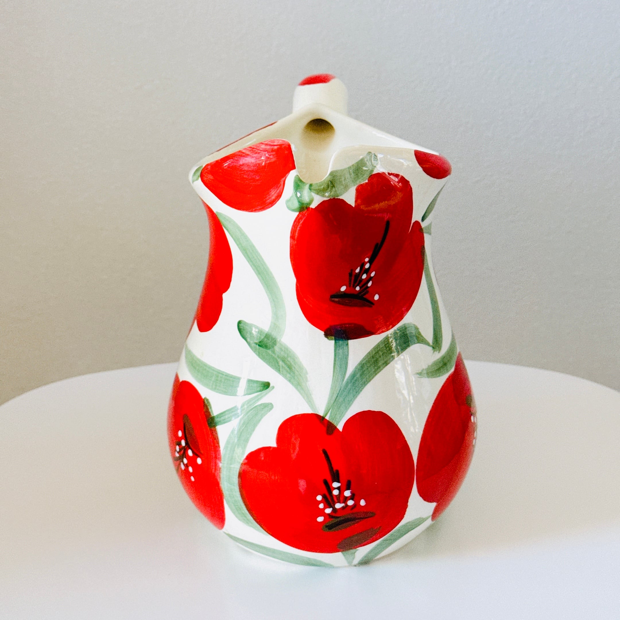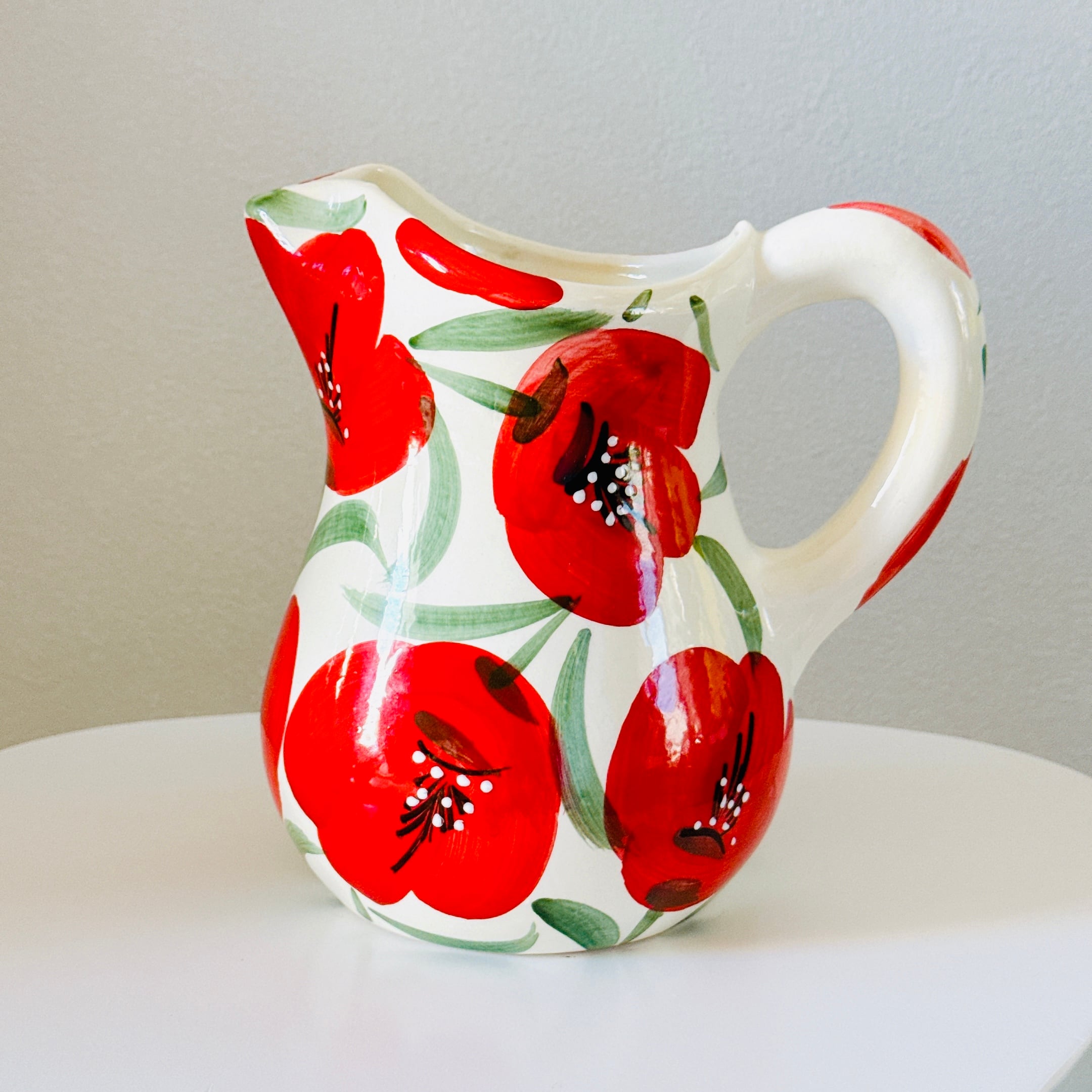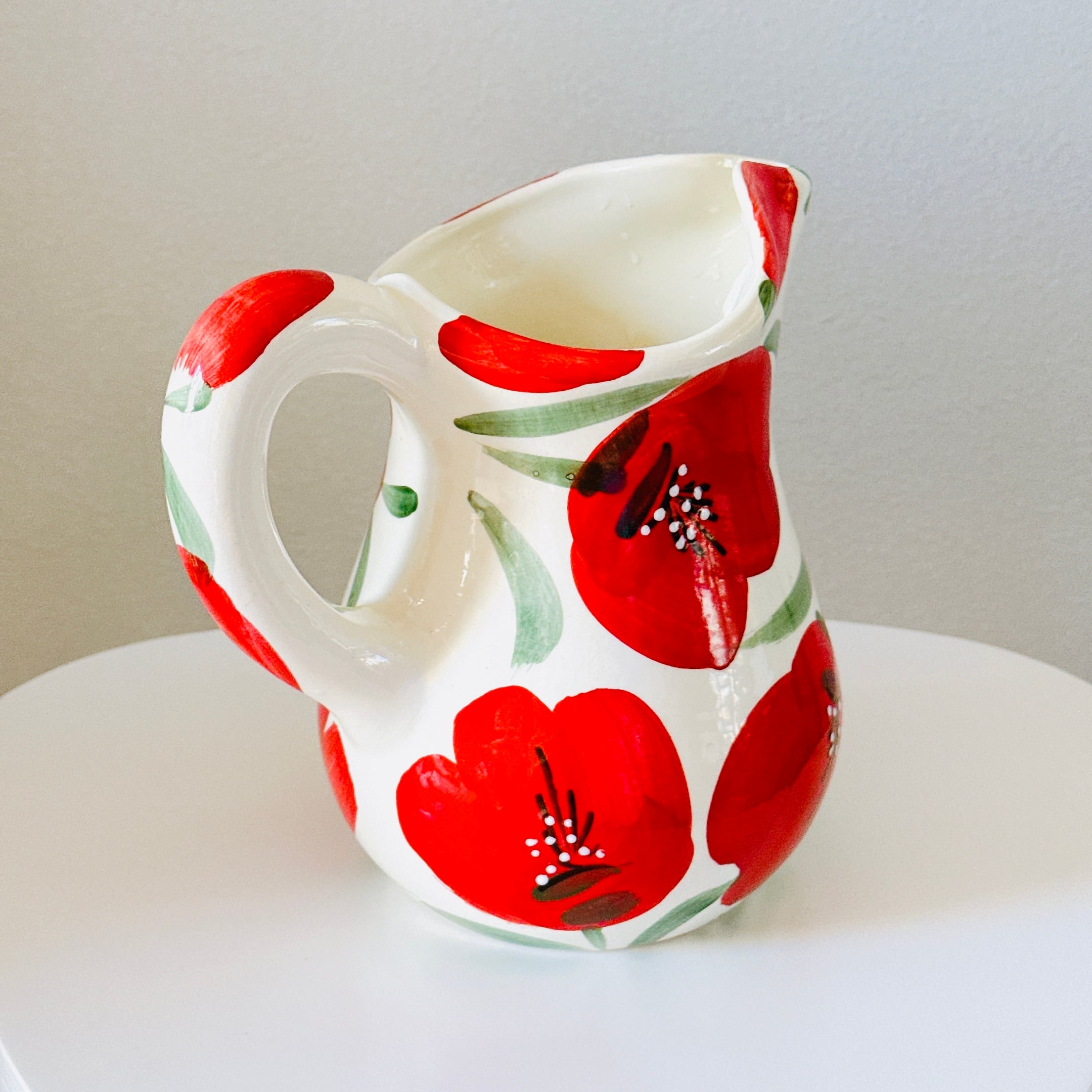 大きな赤いお花の絵付けが可愛い、スペイン製陶器のヴィンテージピッチャーです。1点ものになります。