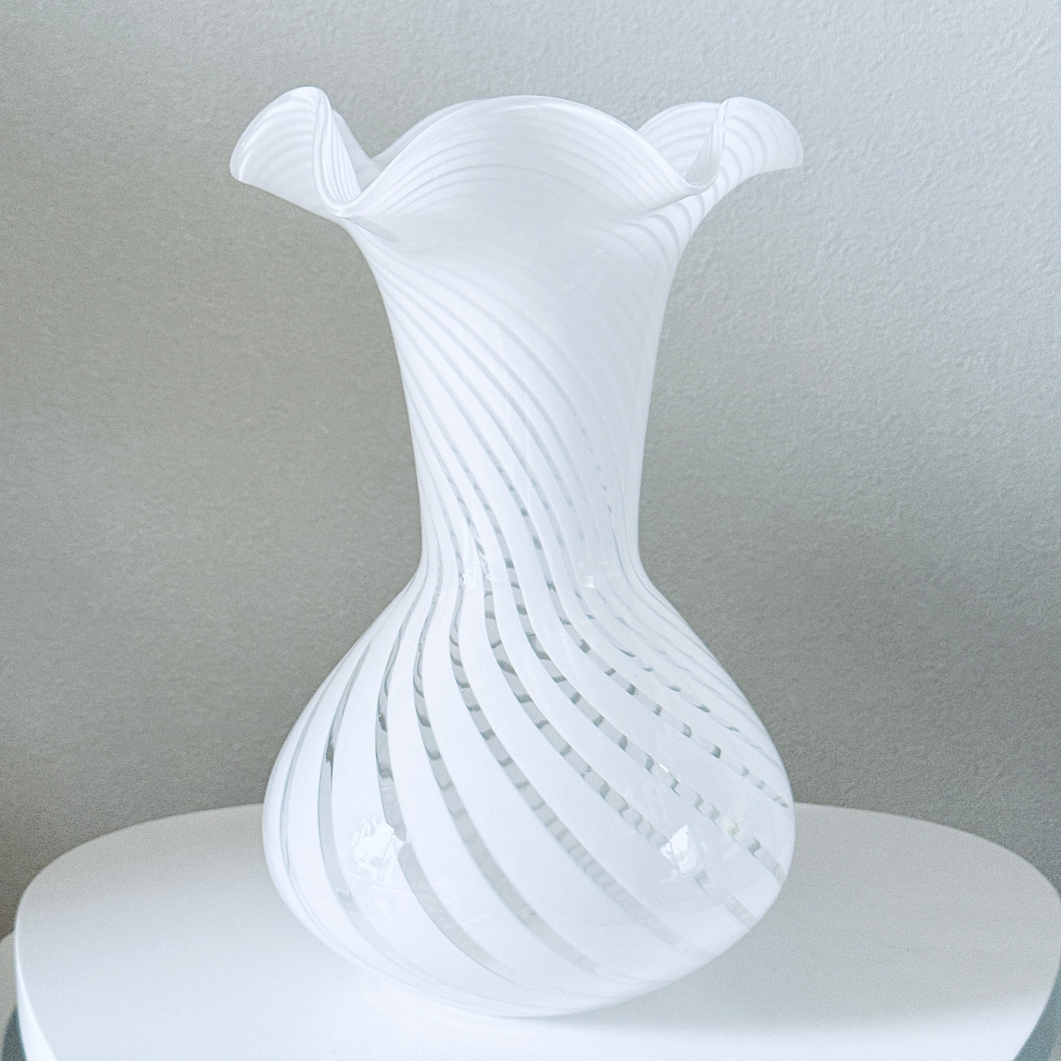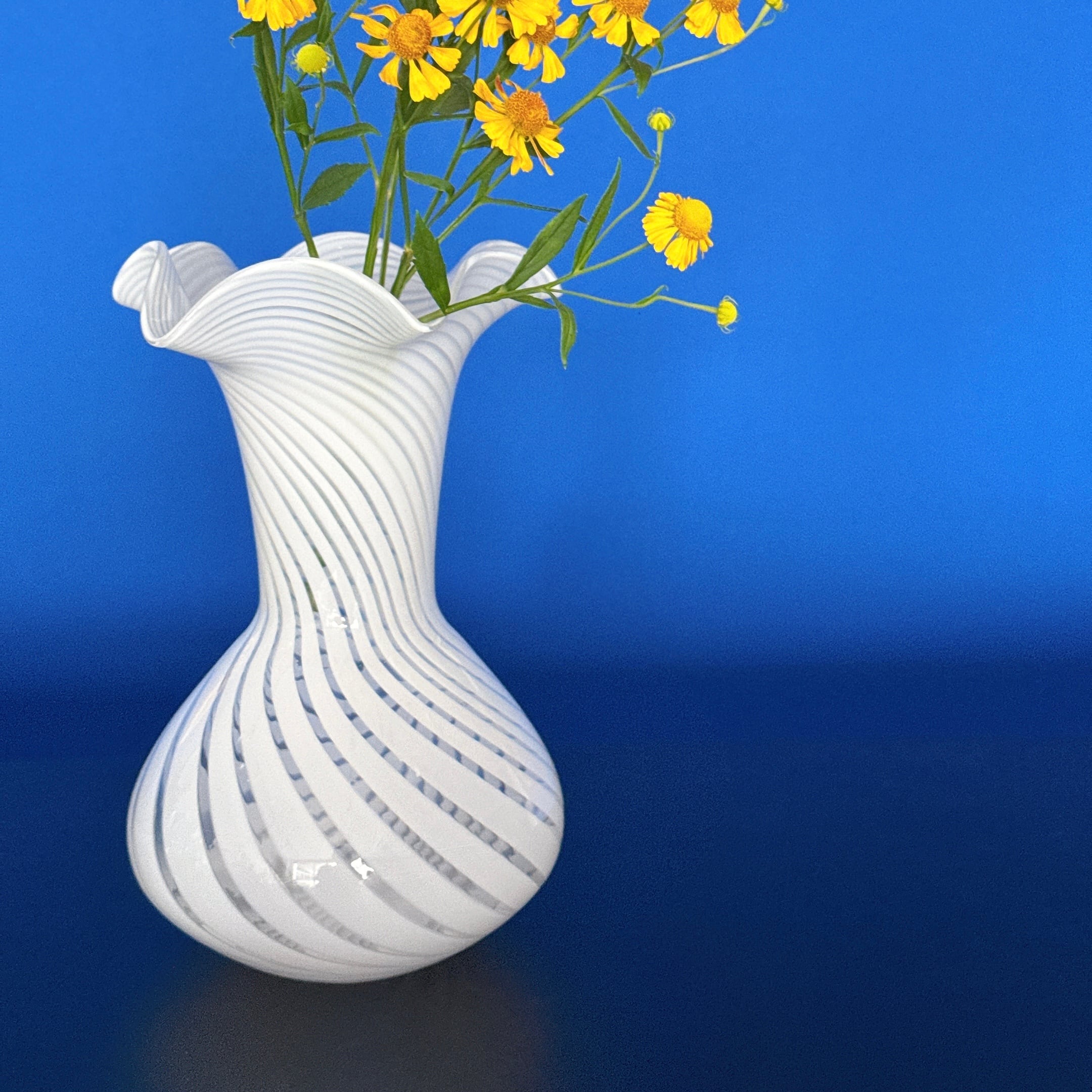 フリルと螺旋模様が可愛い、昭和レトロなヴィンテージフラワーベースです。1点ものになります。