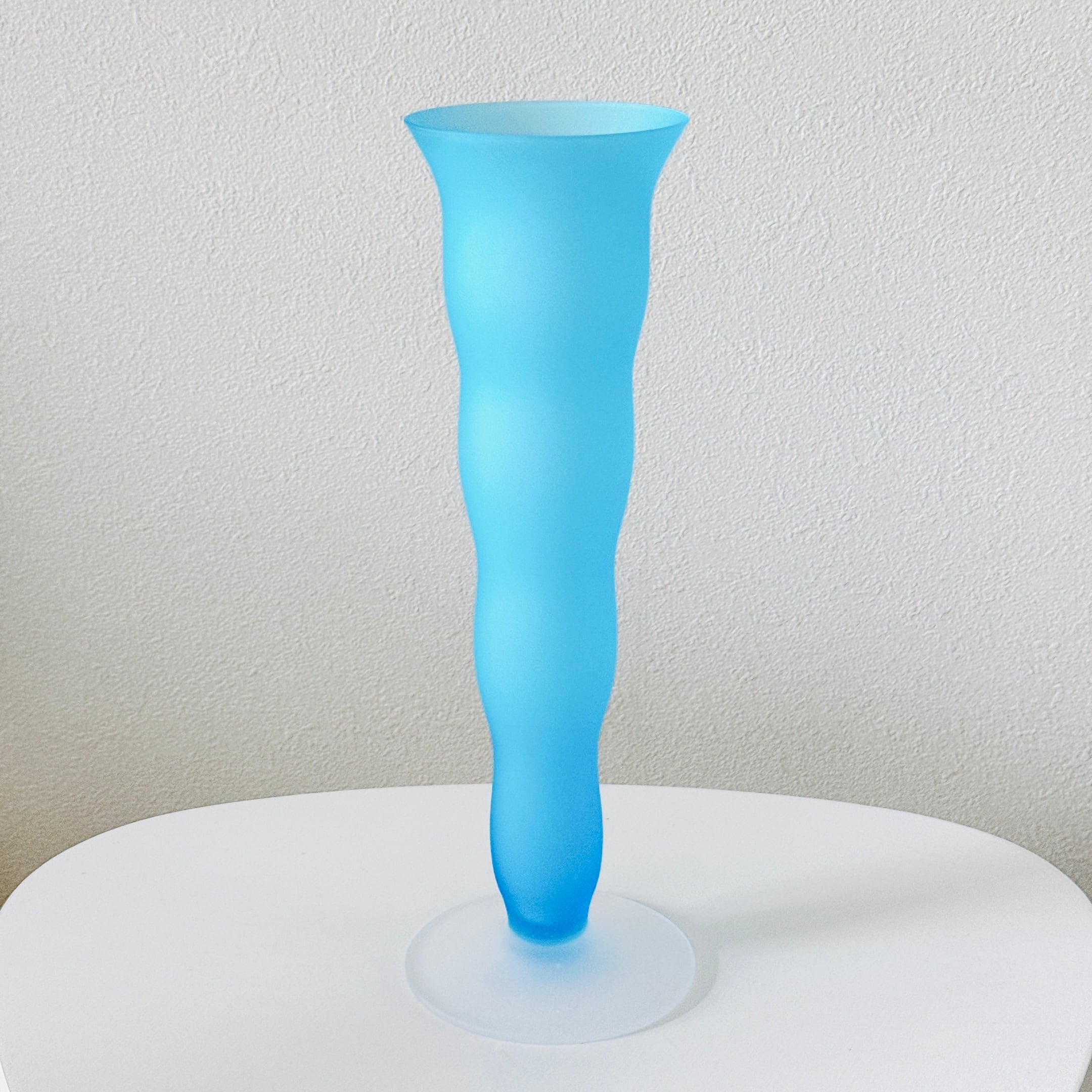 きれいな水色のすりガラスが美しい、昭和レトロなヴィンテージフラワーベースです。1点ものになります。