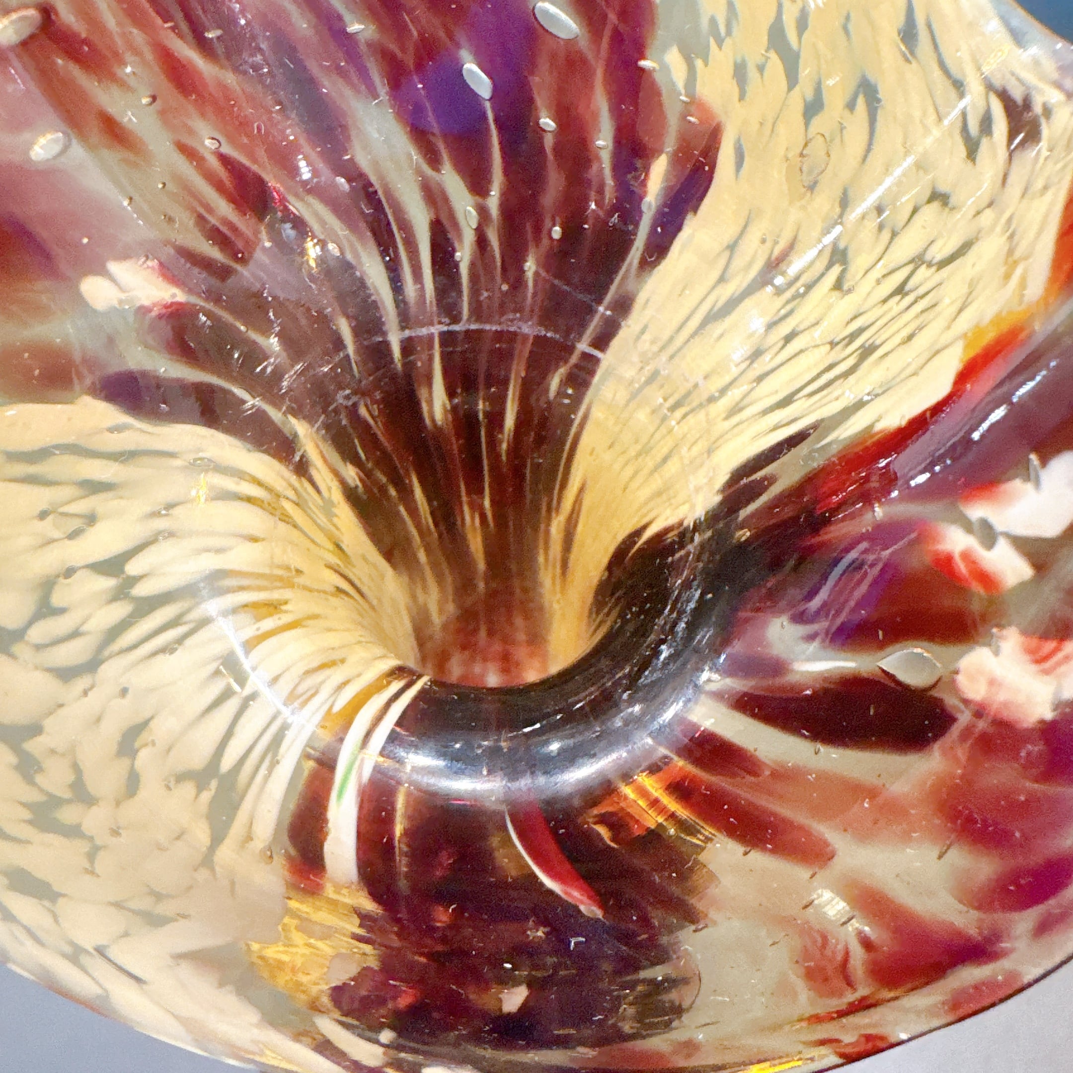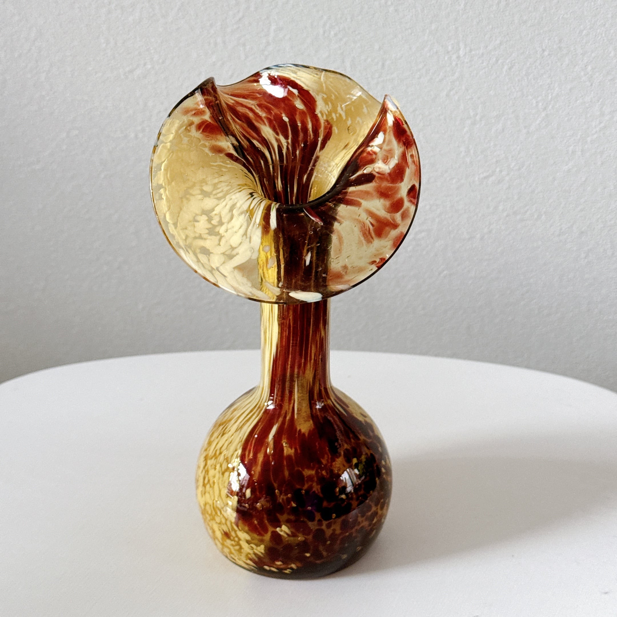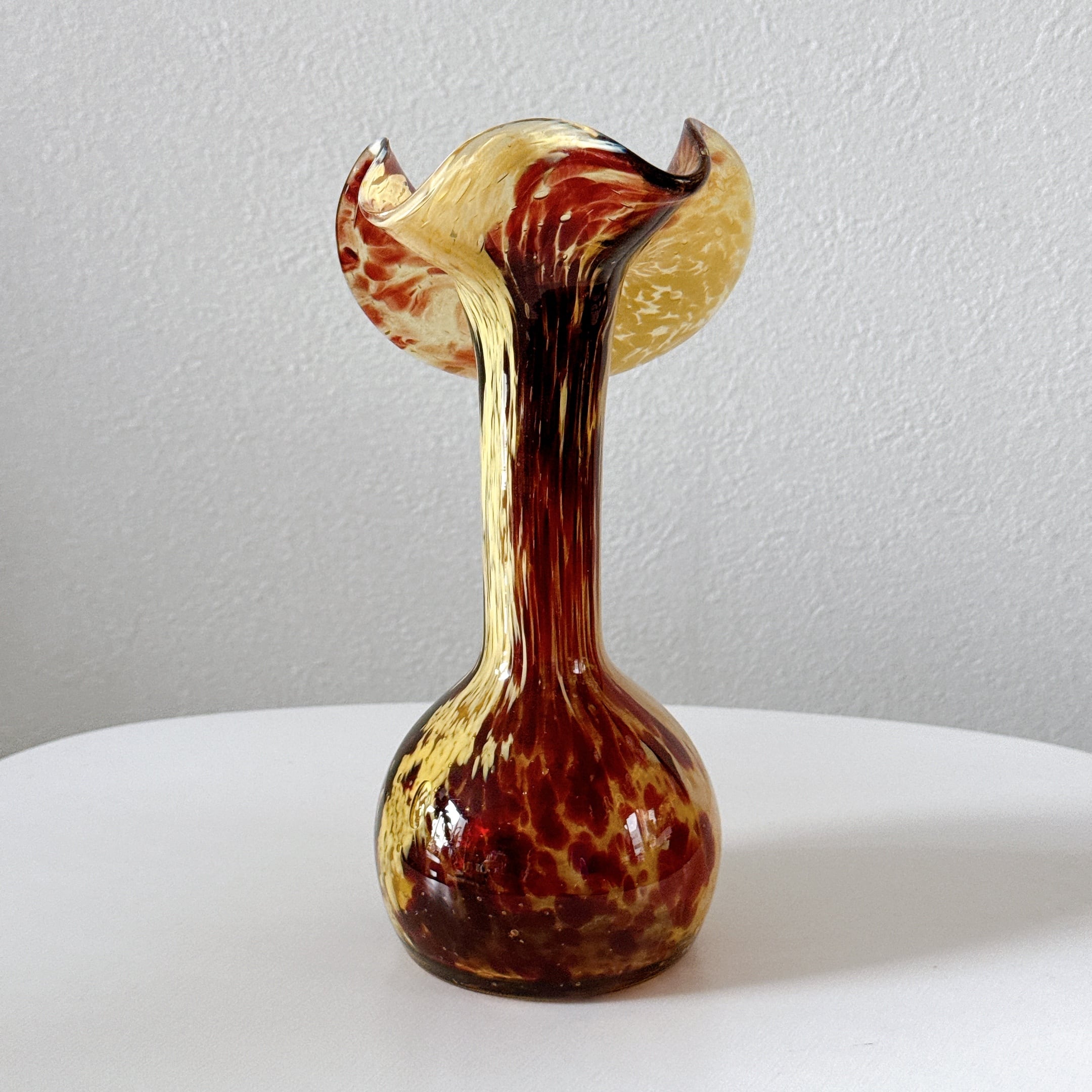 前傾のフリルの口が美しい、イタリア製ガラスのヴィンテージフラワーベースです。1点ものになります。