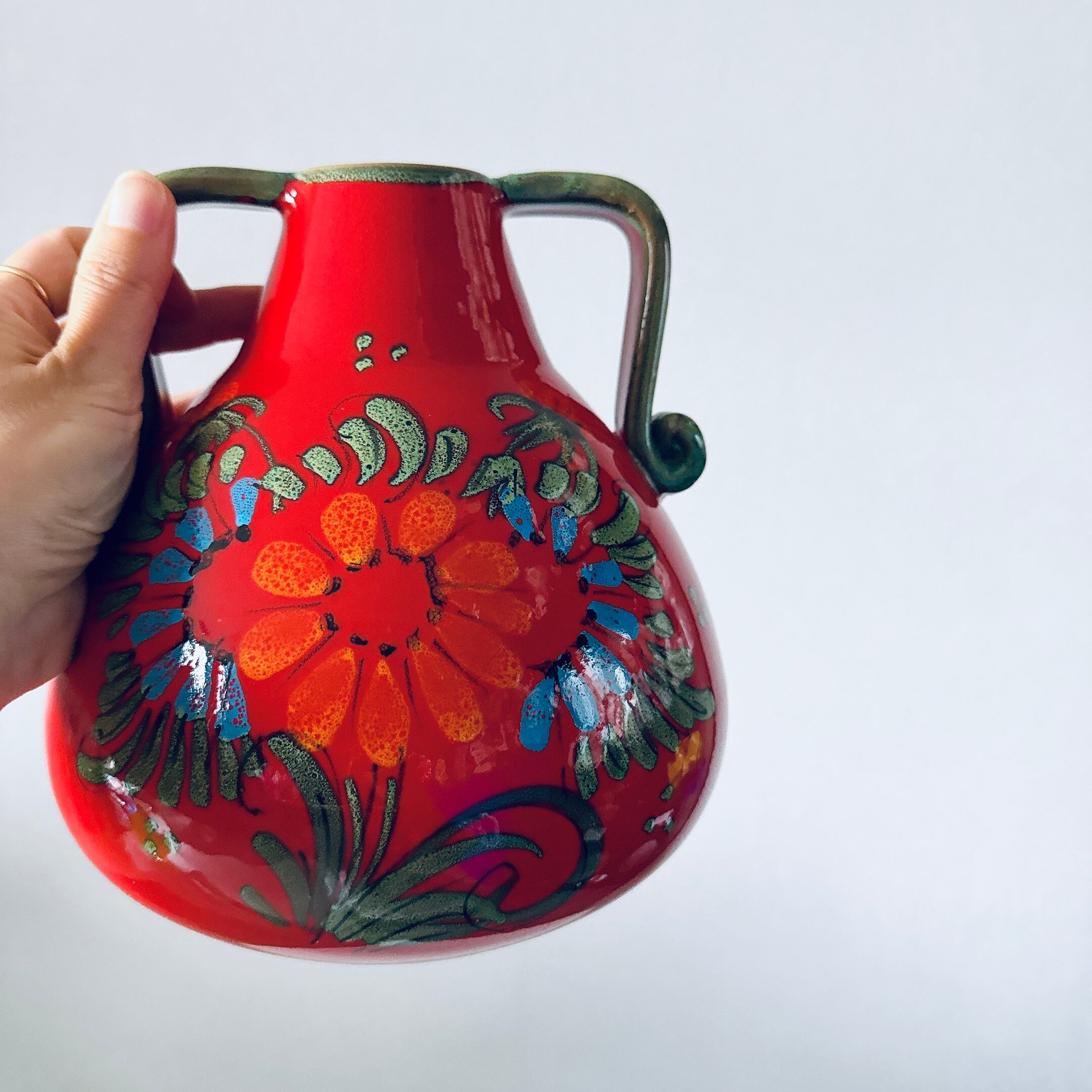 真っ赤な色とぽってりな形が可愛い、イタリア製陶器のヴィンテージフラワーベースです。1点ものになります。