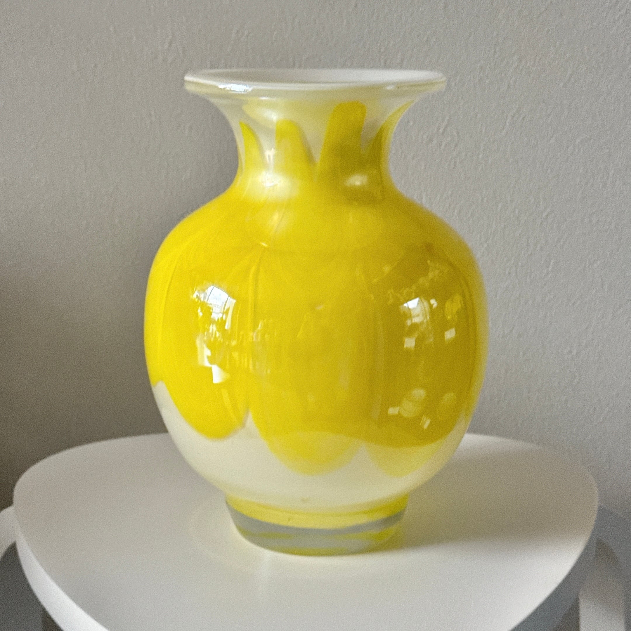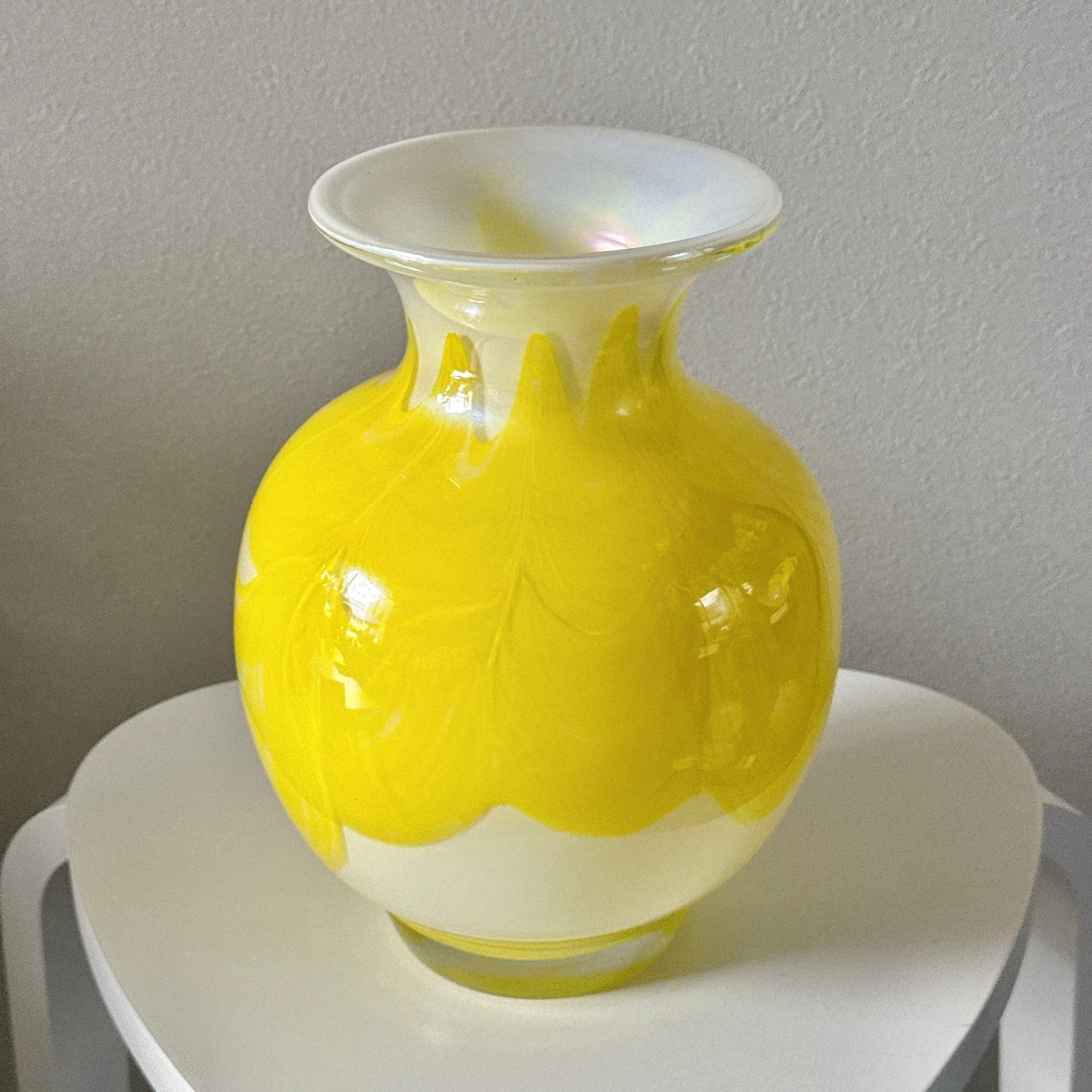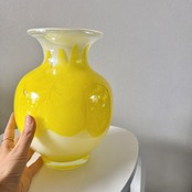 黄色の波模様が可愛い、昭和のレトロポップなヴィンテージフラワーベースです。1点ものになります。