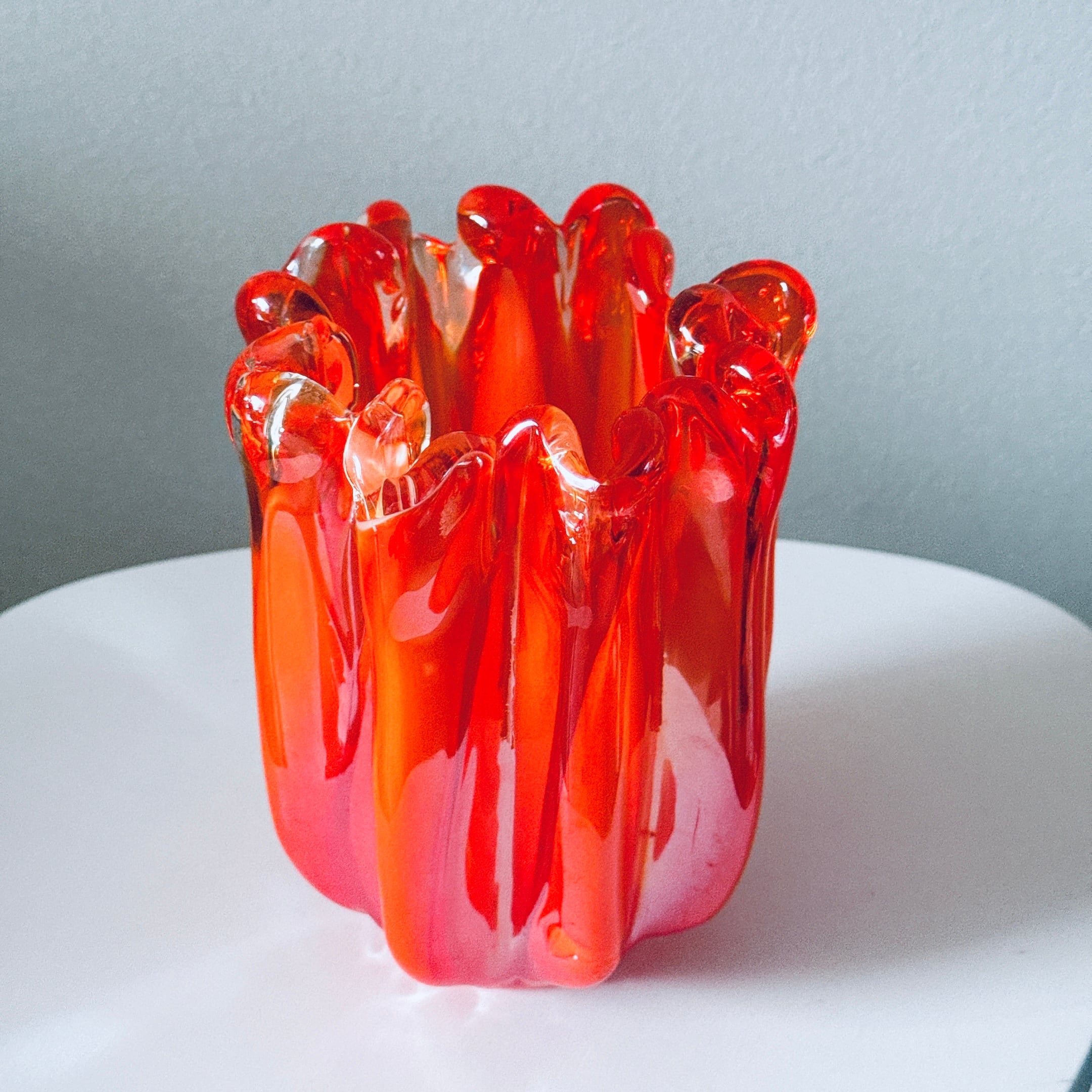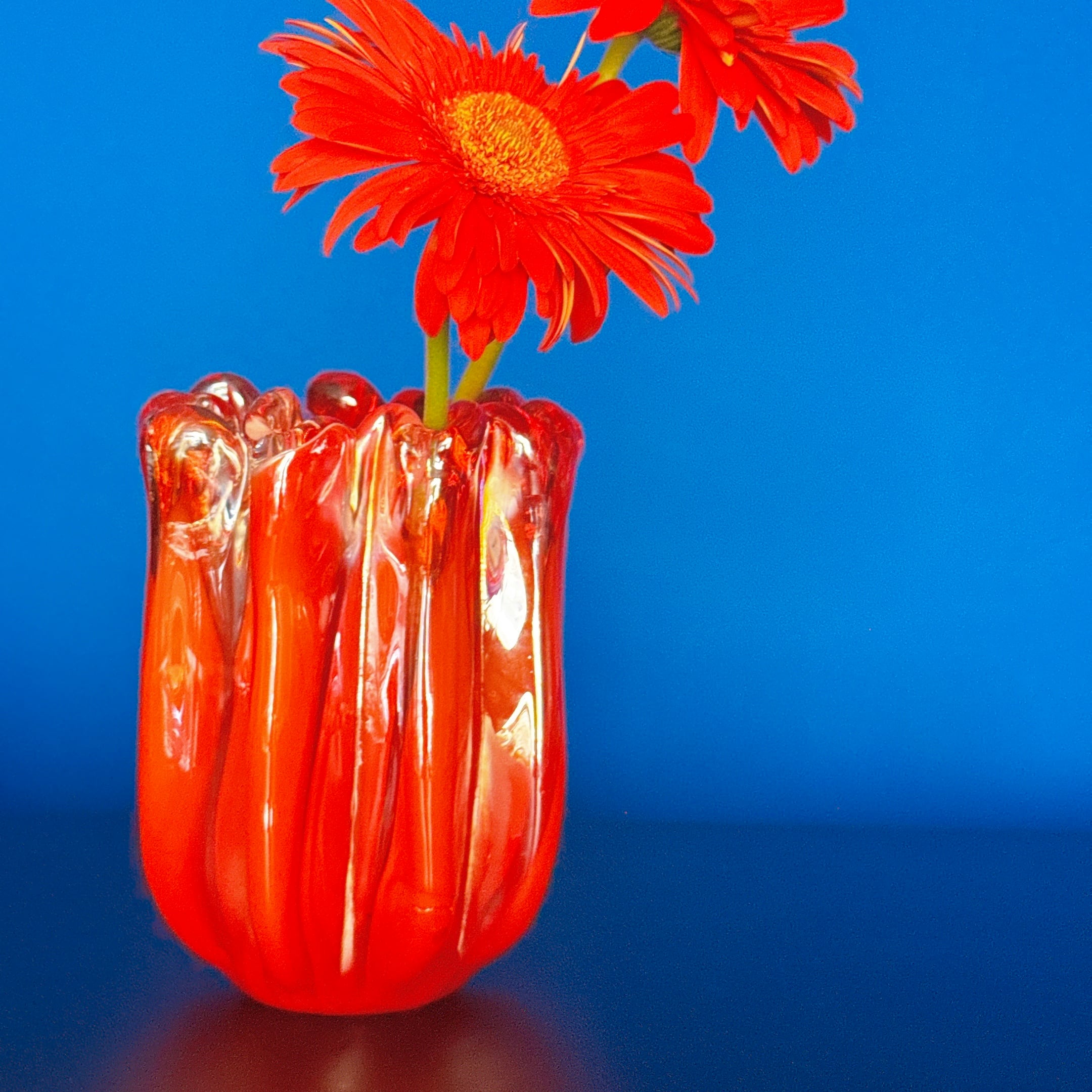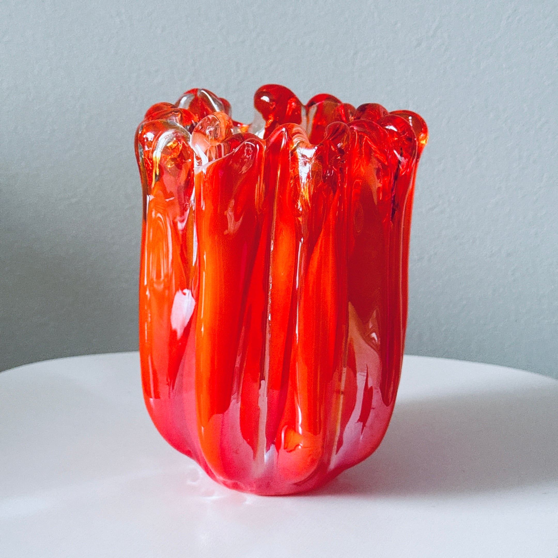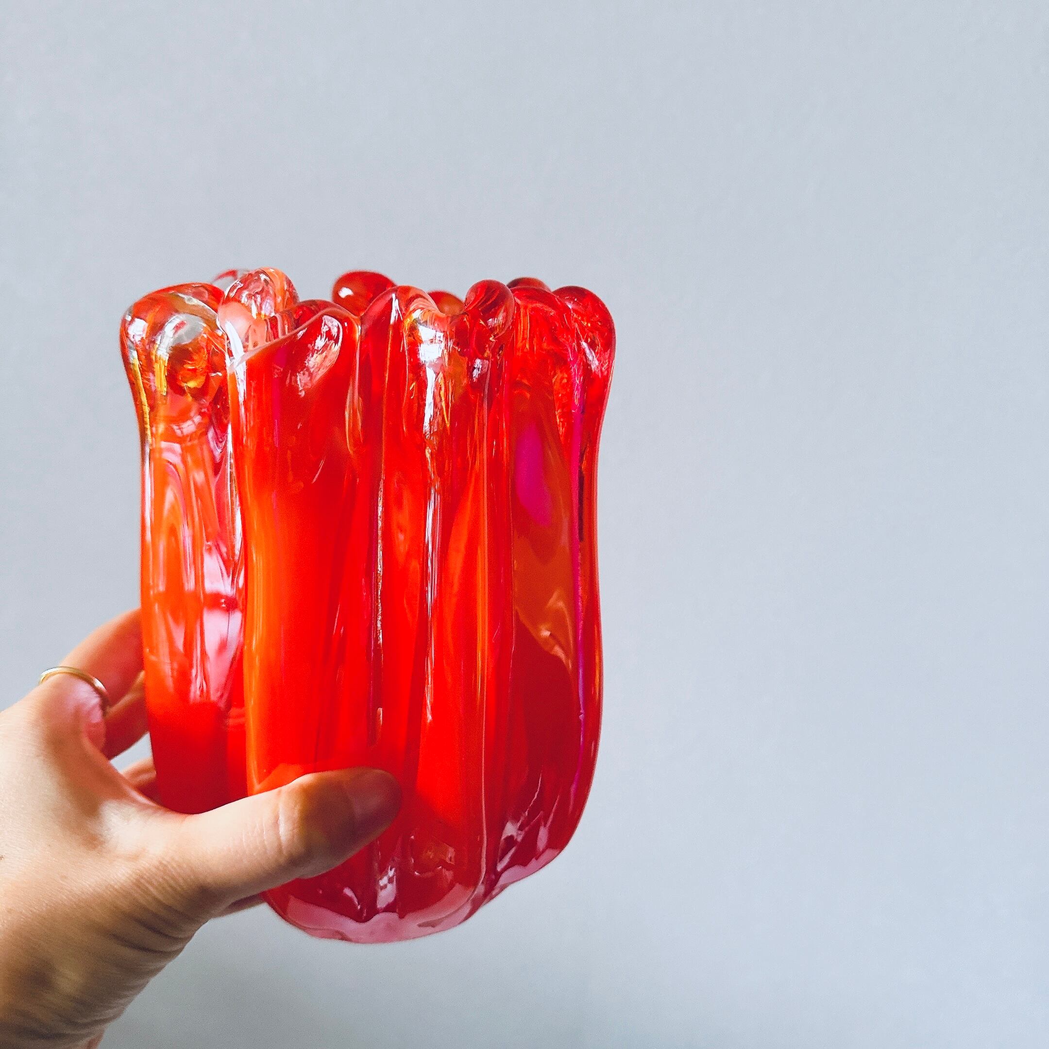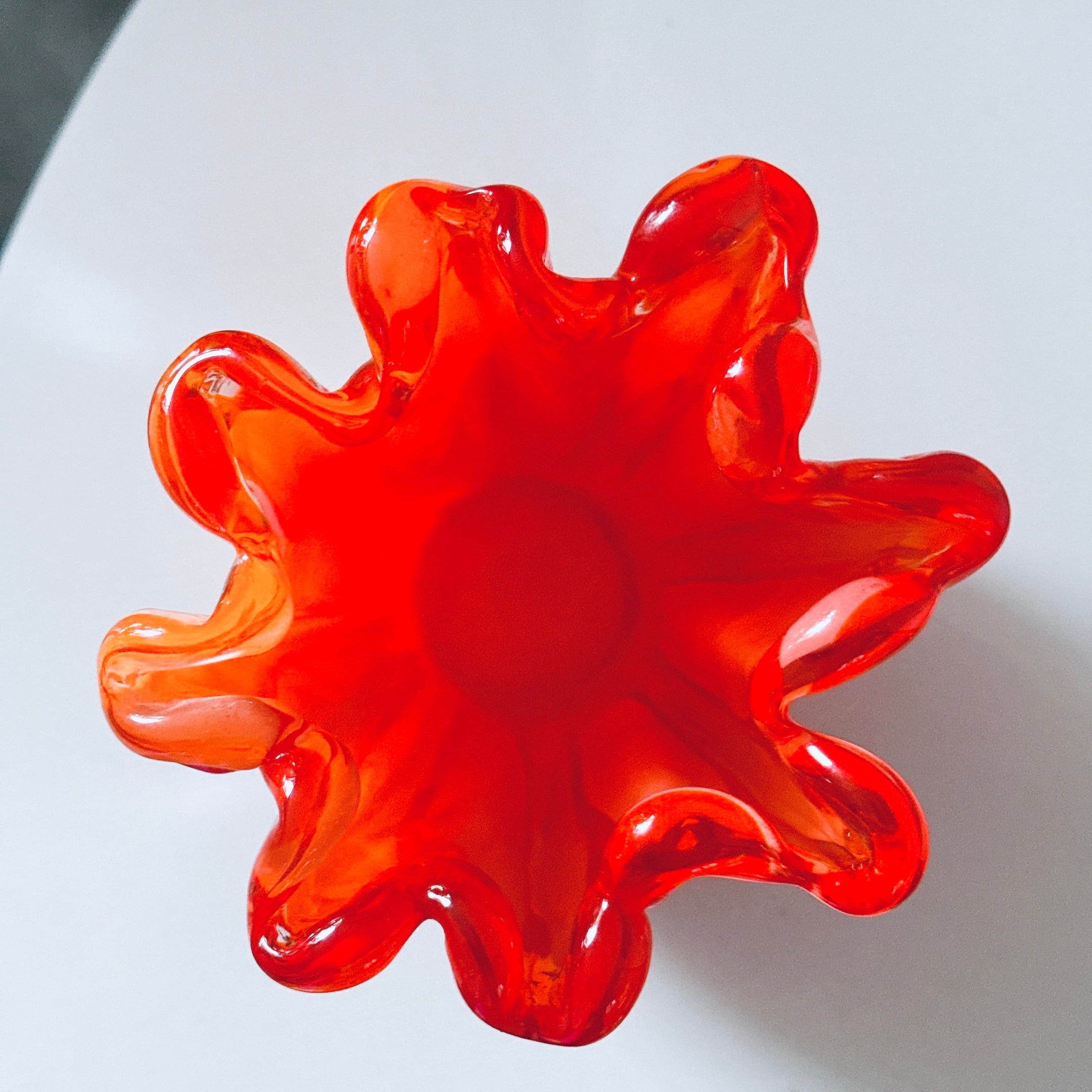 真っ赤なフリルが可愛い、昭和のレトロポップなヴィンテージフラワーベースです。1点ものになります。