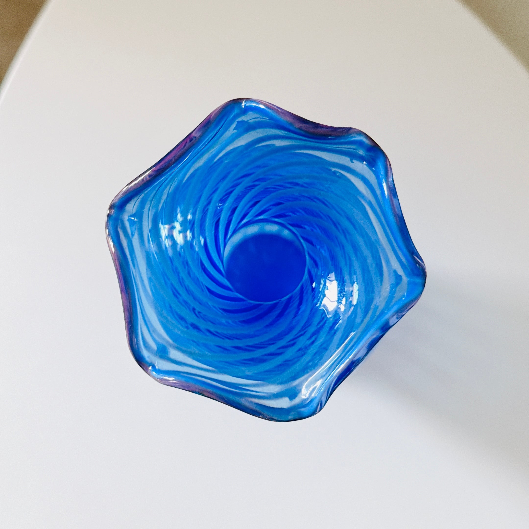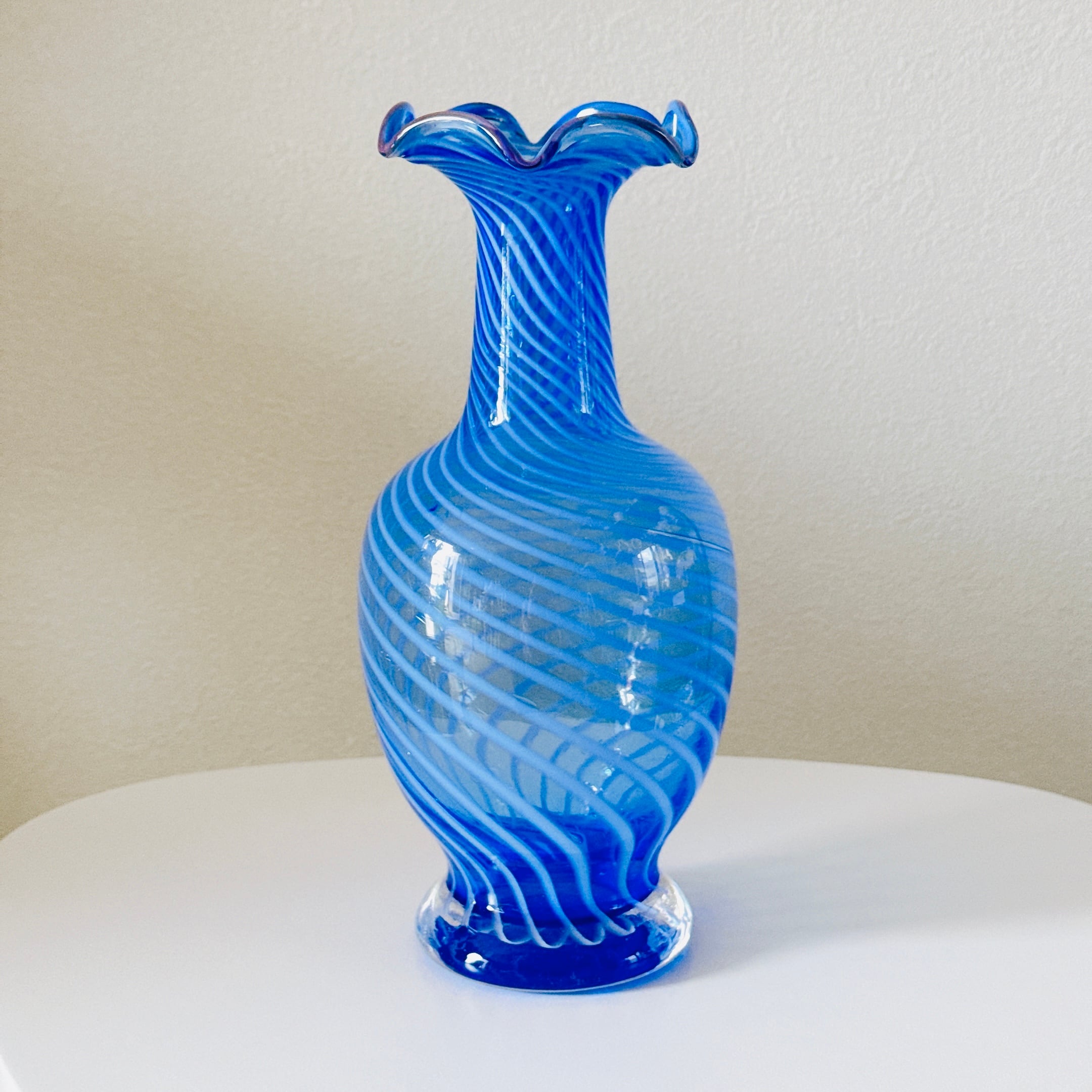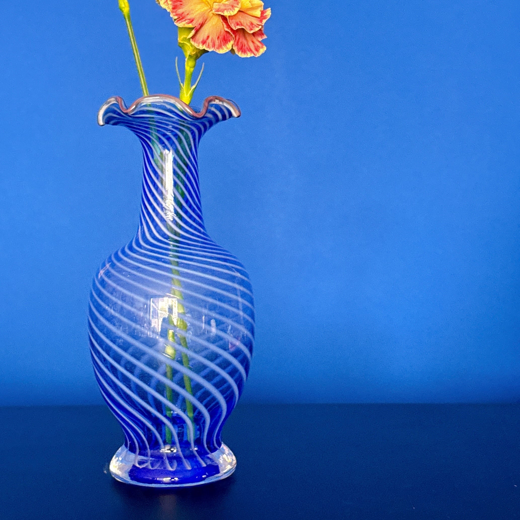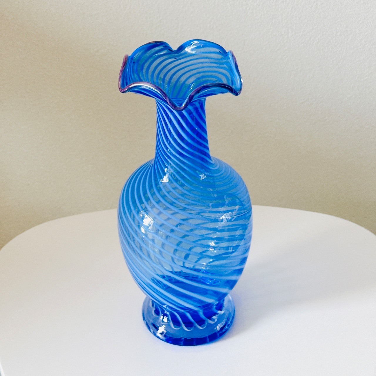 フリルと螺旋模様が可愛い、昭和のレトロポップなヴィンテージフラワーベースです。1点ものになります。