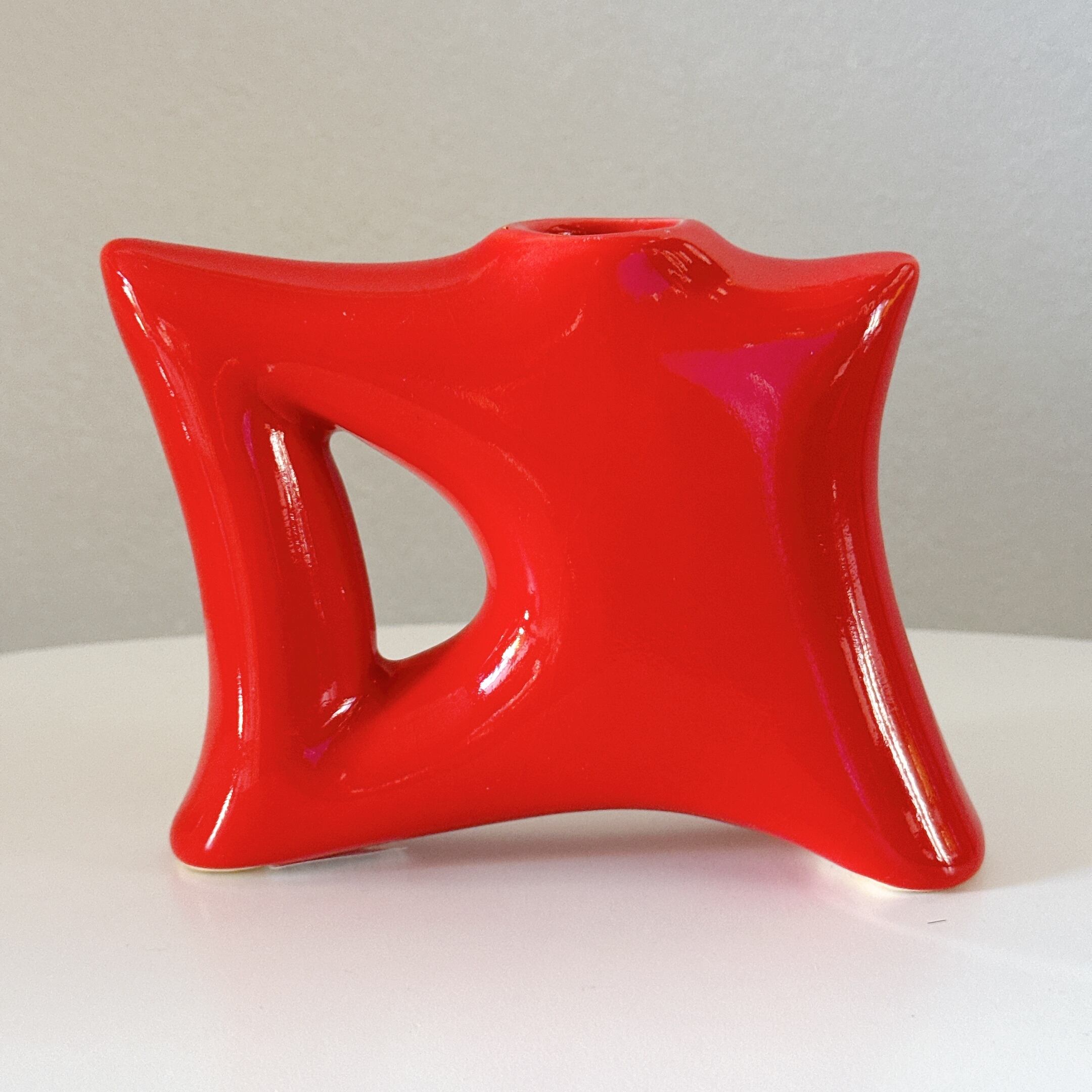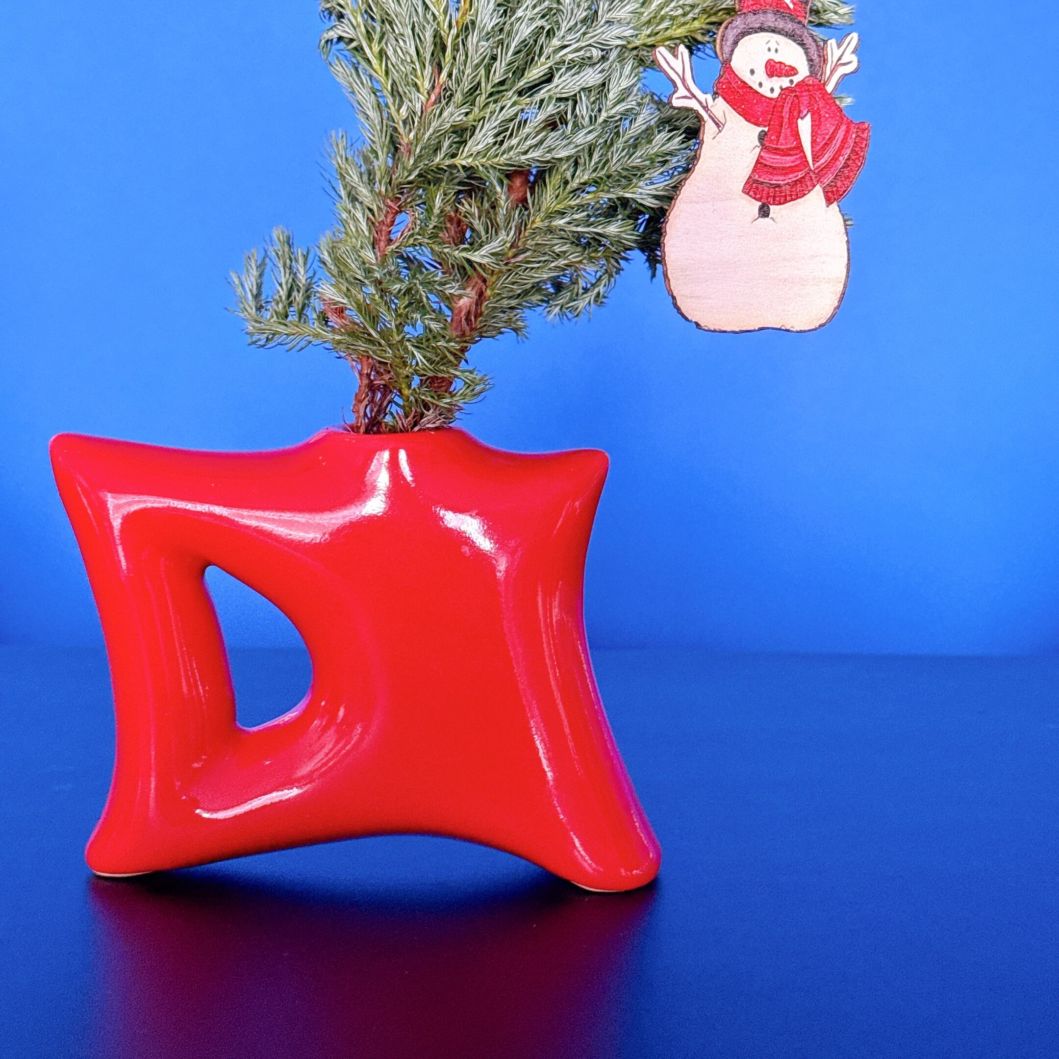 ユニークなデザインと真っ赤な色が可愛い、クリスマスにぴったりなヴィンテージフラワーベースです。1点ものになります。
