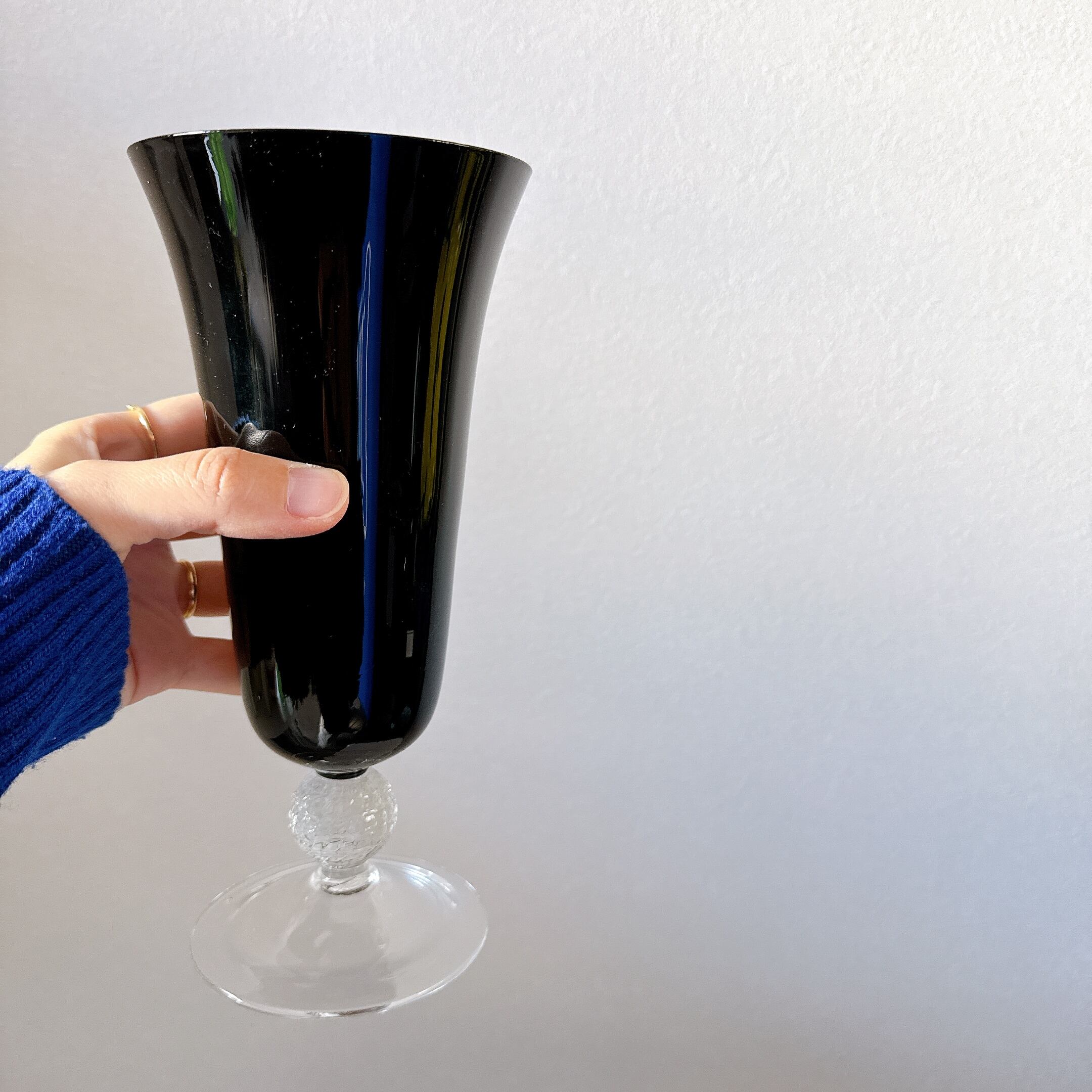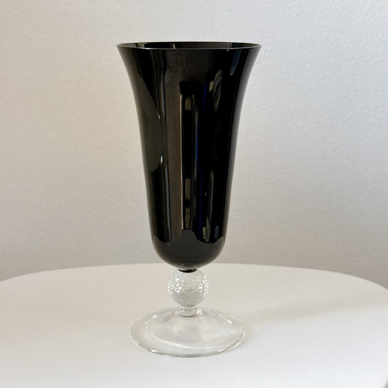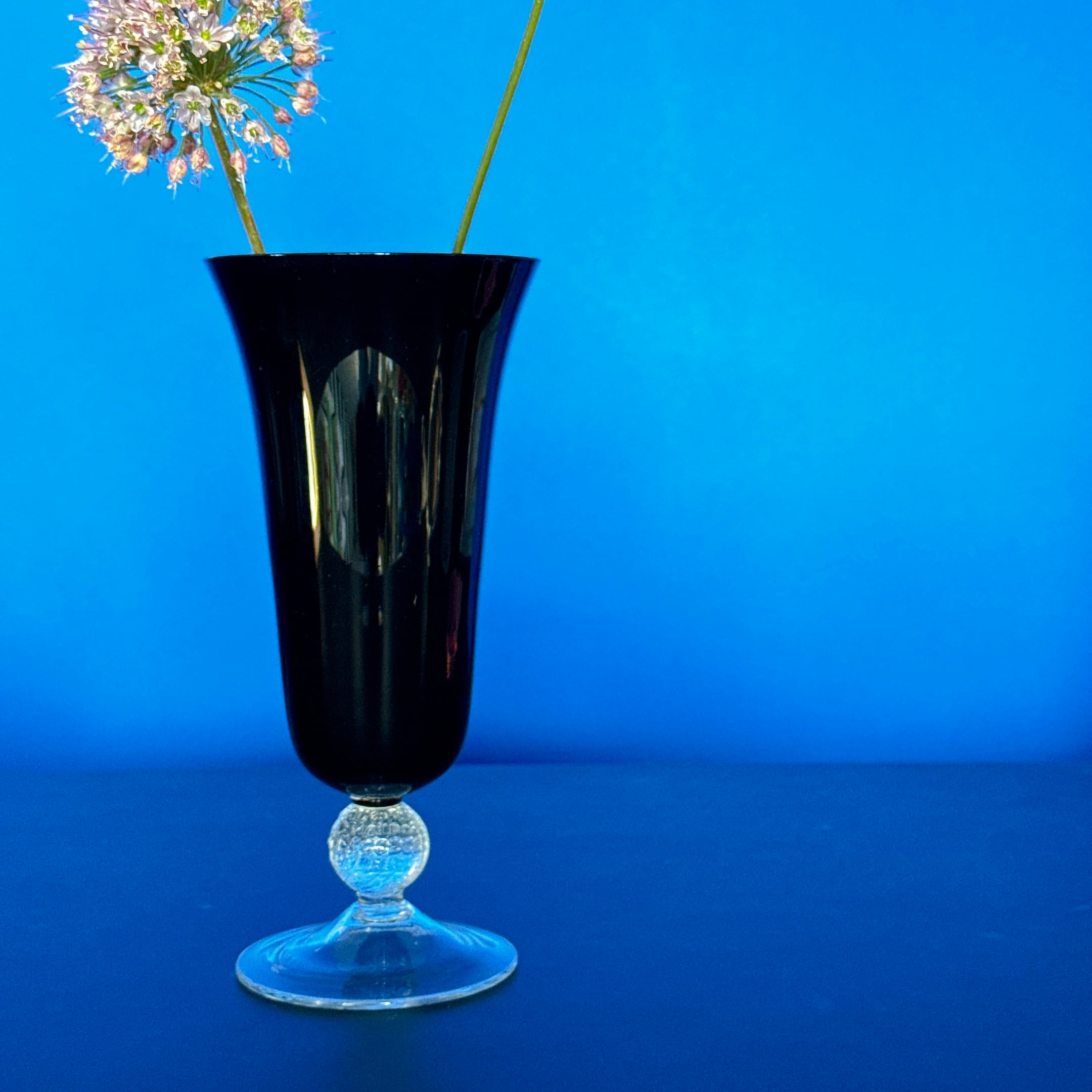 めずらしい黒いガラスのヴィンテージフラワーベースです。1点ものになります。
