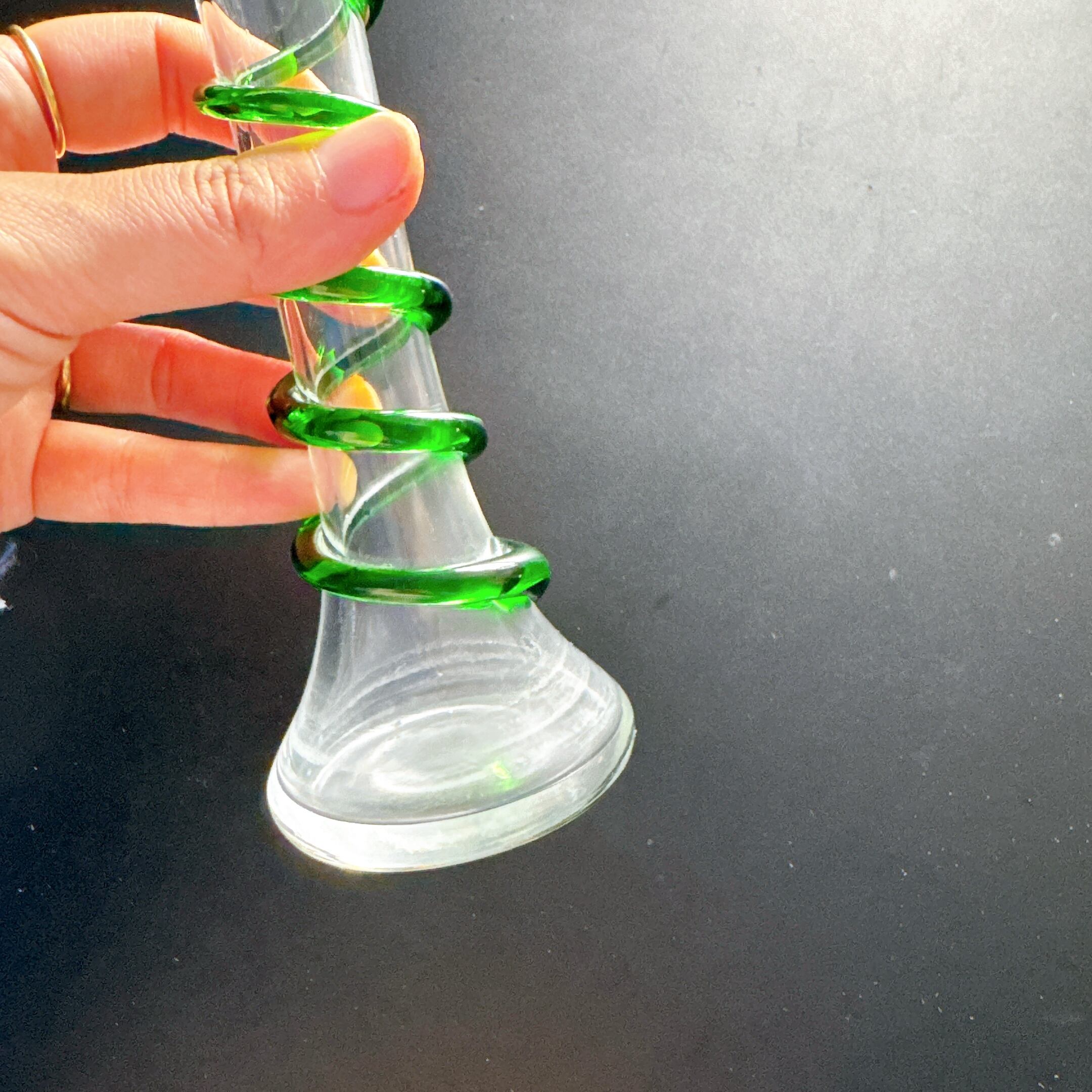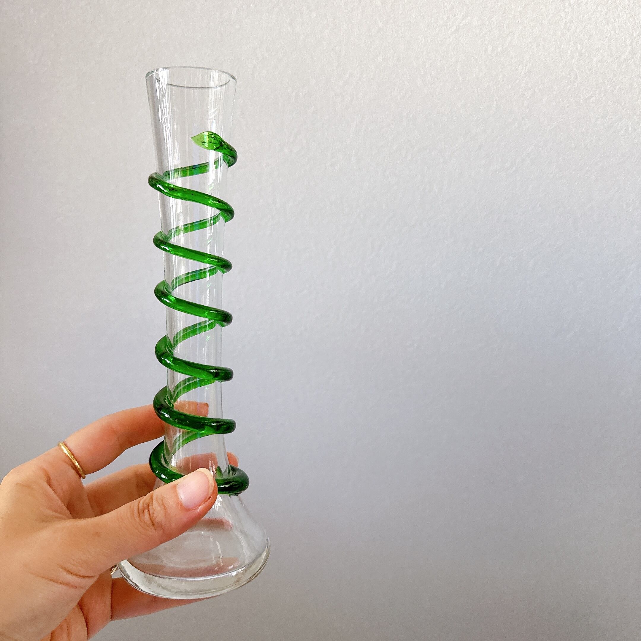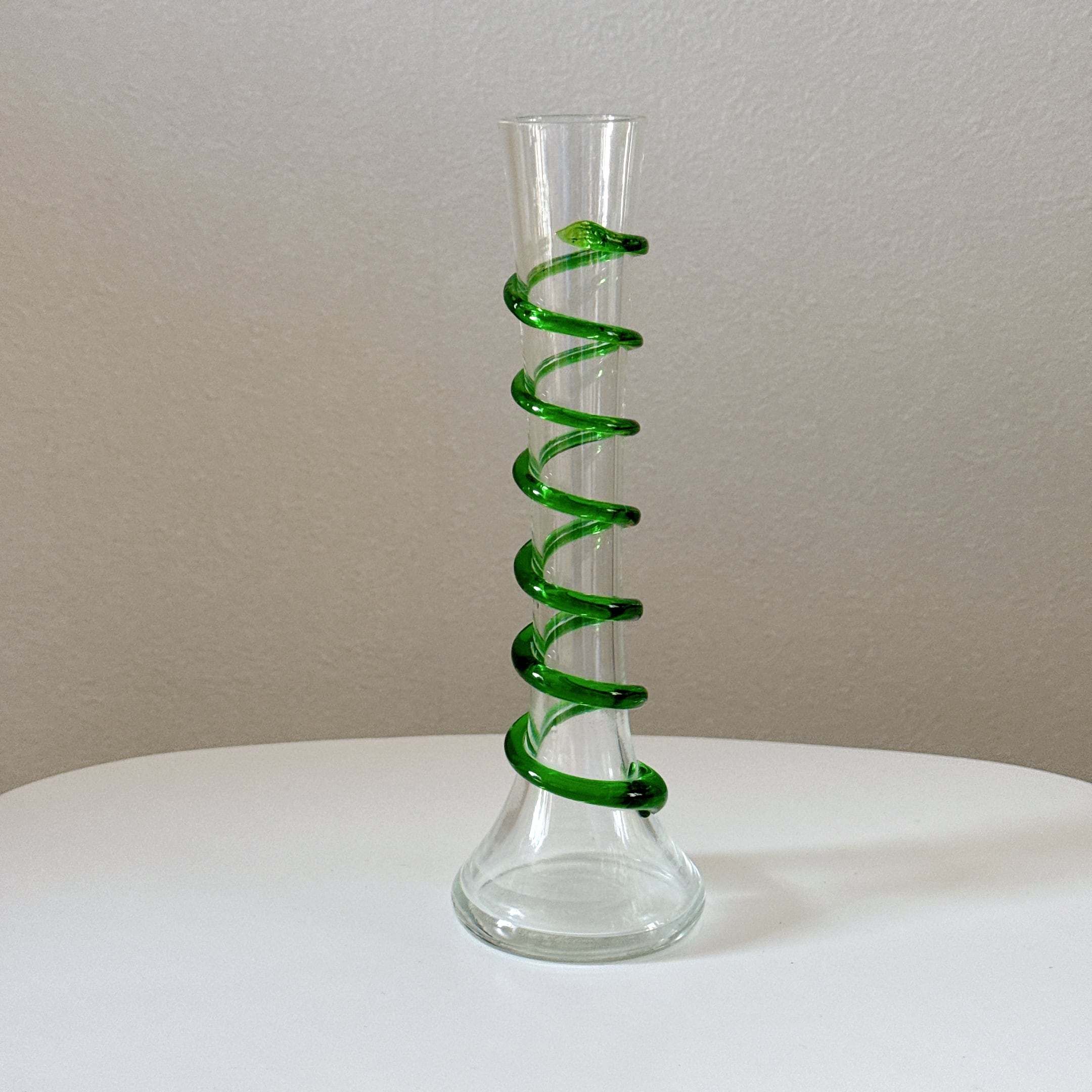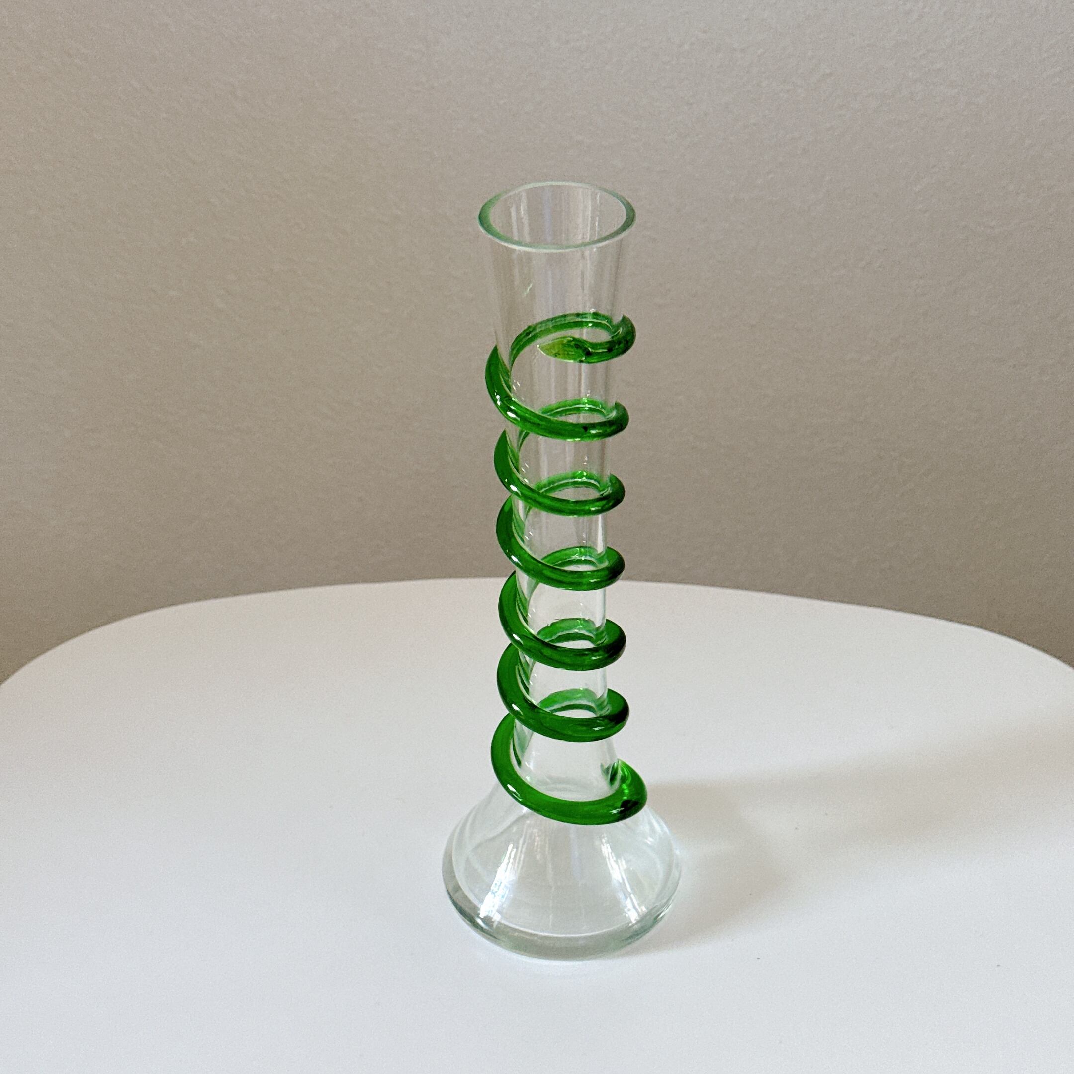 螺旋状のガラス細工が可愛い、ヴィンテージの一輪挿しです。1点ものになります。