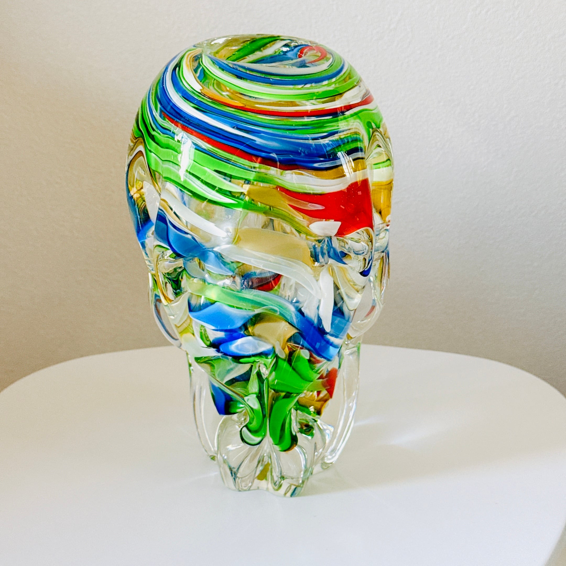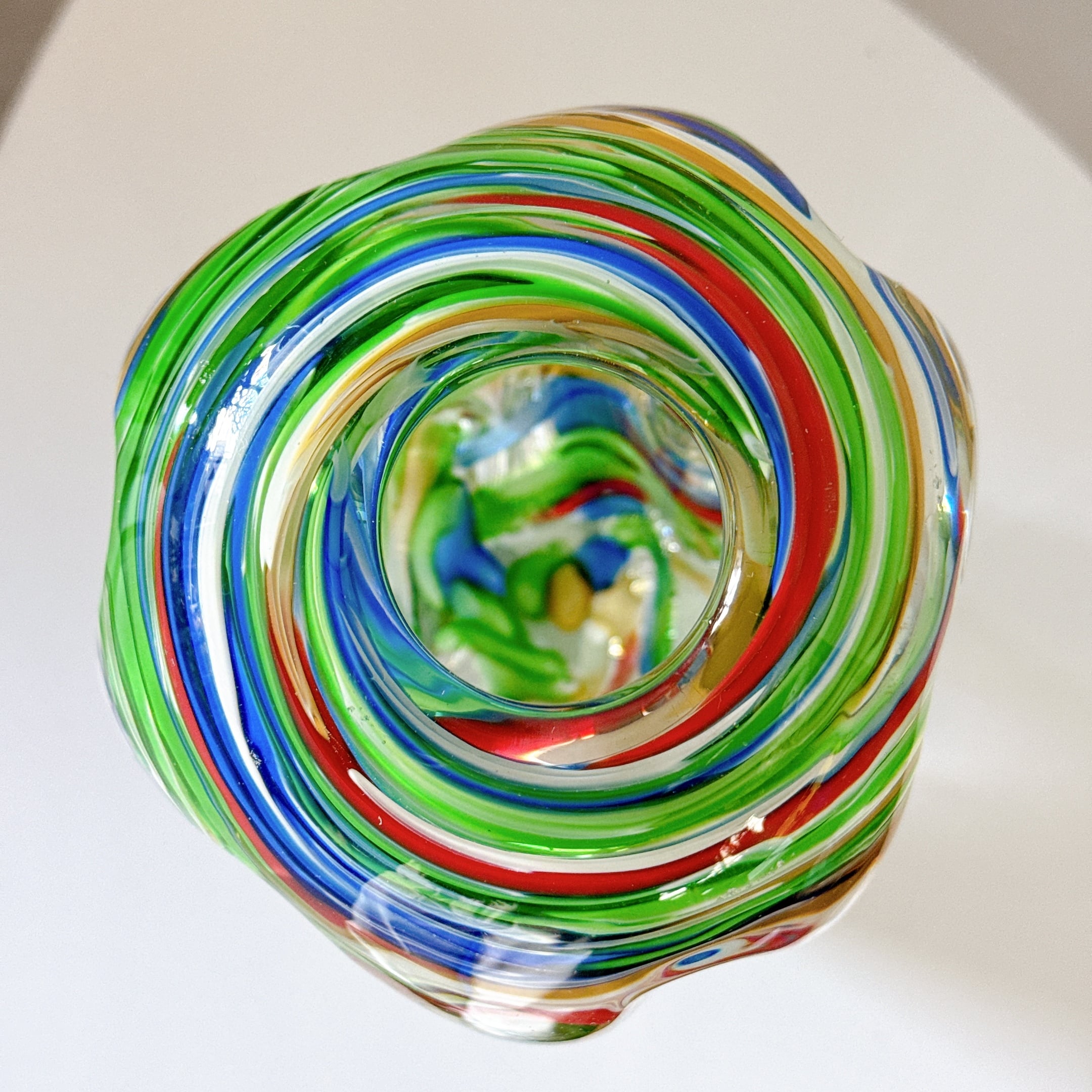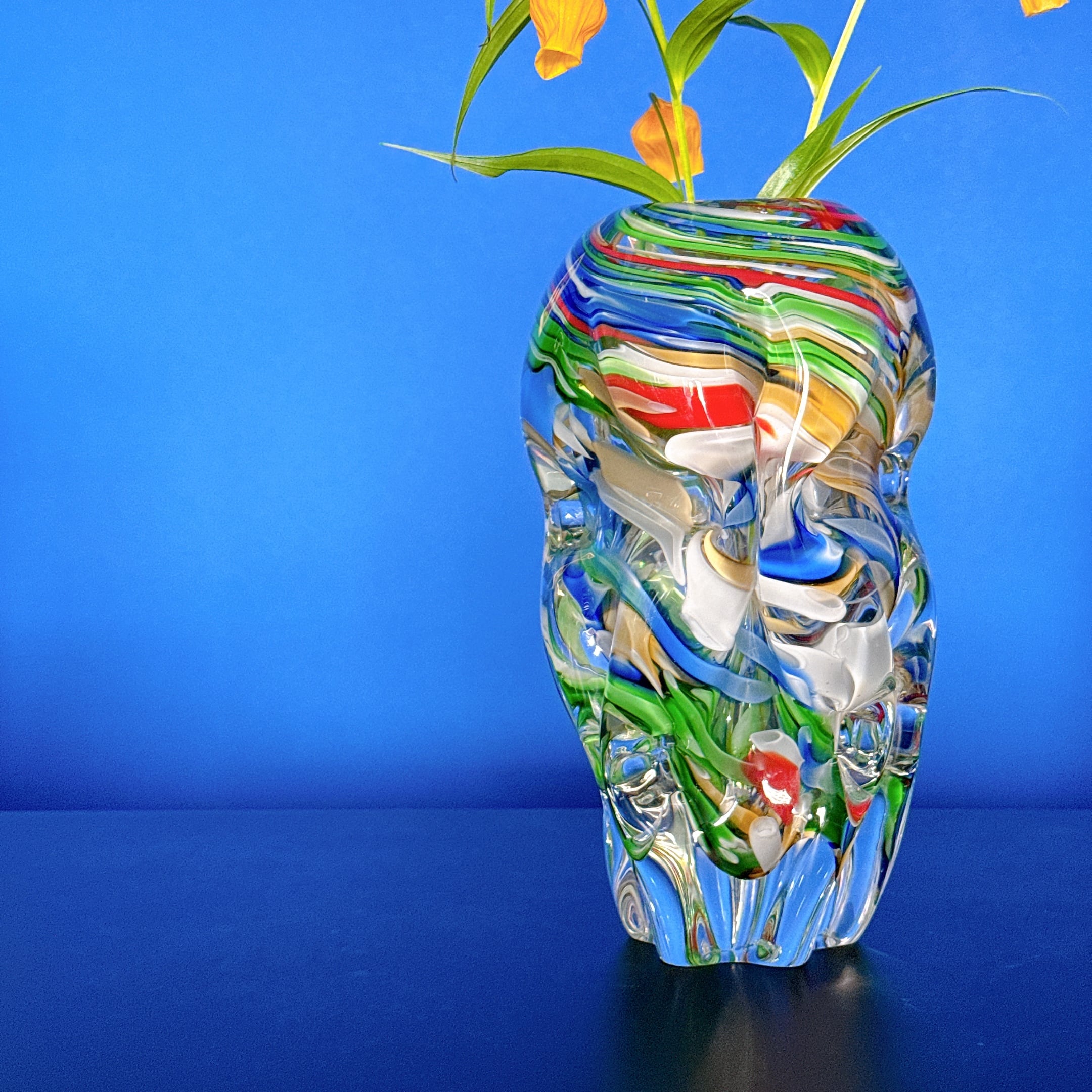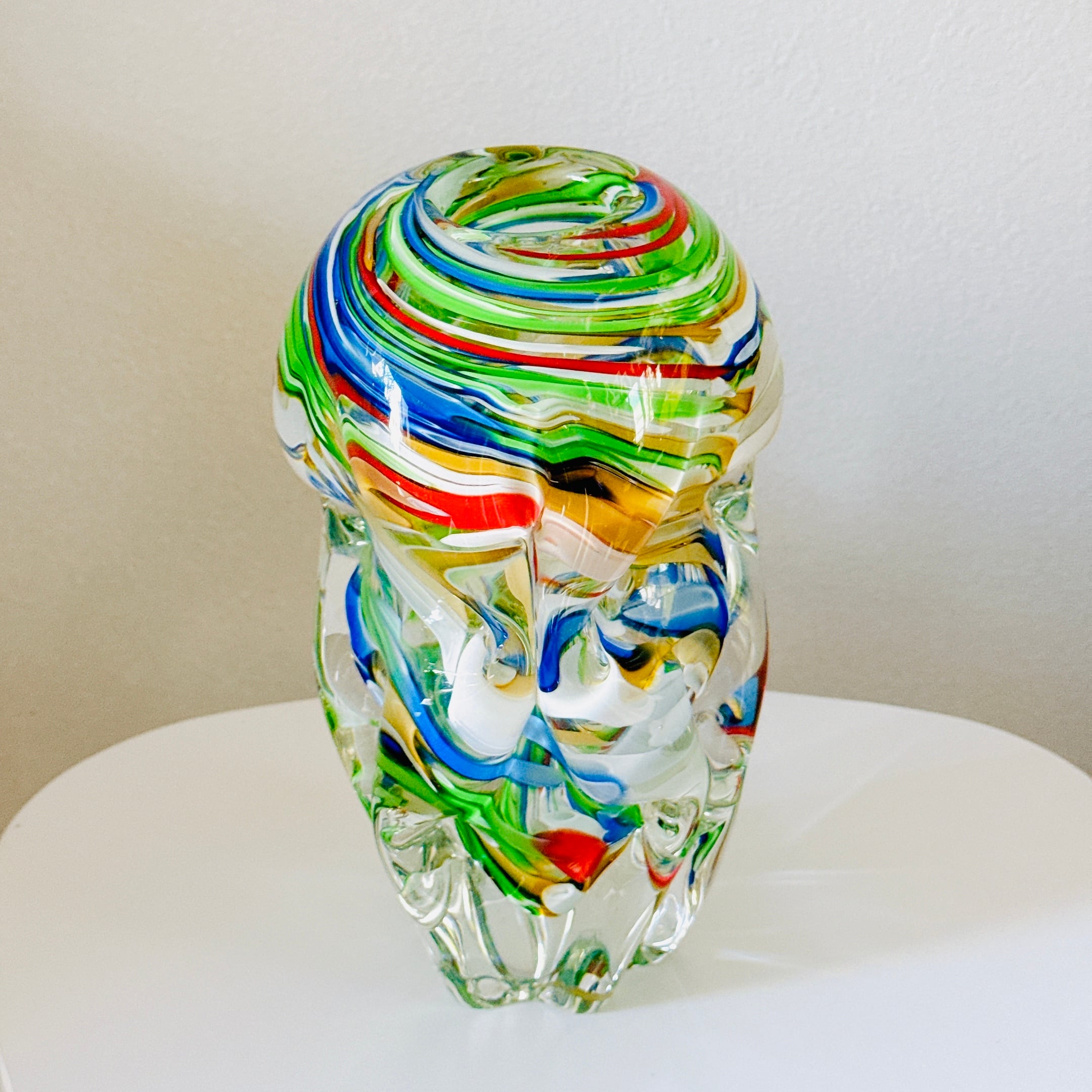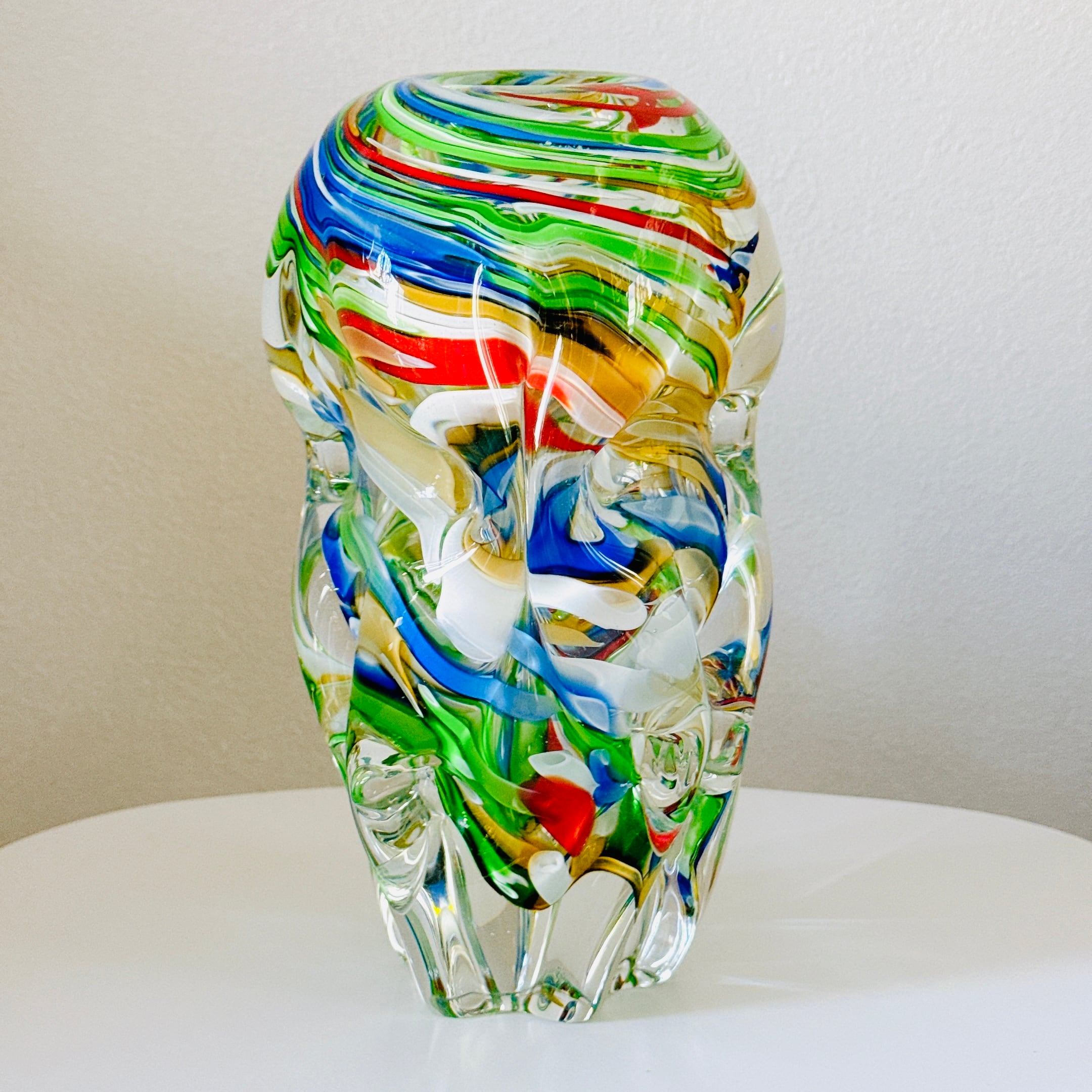 鮮やかなマーブル模様とねじったような形が面白い、昭和のレトロポップなヴィンテージフラワーベースです。1点ものになります。