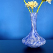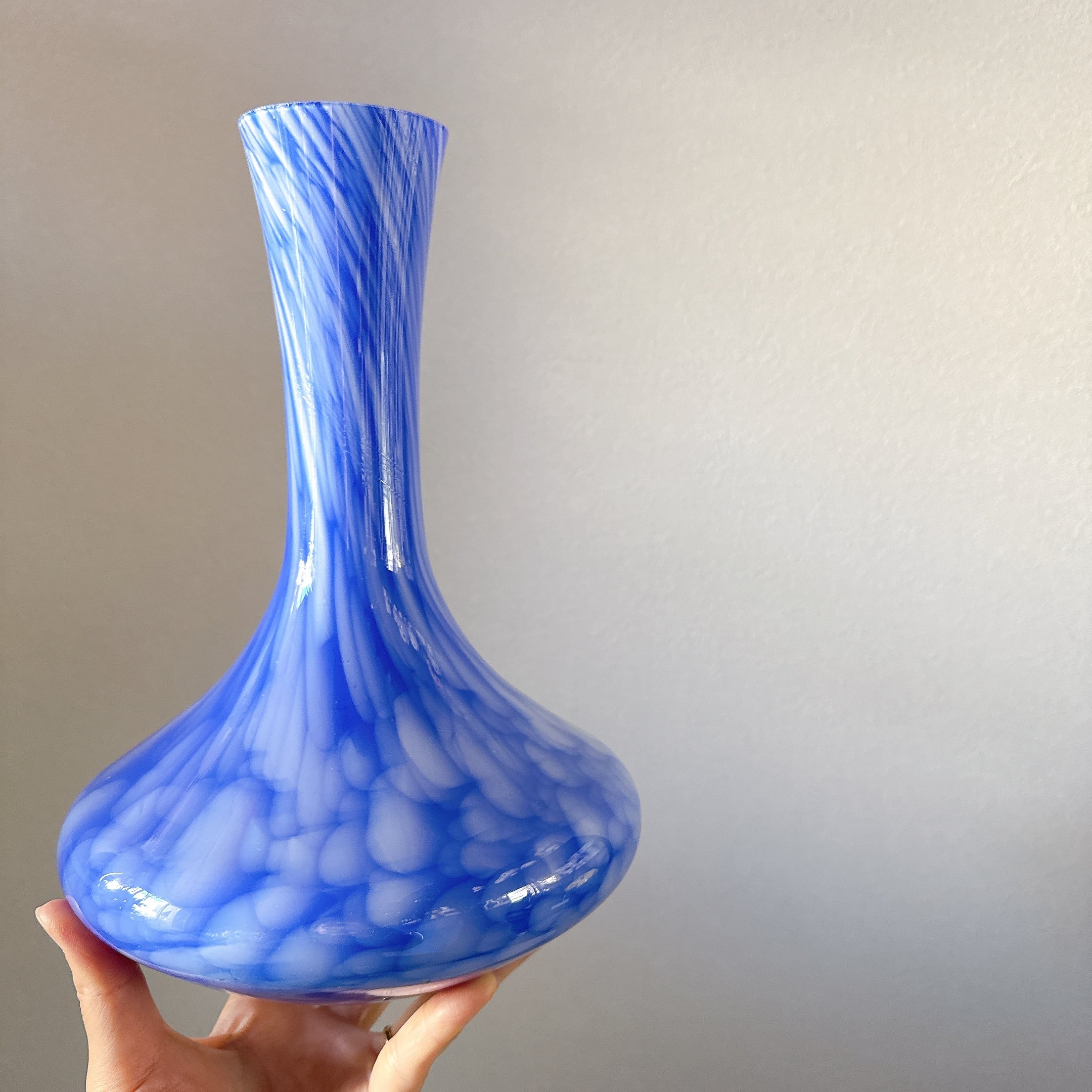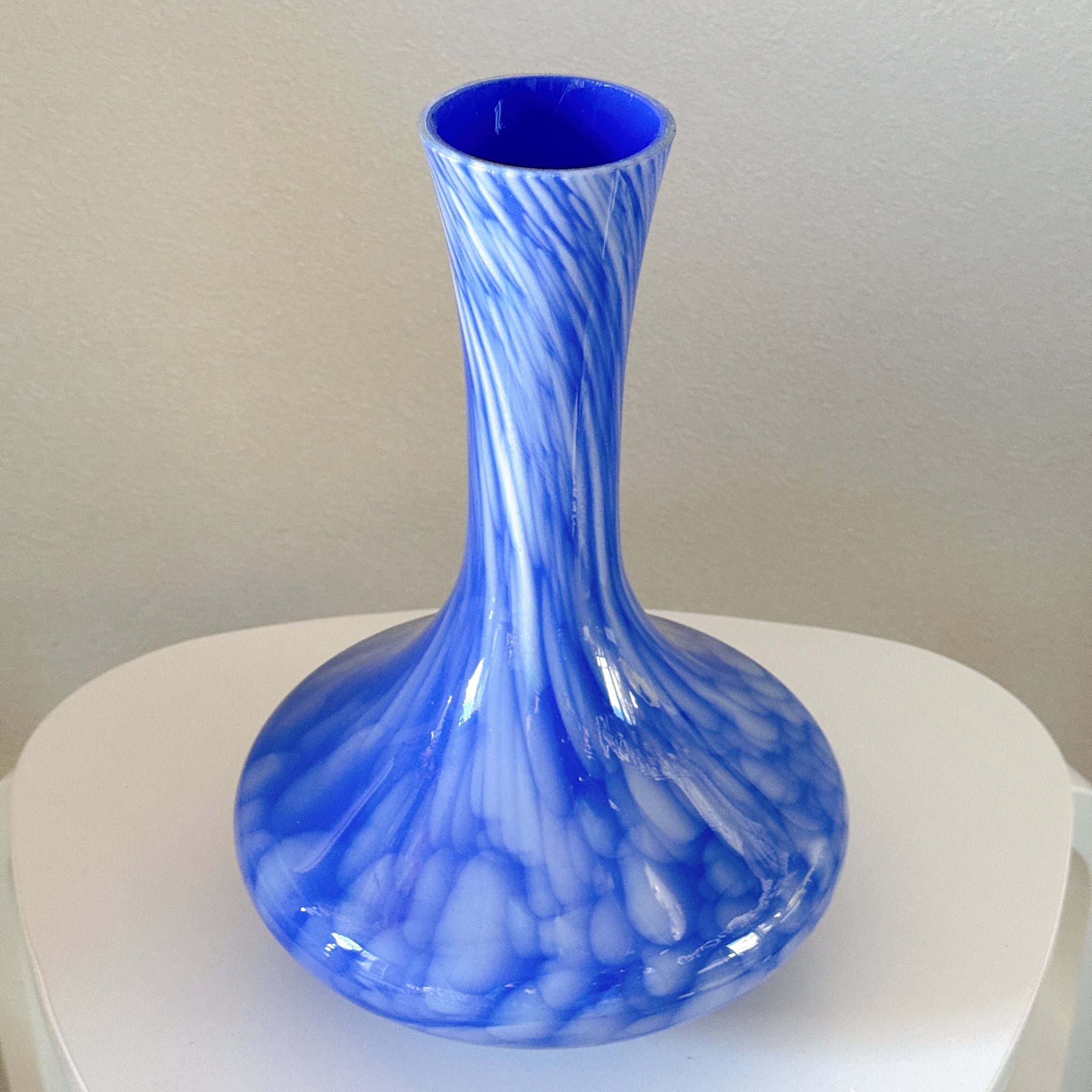 形と模様が美しい、ガラス製ヴィンテージフラワーベースです。1点ものになります。