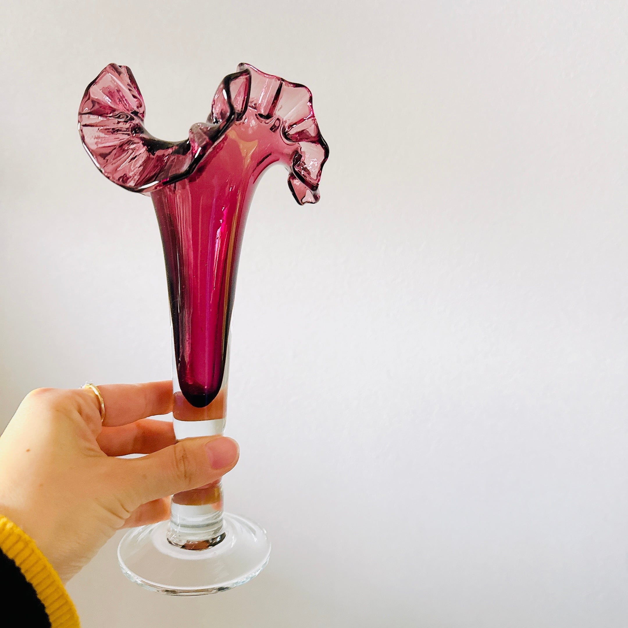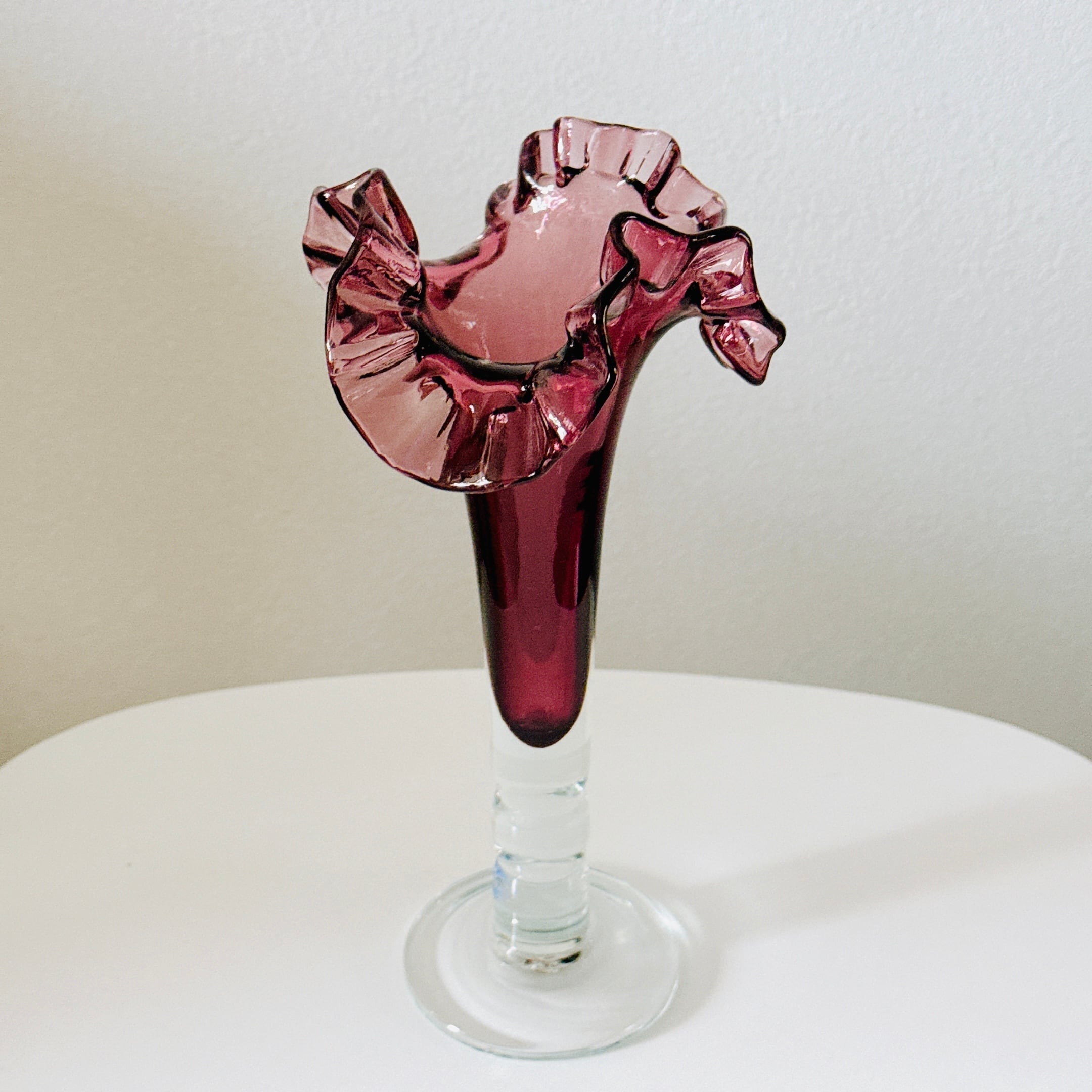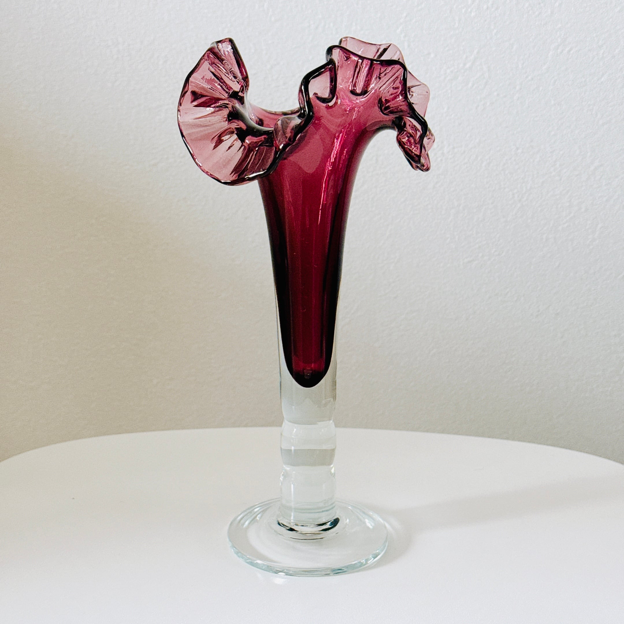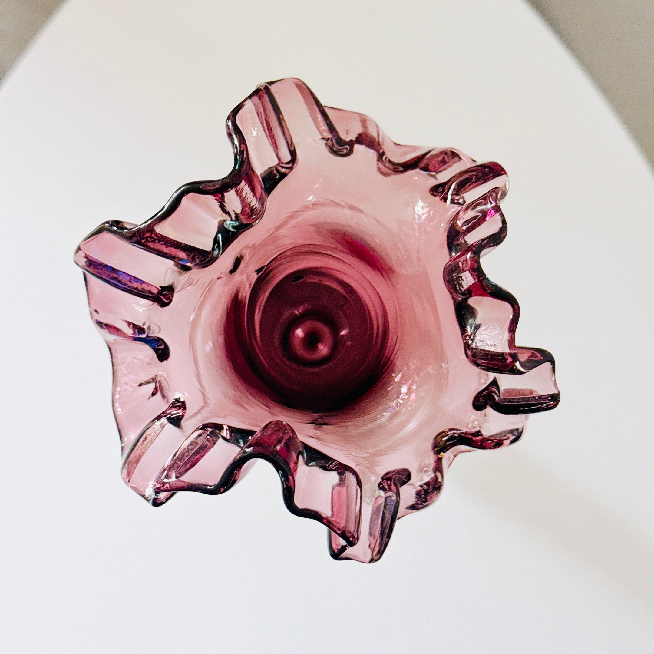 北一硝子の花瓶です。繊細なフリルが可愛い、昭和レトロなヴィンテージフラワーベースです。