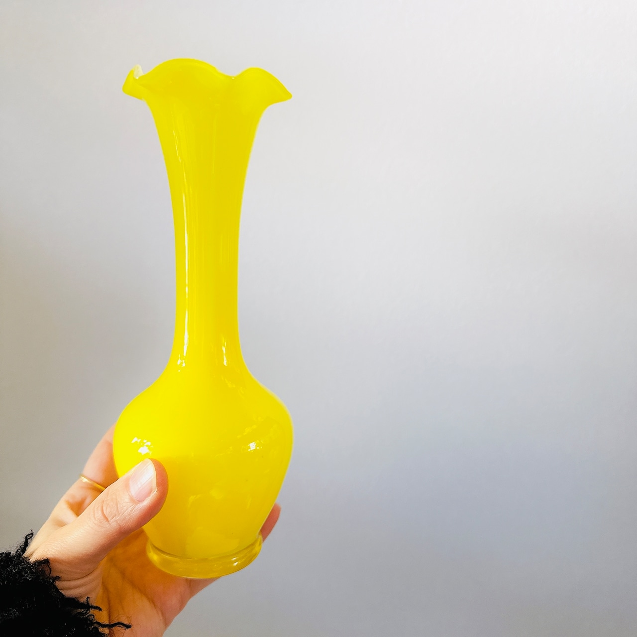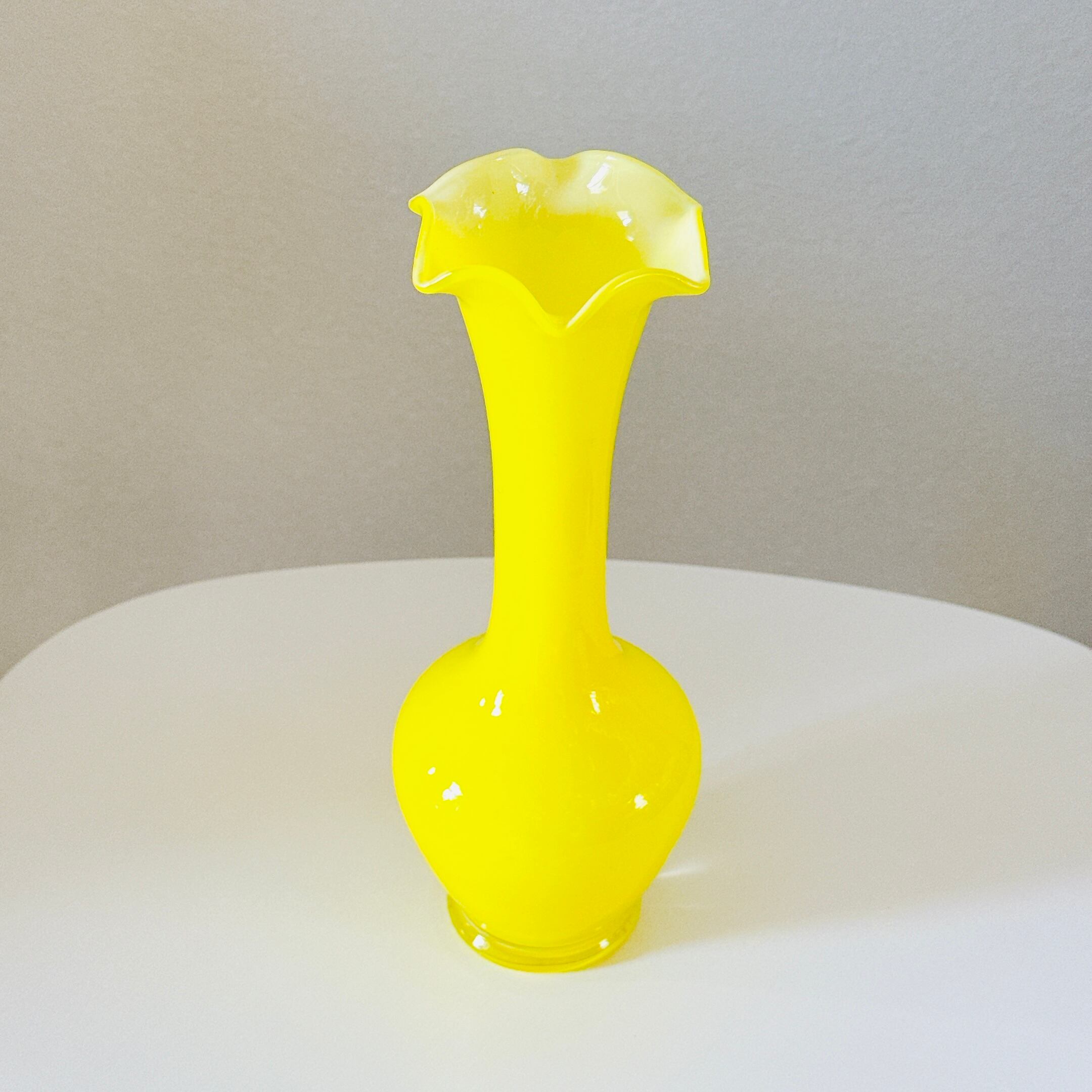 鮮やかな黄色が可愛い、昭和のレトロポップなヴィンテージフラワーベースです。1点ものになります。