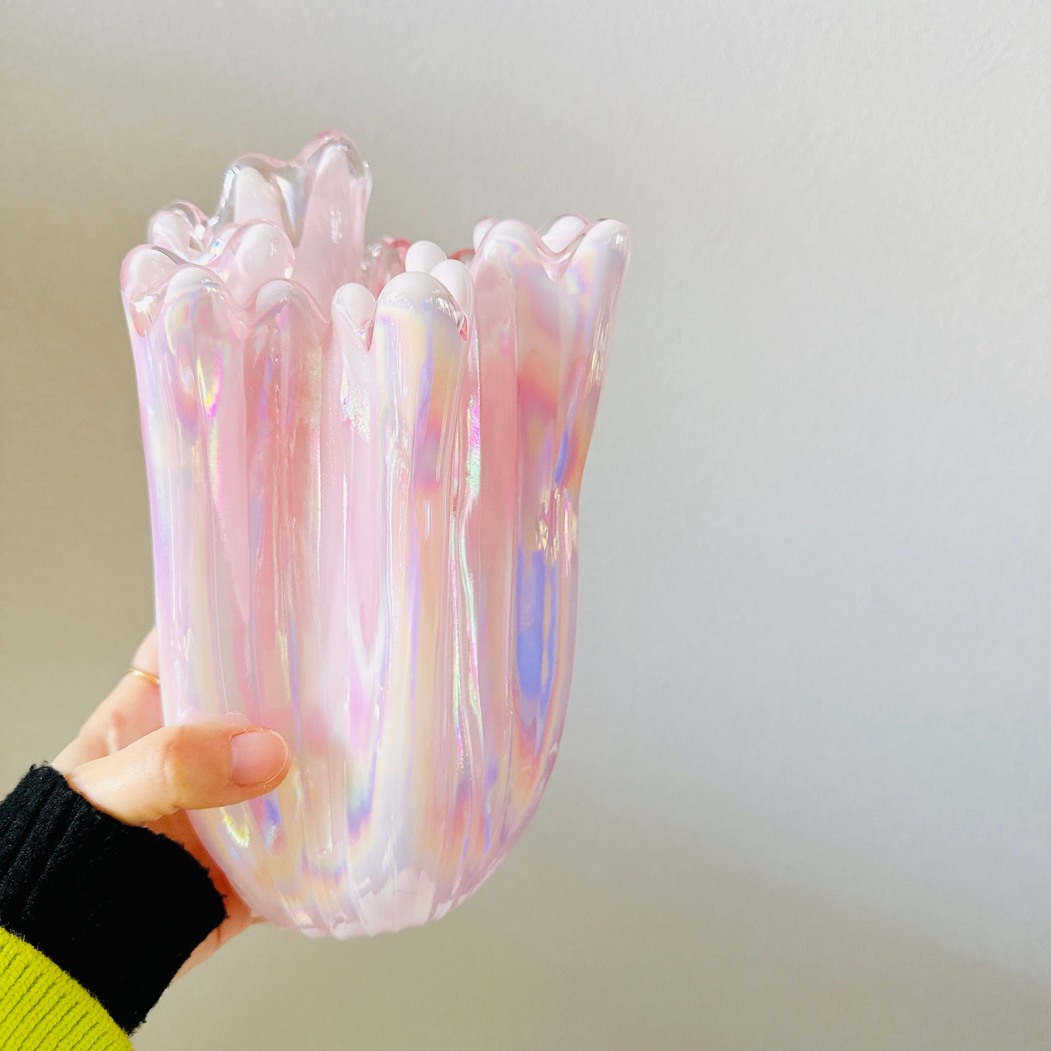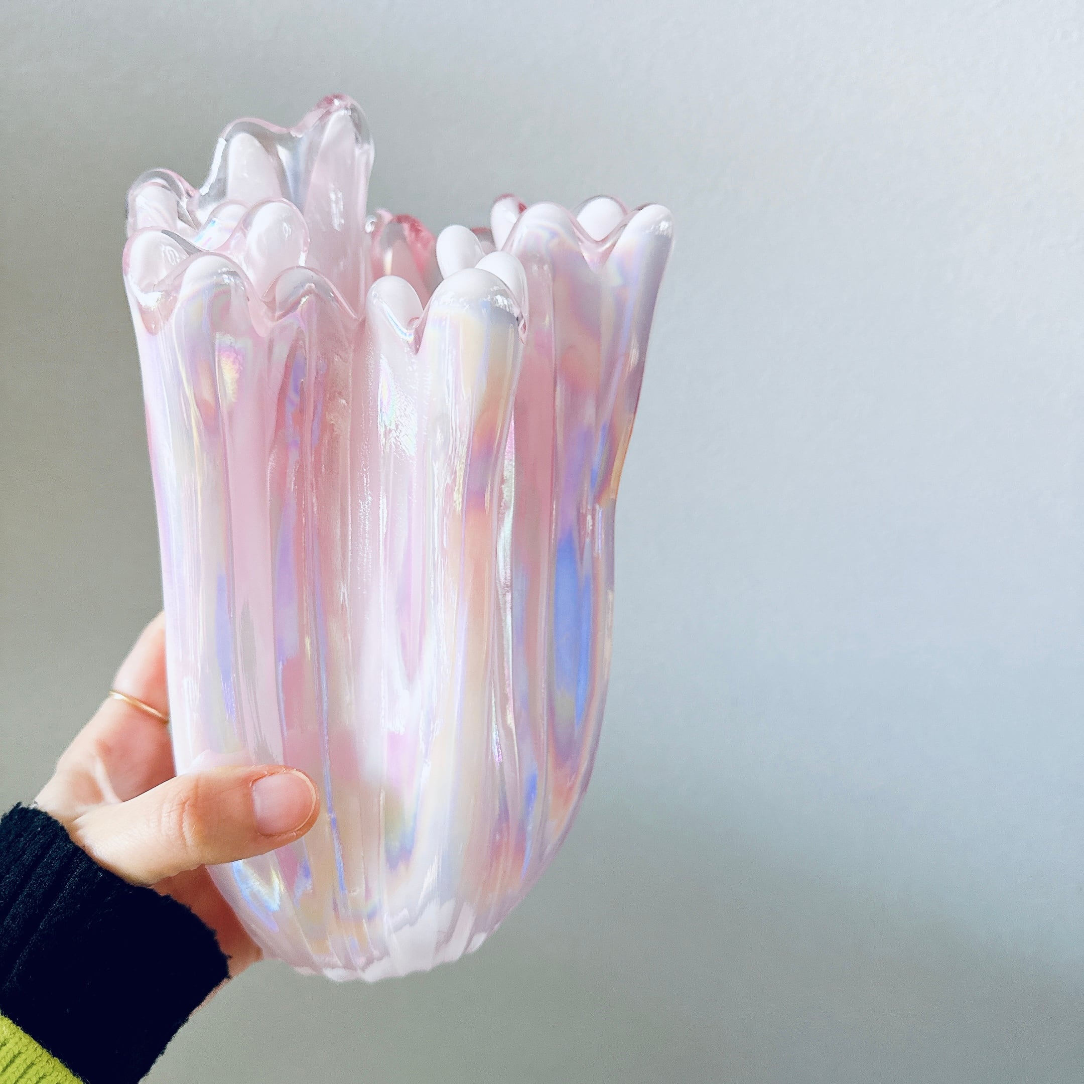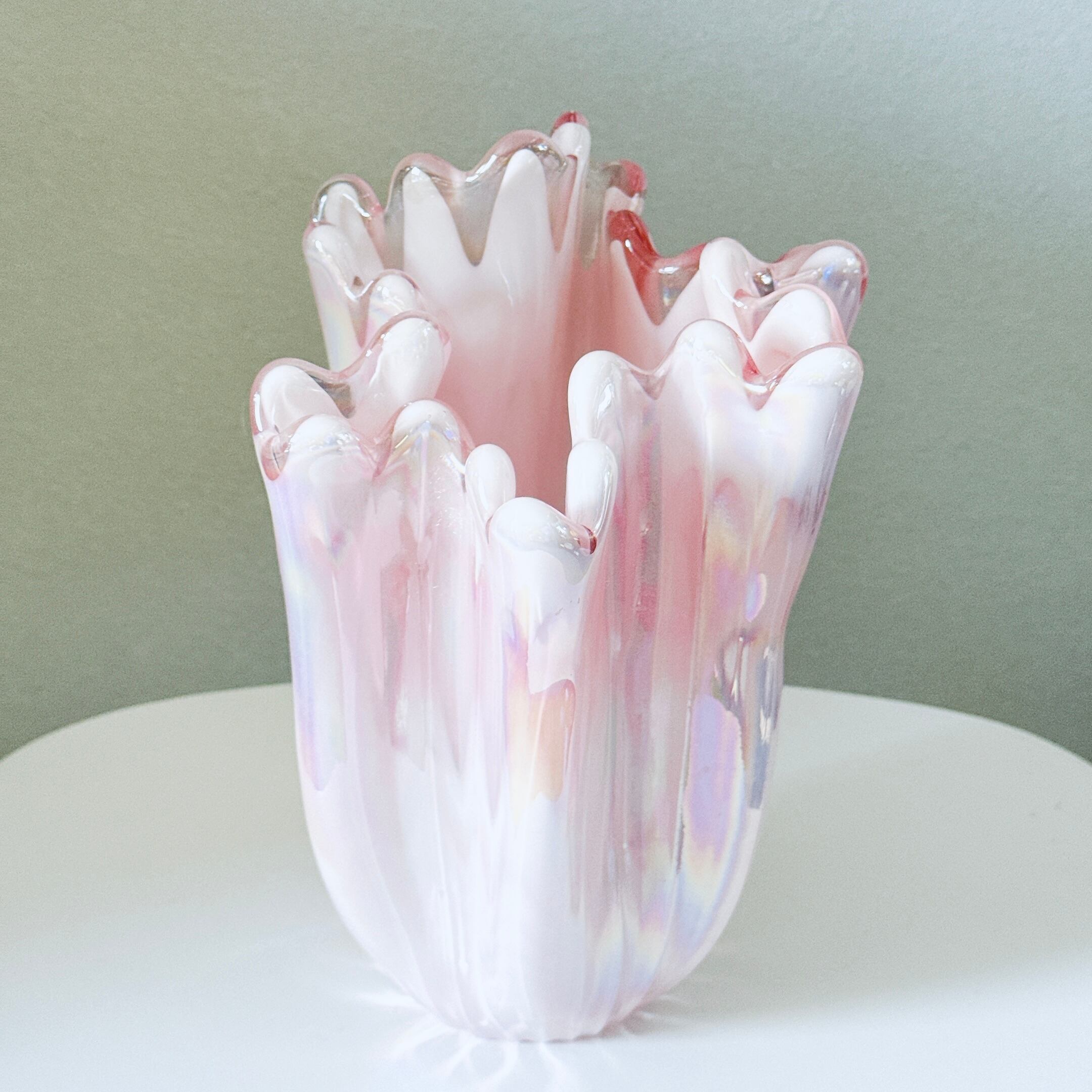 フリルが可愛い、昭和のレトロポップなヴィンテージフラワーベースです。1点ものになります。