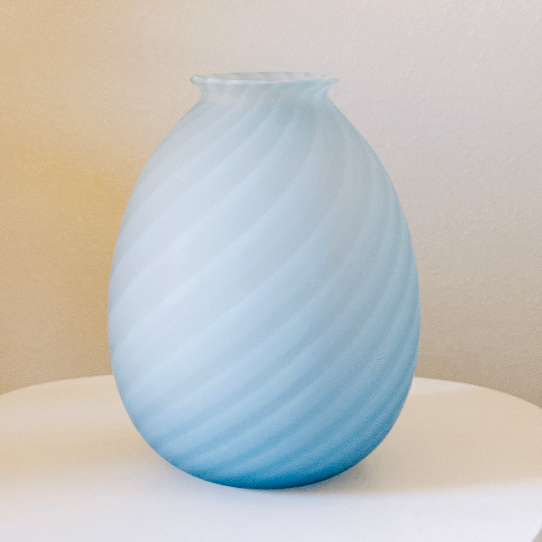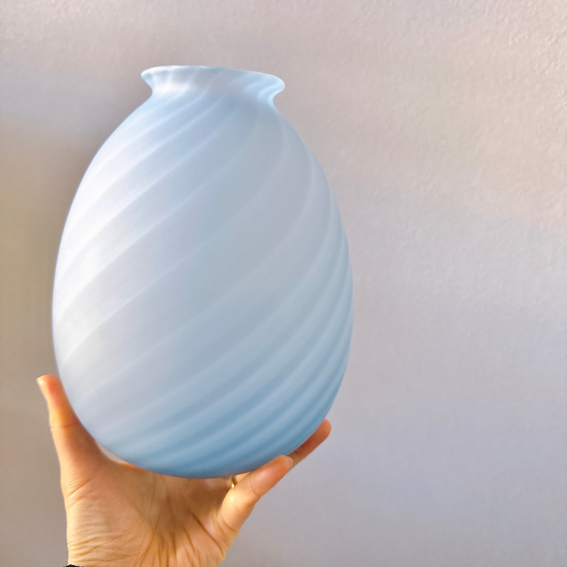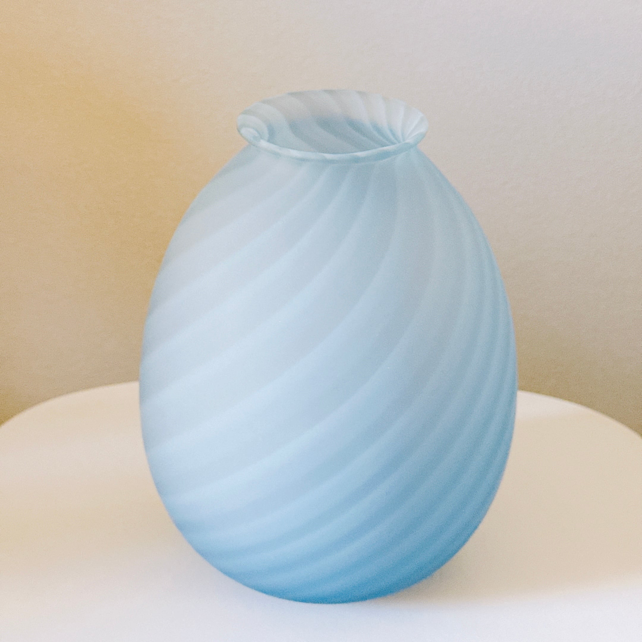 ころんとした丸い形が可愛い、すりガラスのヴィンテージフラワーベースです。1点ものになります。