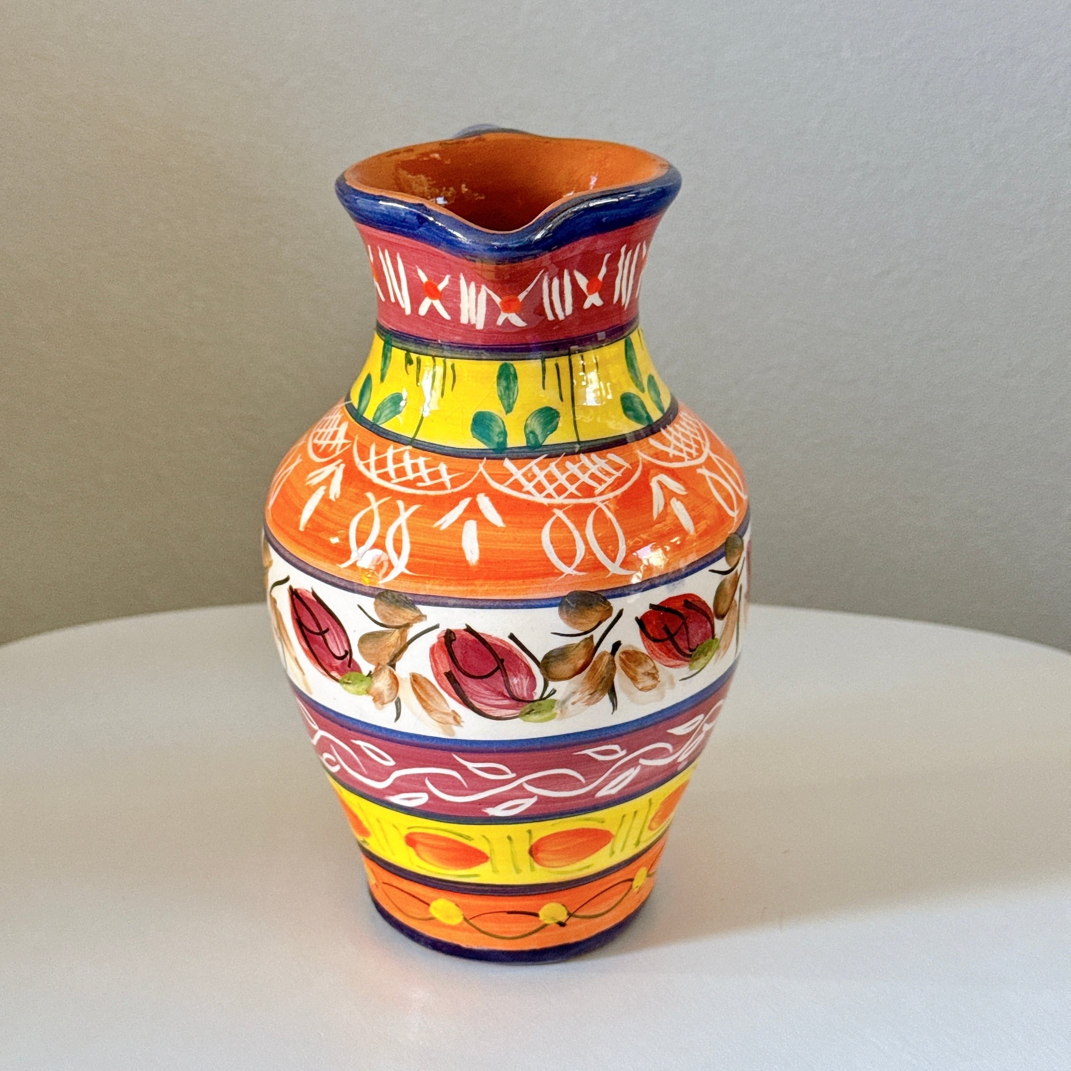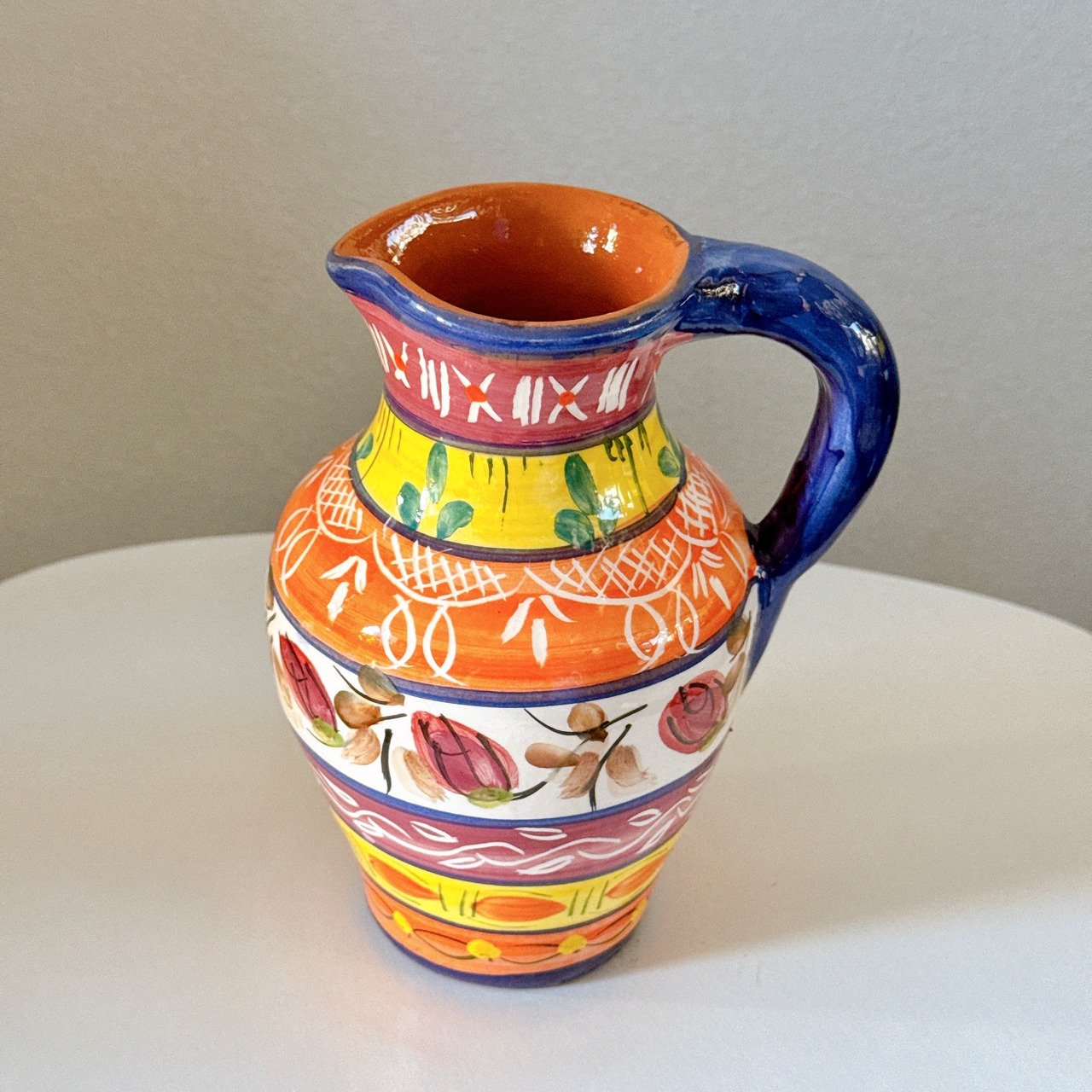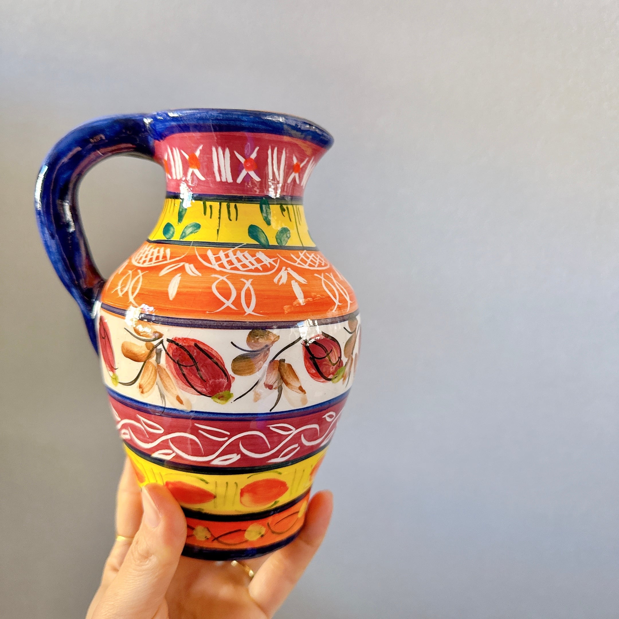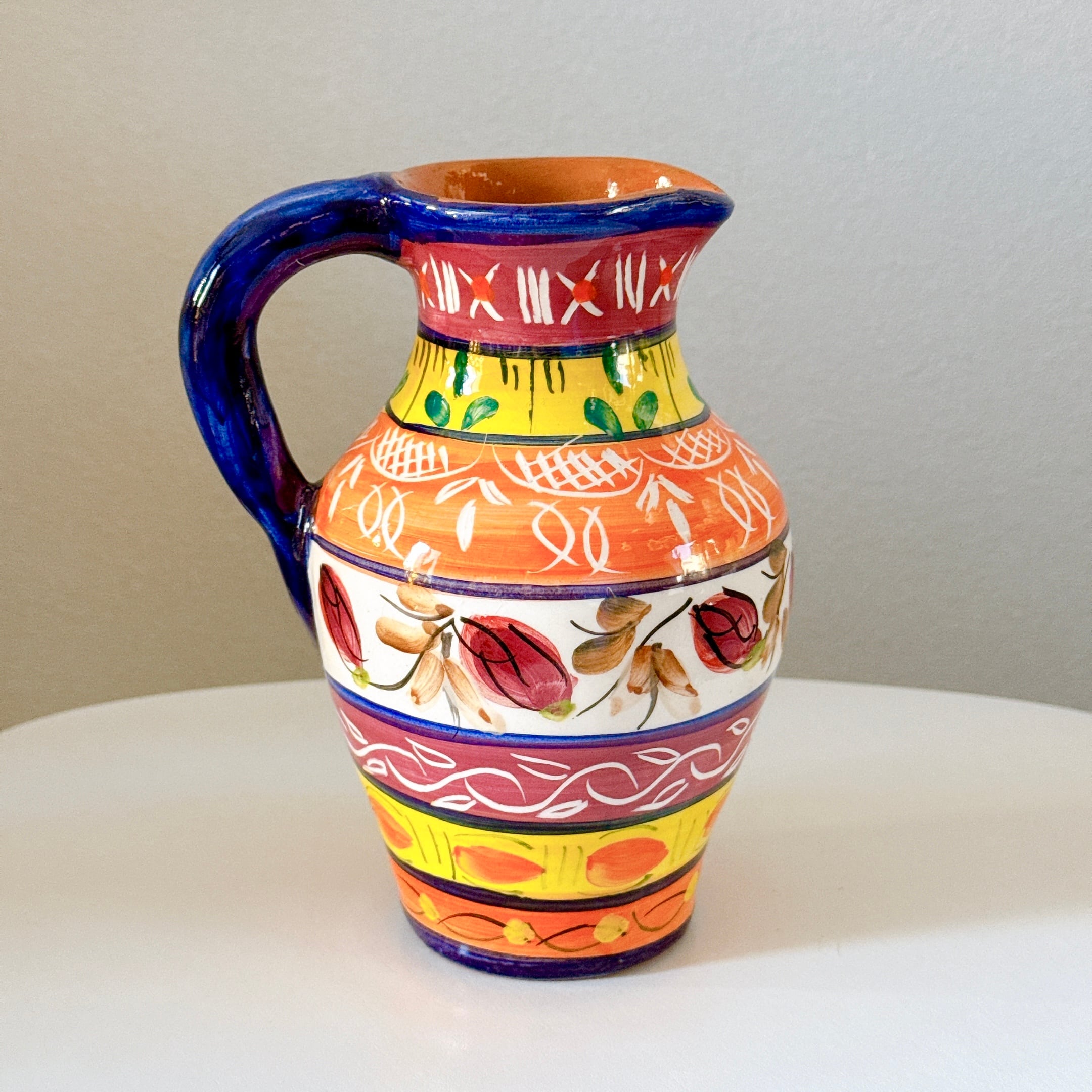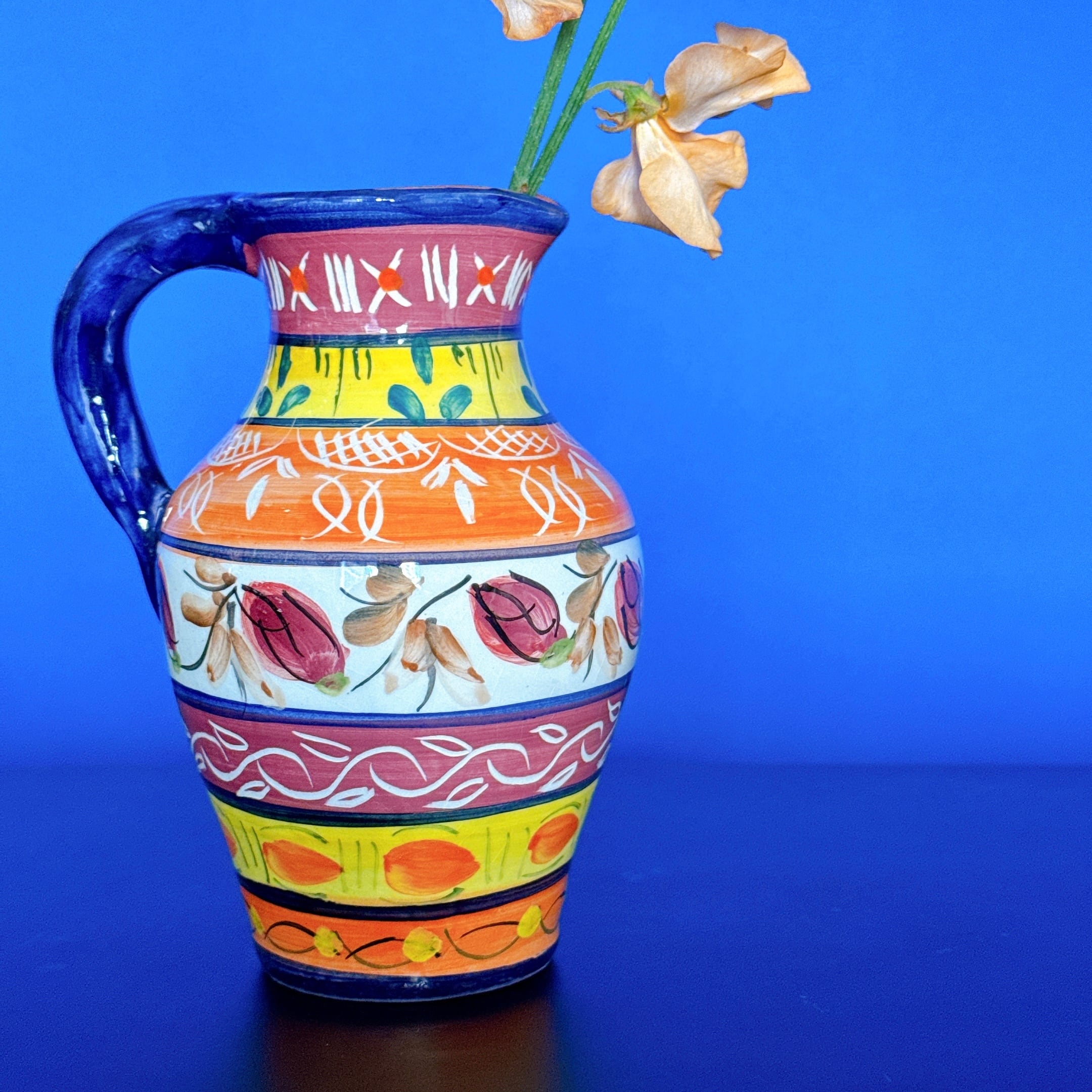 派手な絵付けが可愛い、ポルトガルの陶器製ピッチャーです。1点ものになります。
