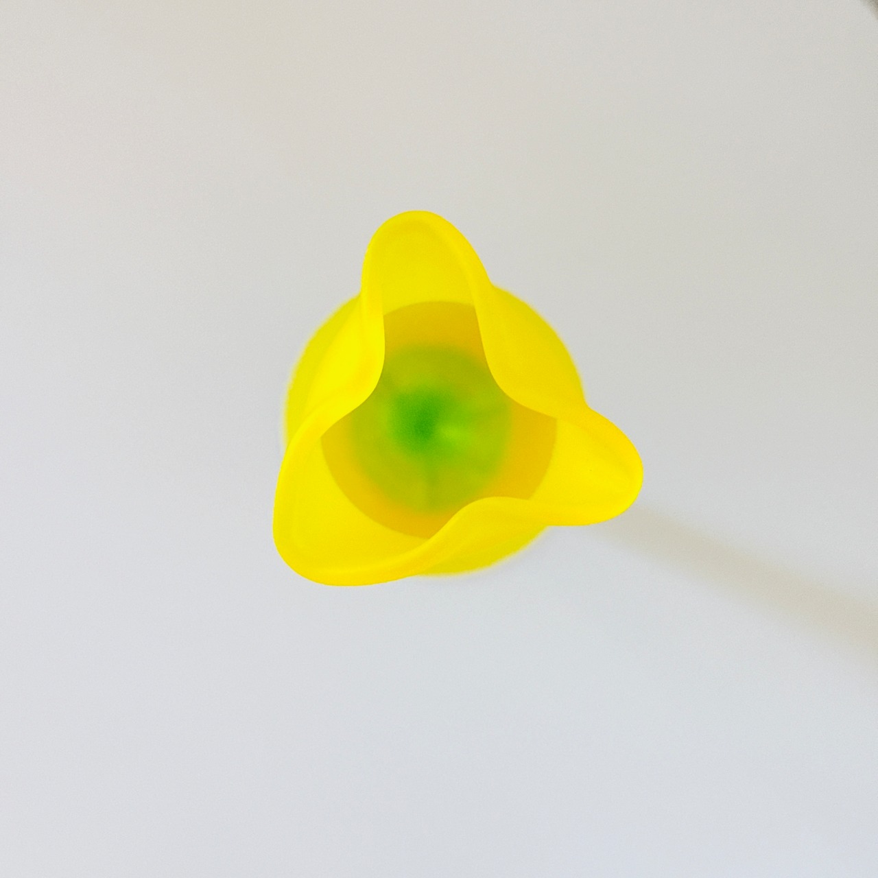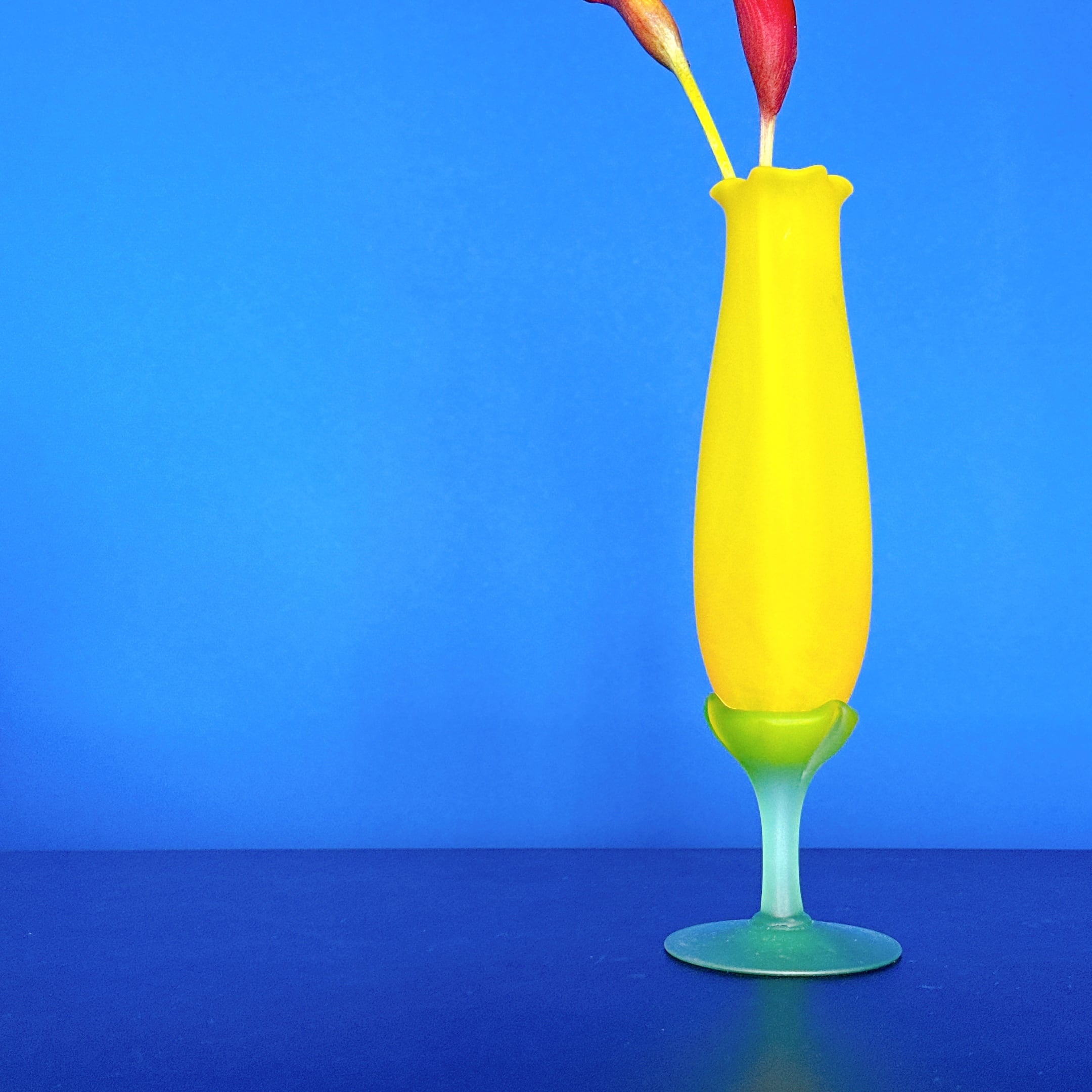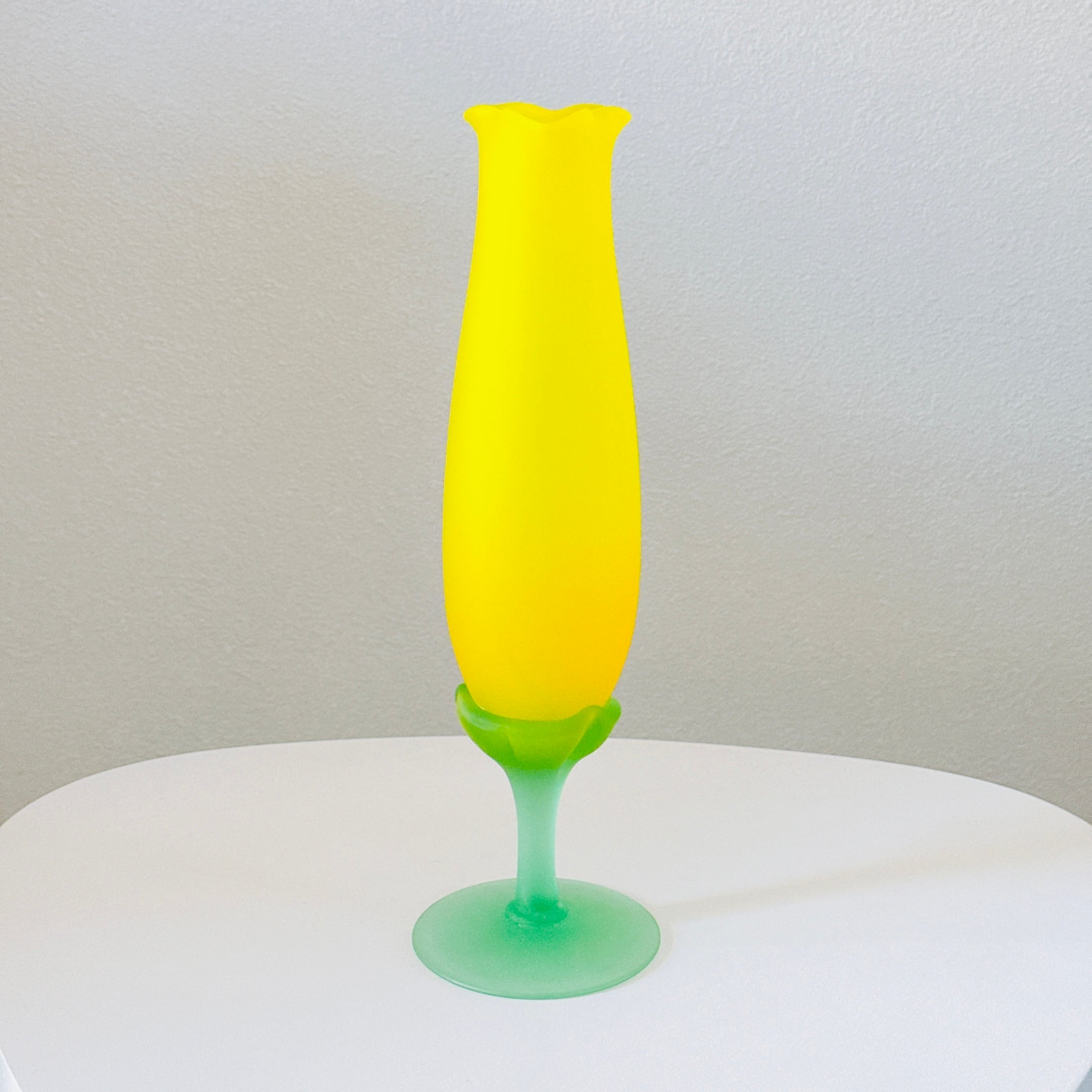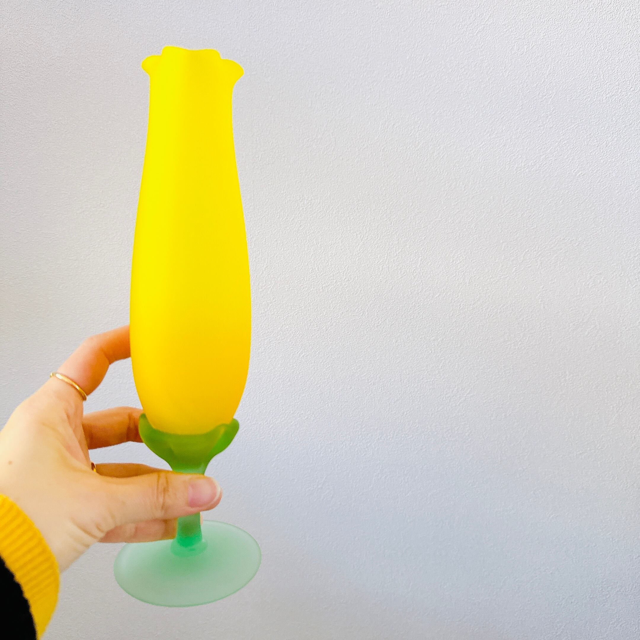 お花のような形が可愛い、すりガラス製のヴィンテージフラワーベースです。1点ものになります。