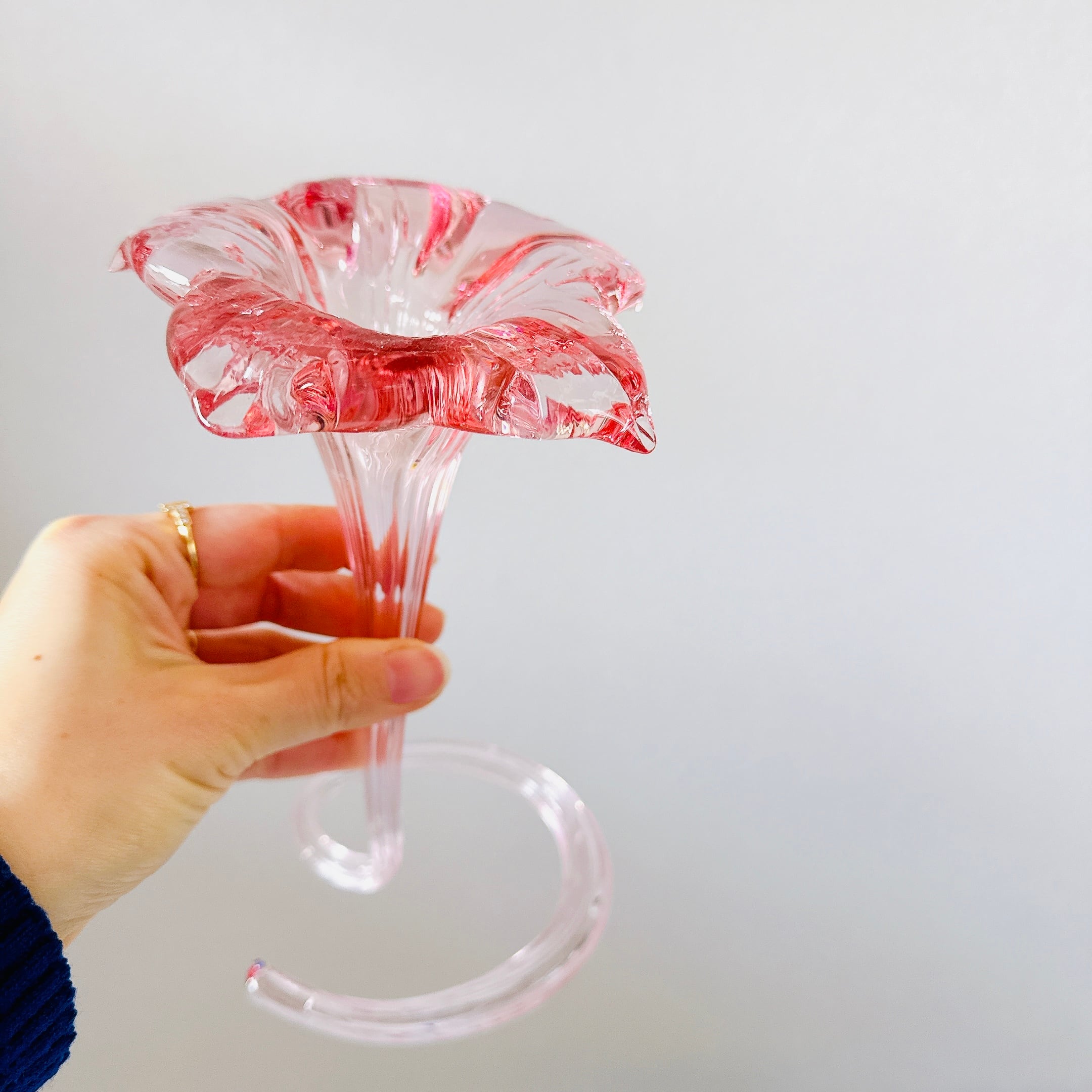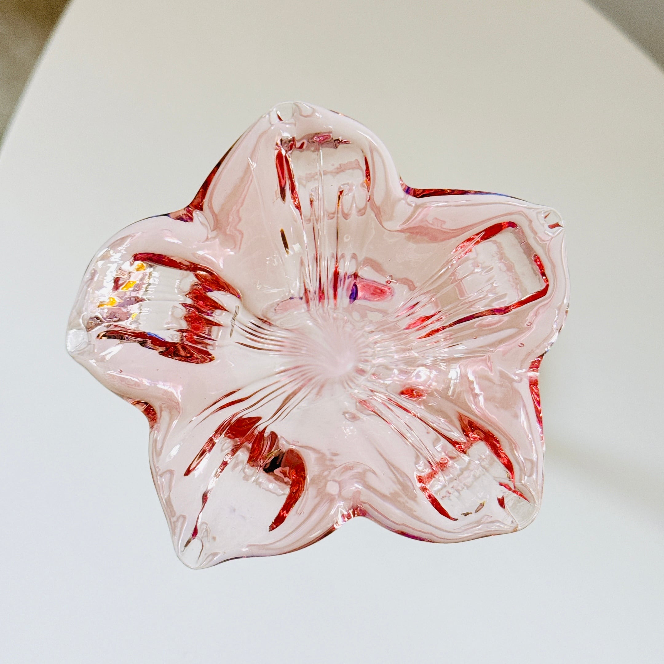美しいお花の形のガラス製ヴィンテージフラワーベースです。1点ものになります。
