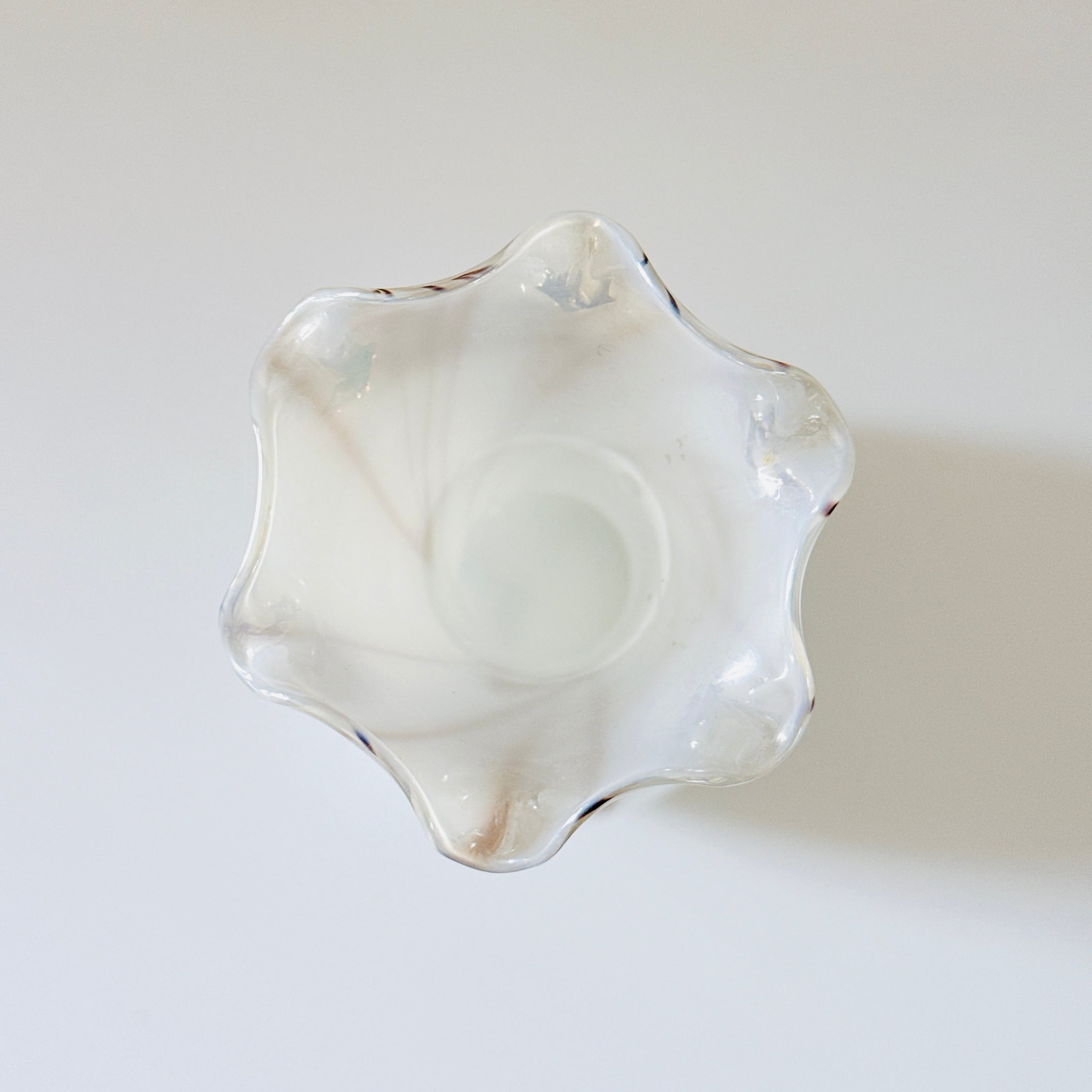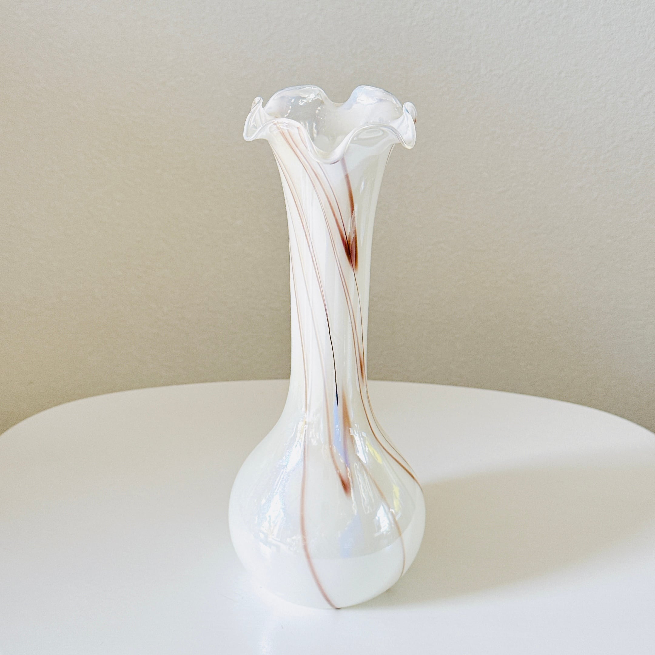 茶色のマーブル模様がおしゃれな、ガラス製のヴィンテージフラワーベースです。1点ものになります。