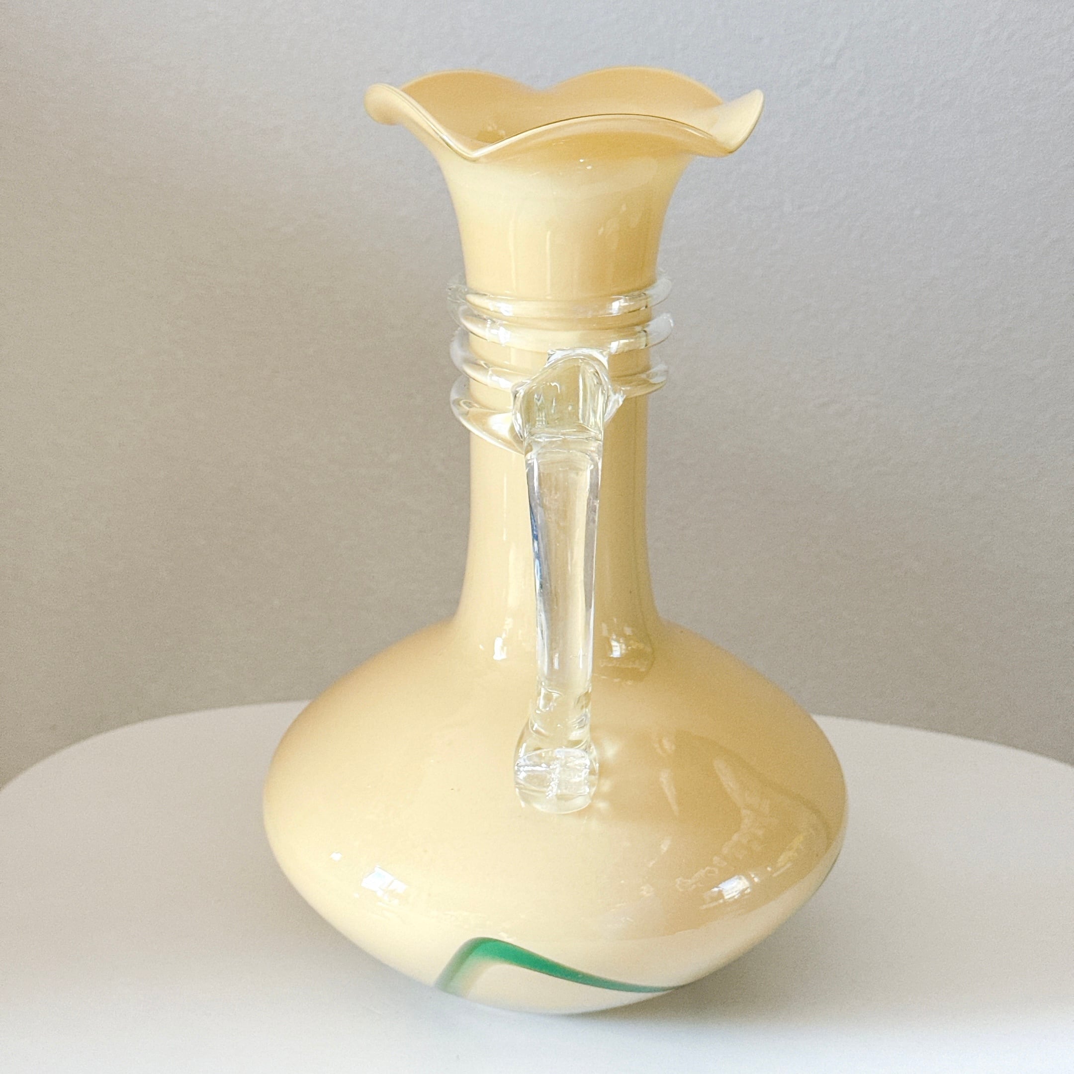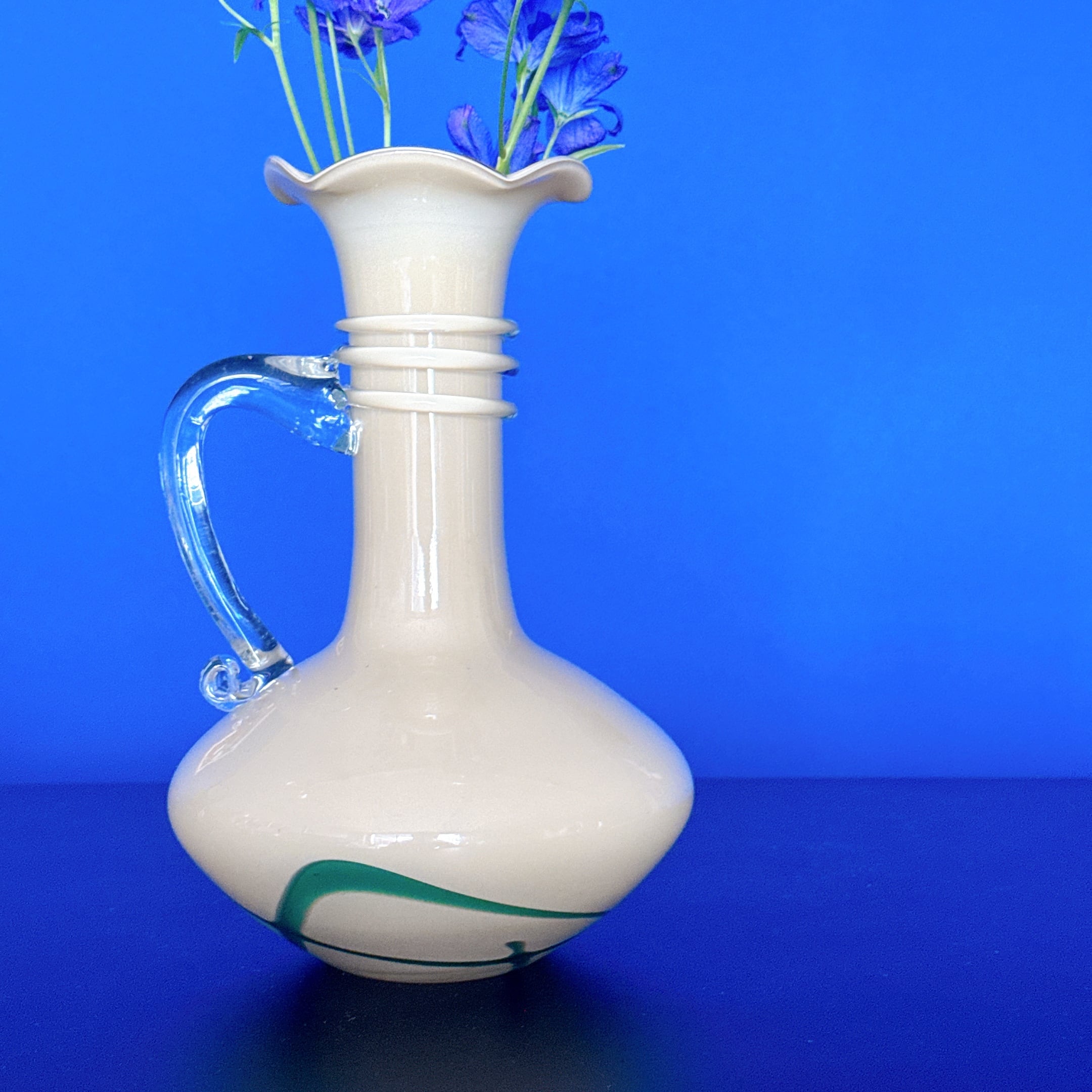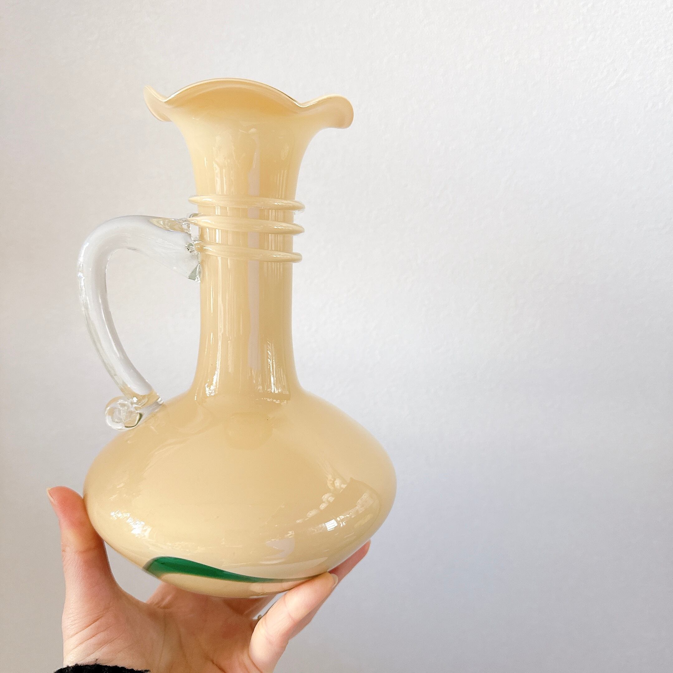 取手が可愛い、昭和レトロなヴィンテージフラワーベースです。1点ものになります。