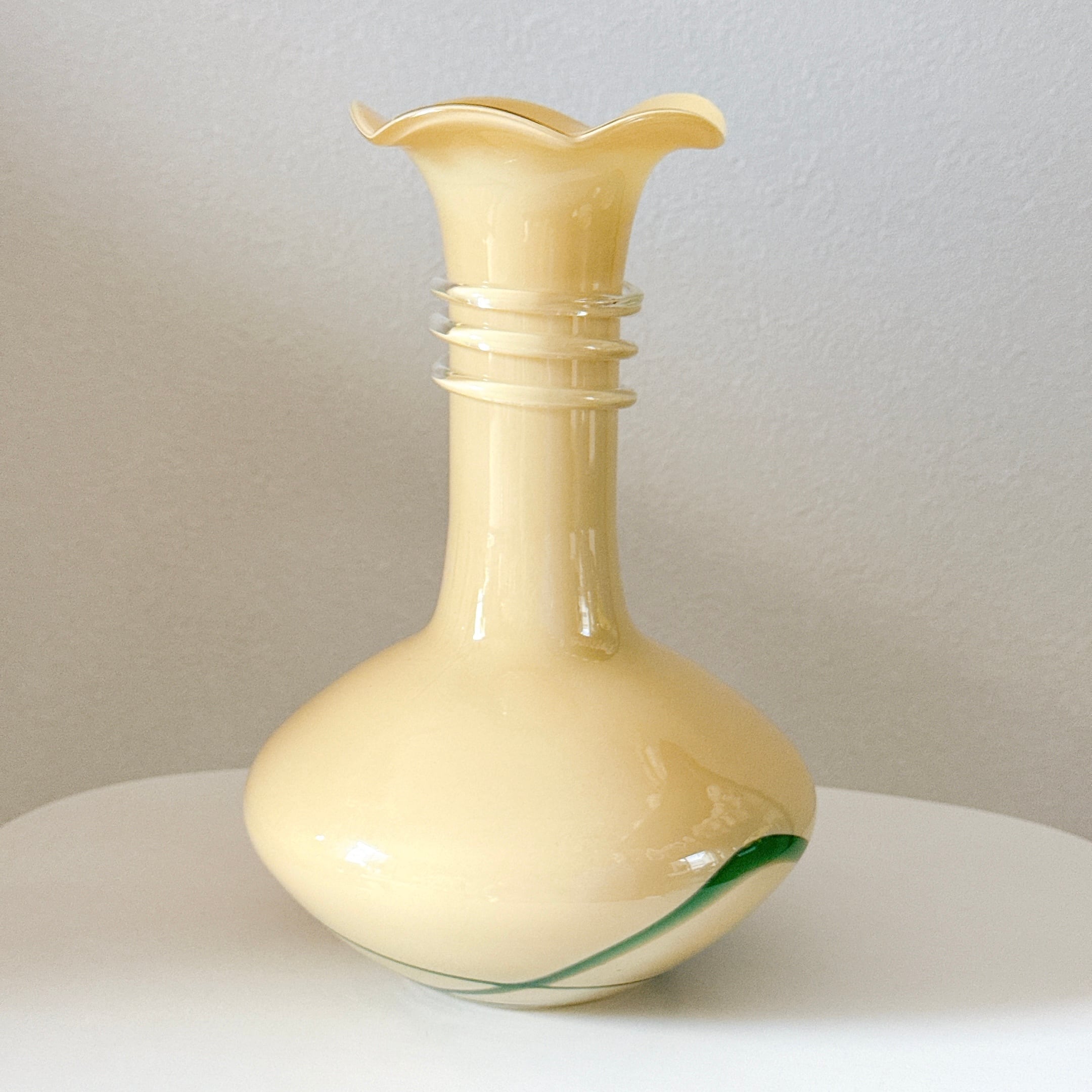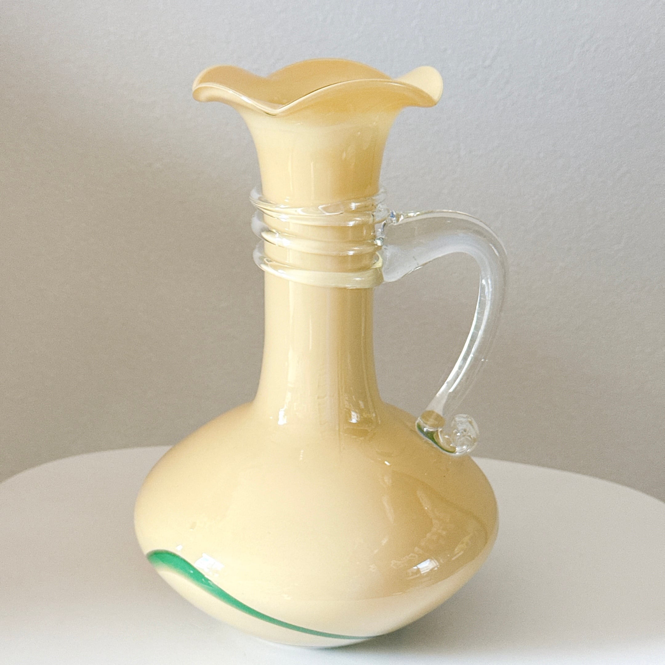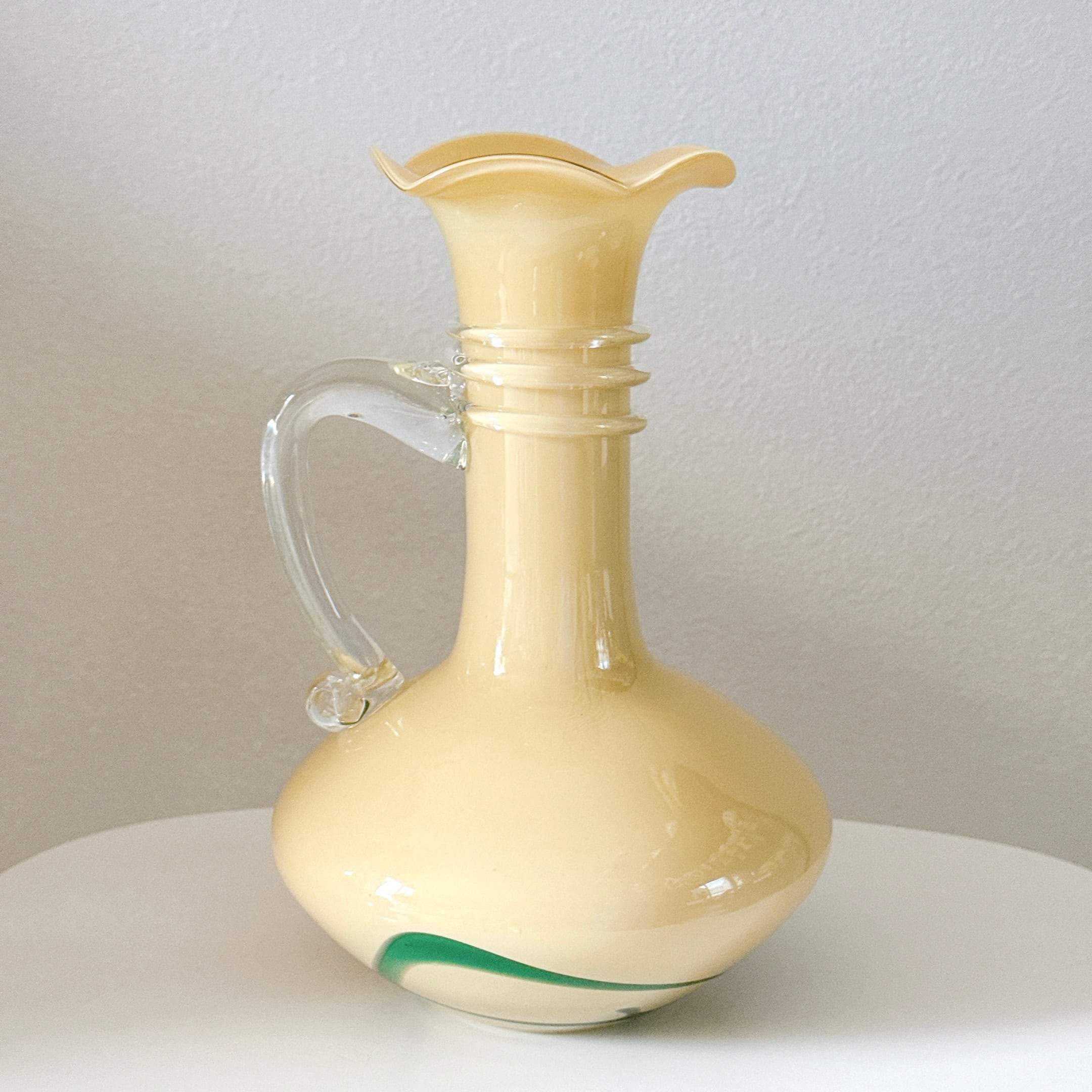 取手が可愛い、昭和レトロなヴィンテージフラワーベースです。1点ものになります。