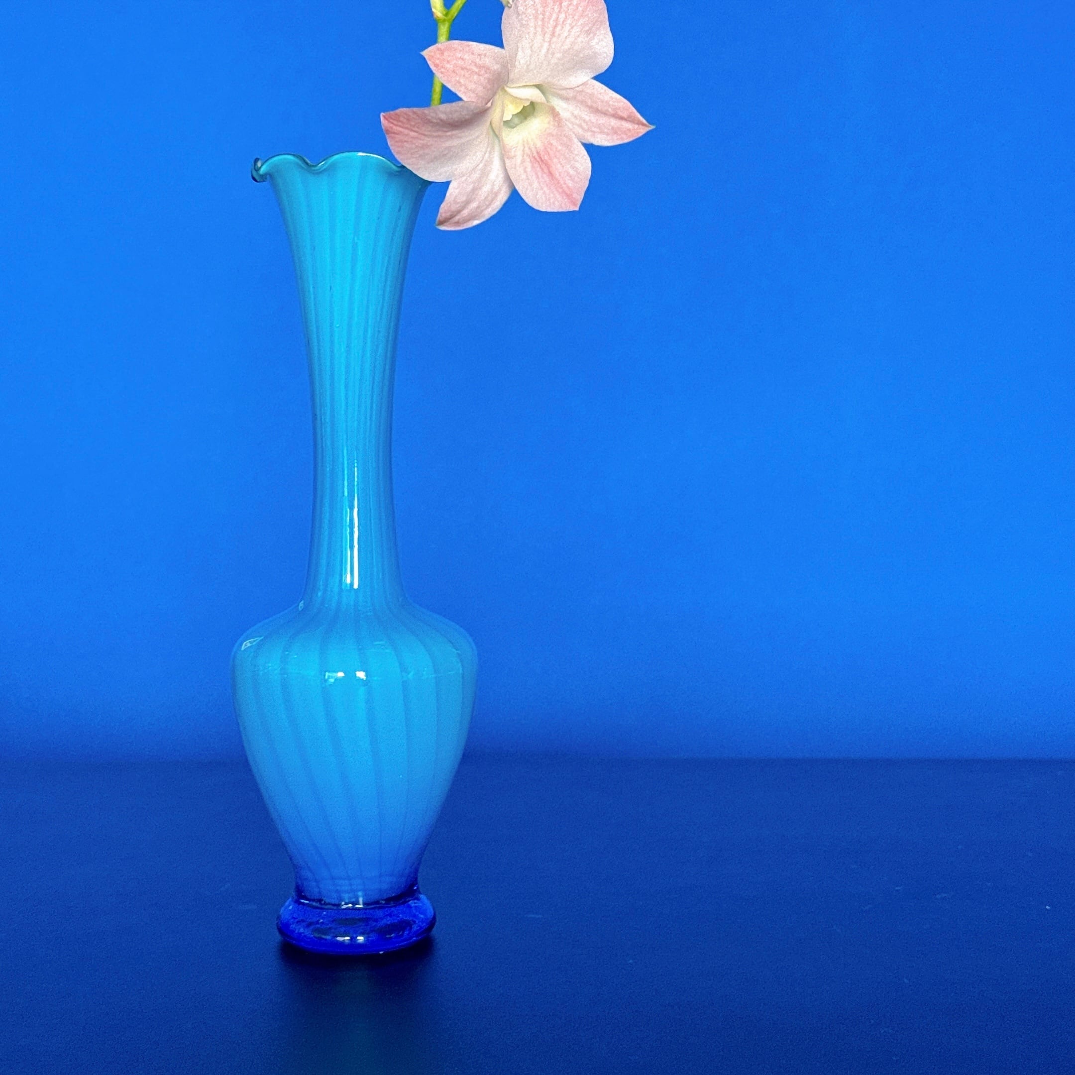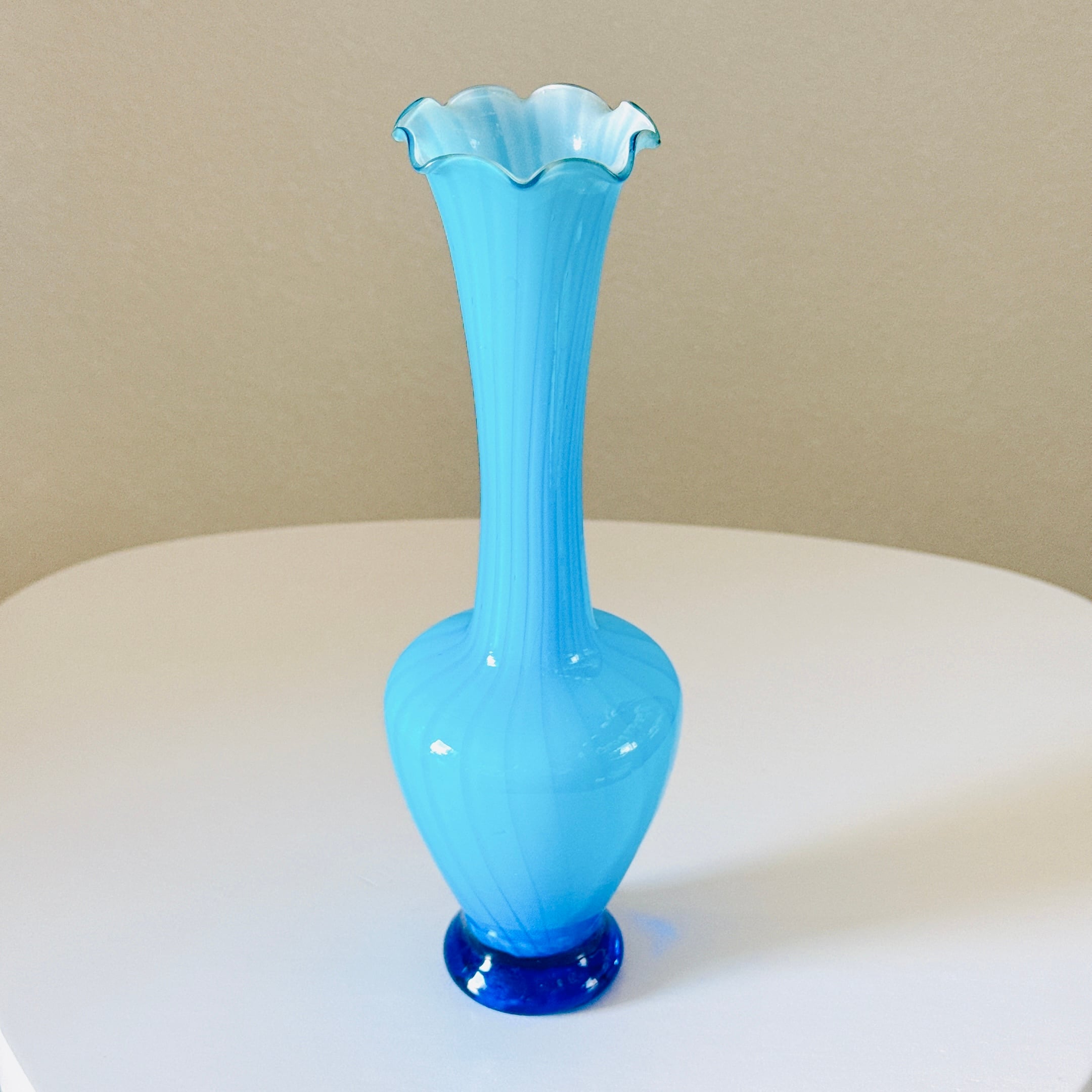 フリルが可愛い、ガラス製のヴィンテージフラワーベースです。1点ものになります。