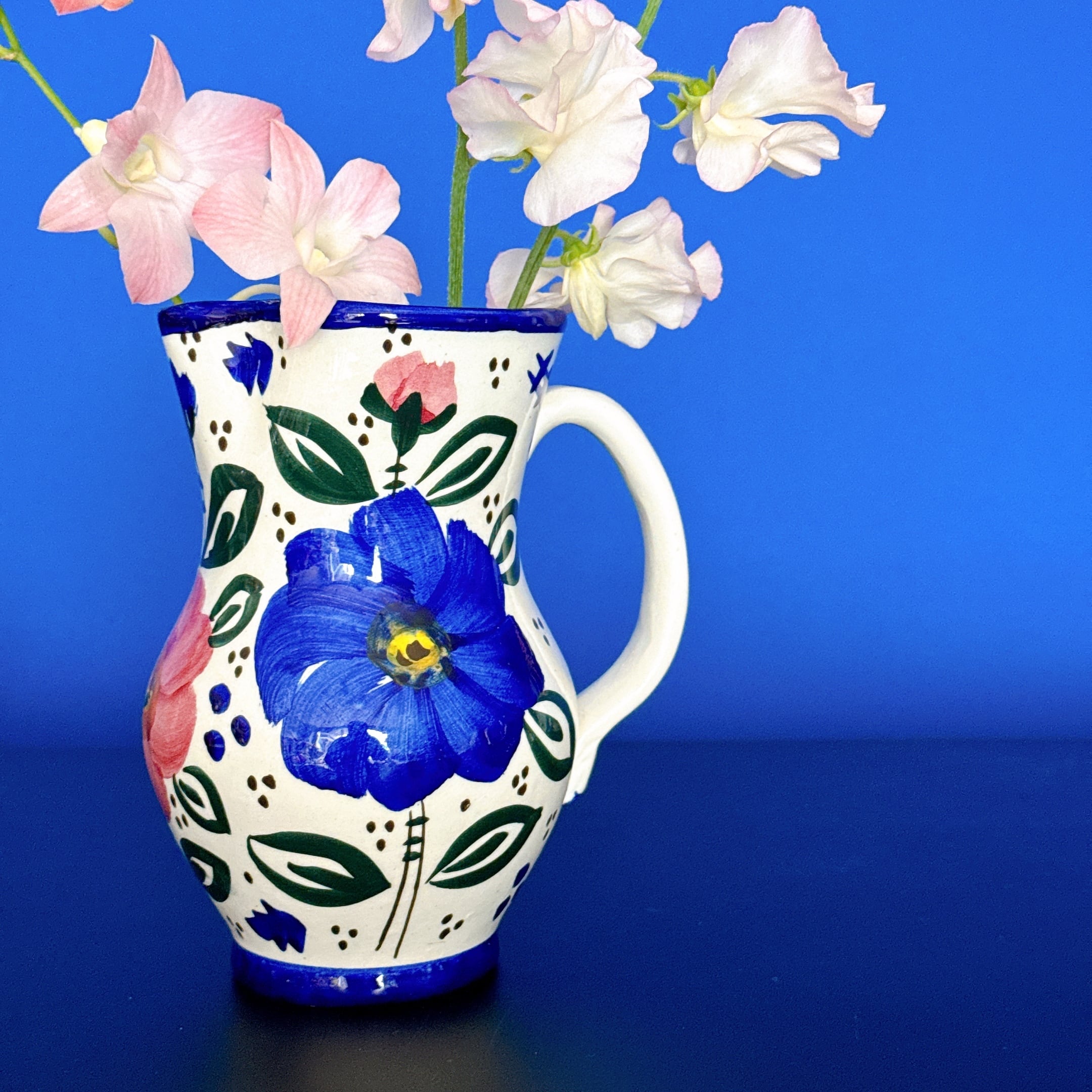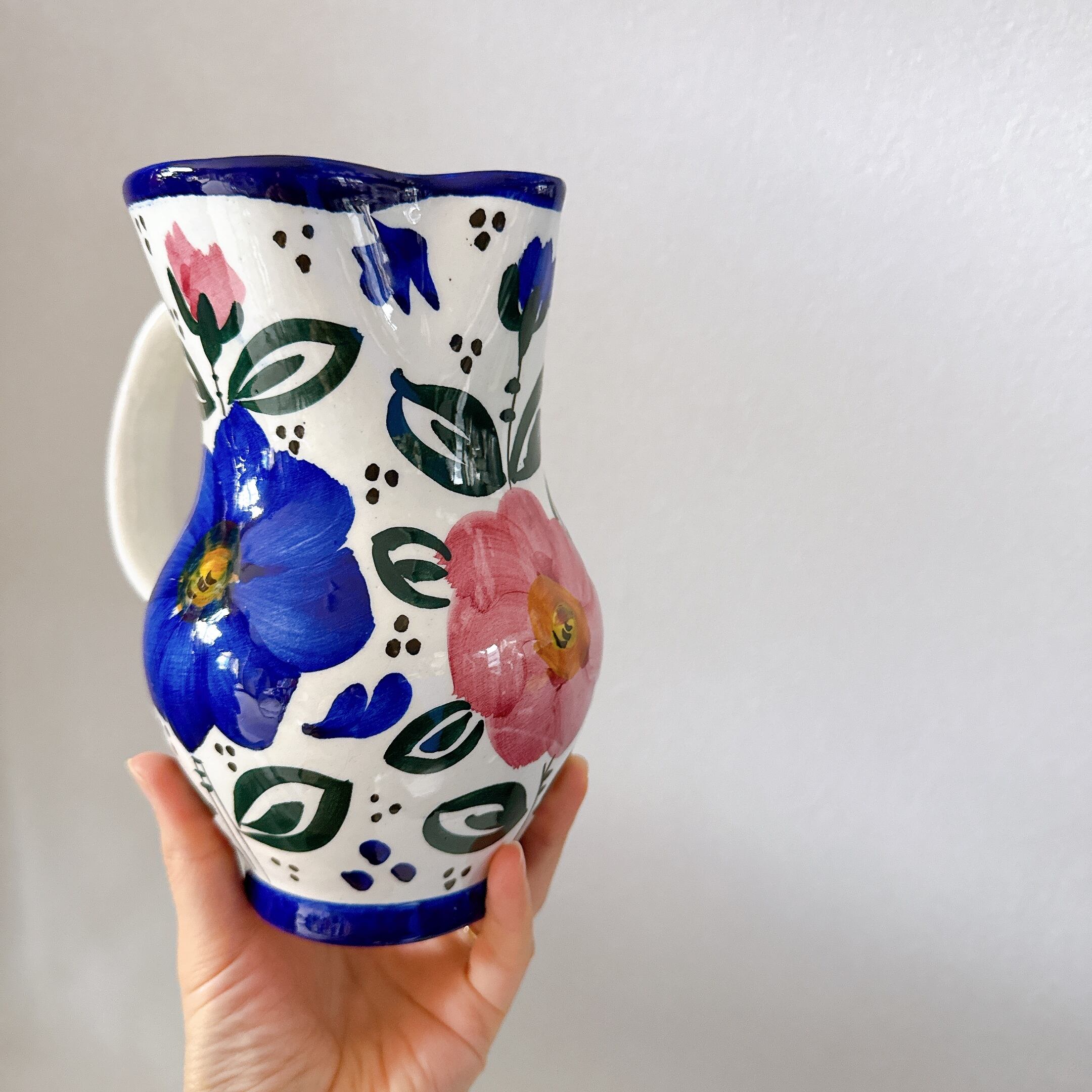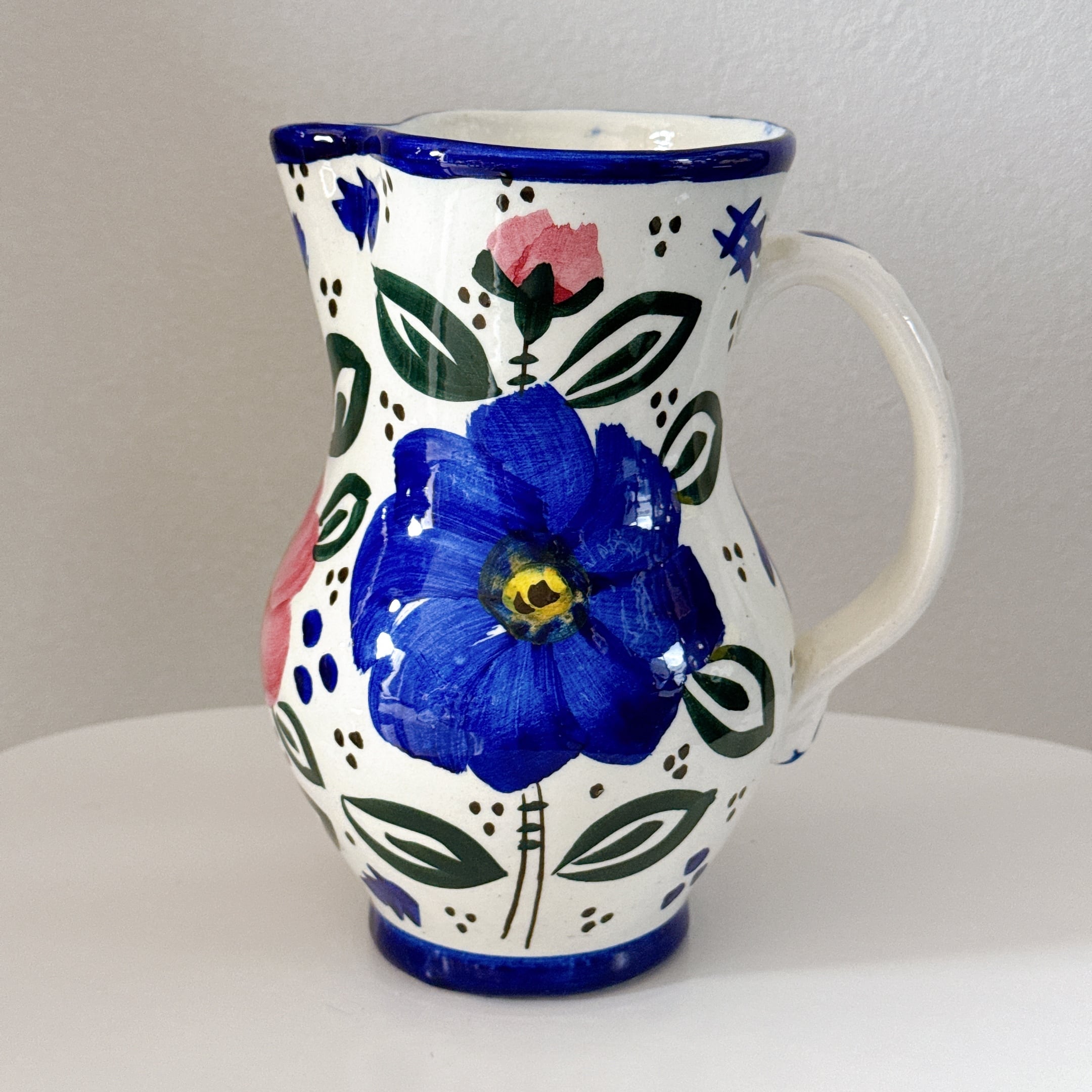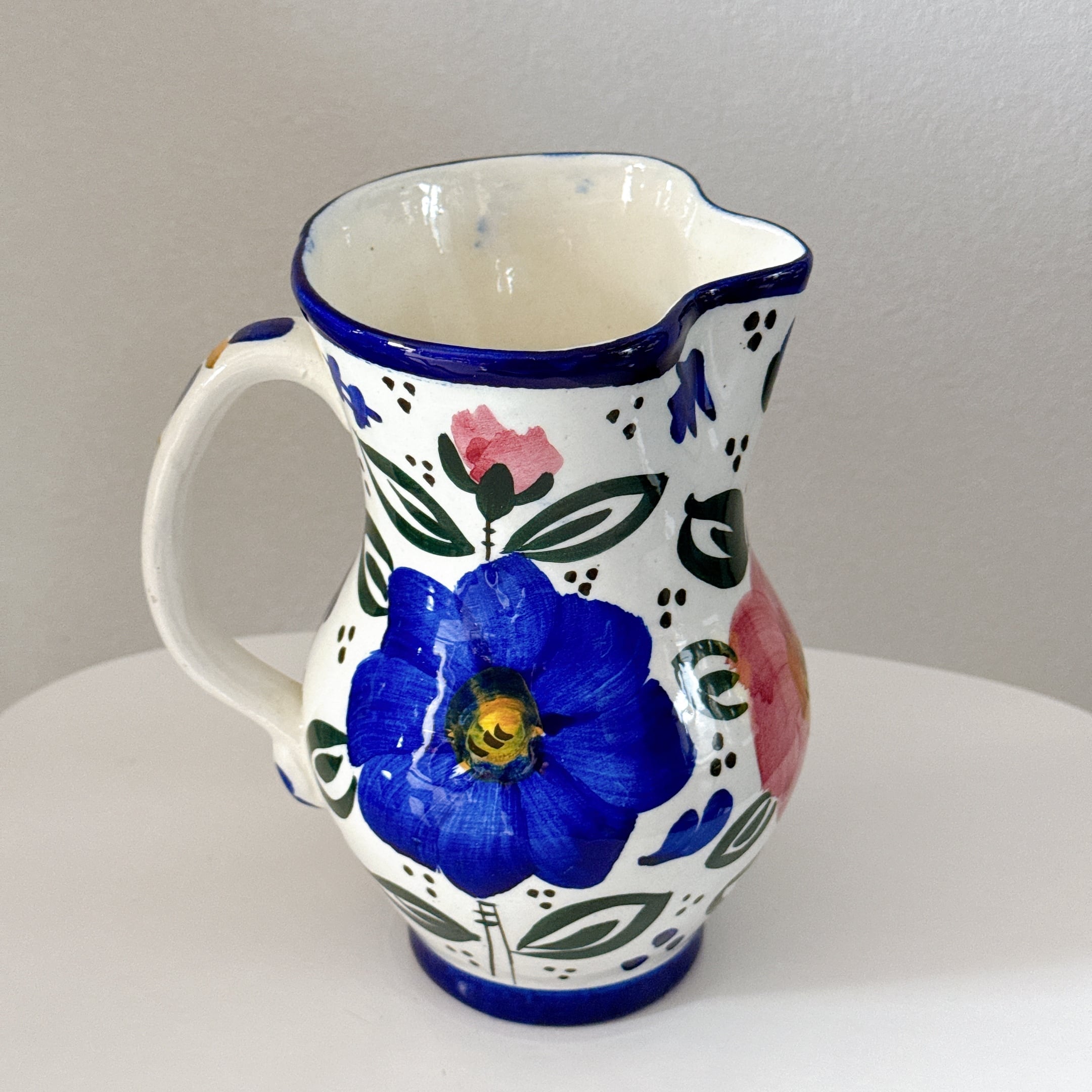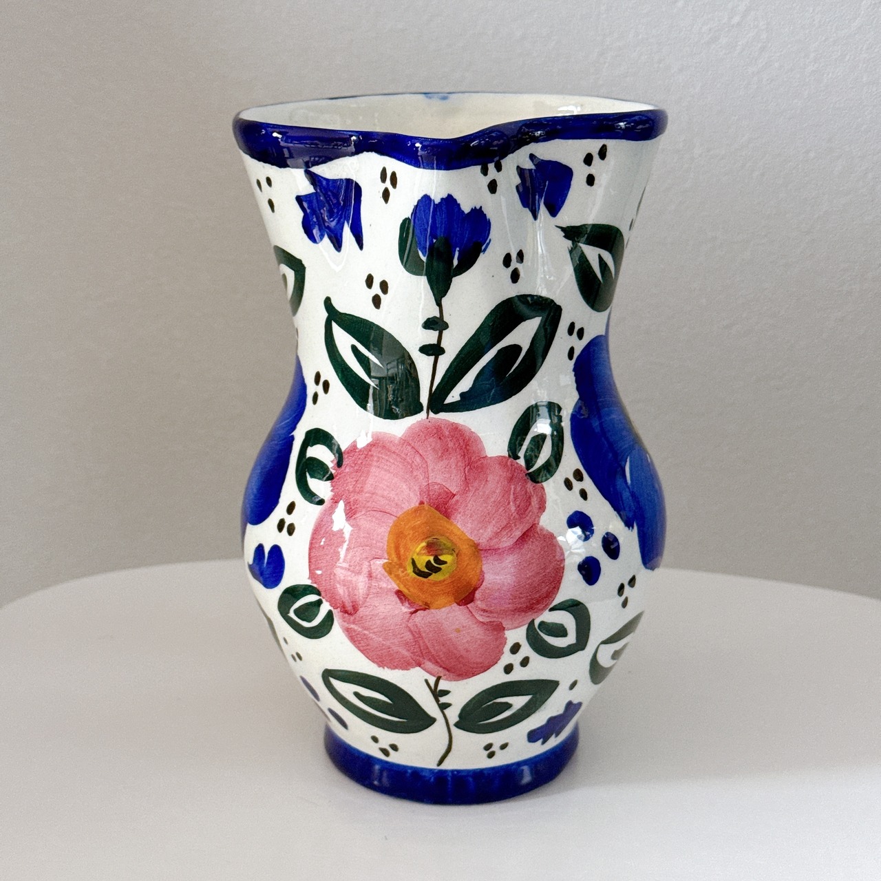 スペインらしい絵付けが可愛い、陶器製のヴィンテージフラワーベースです。1点ものになります。