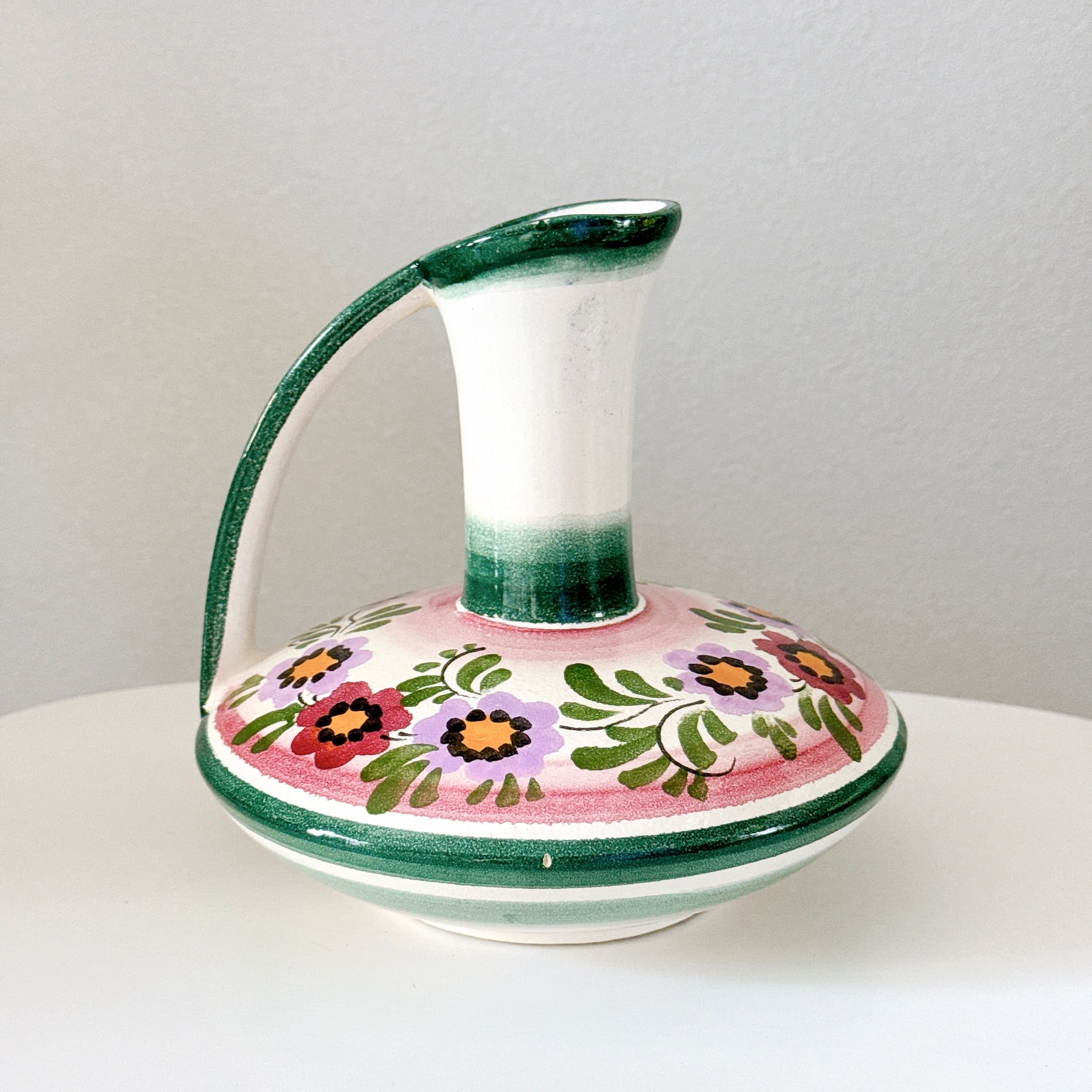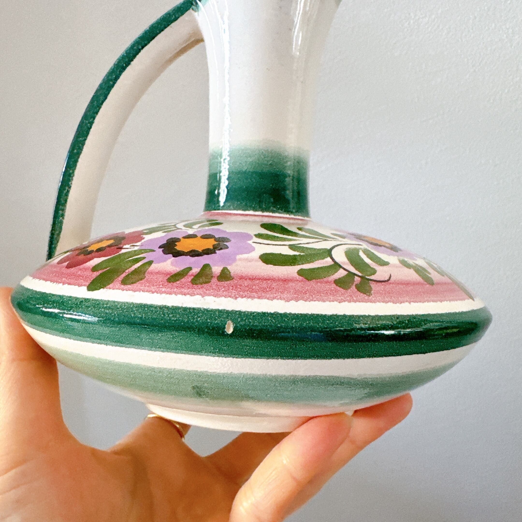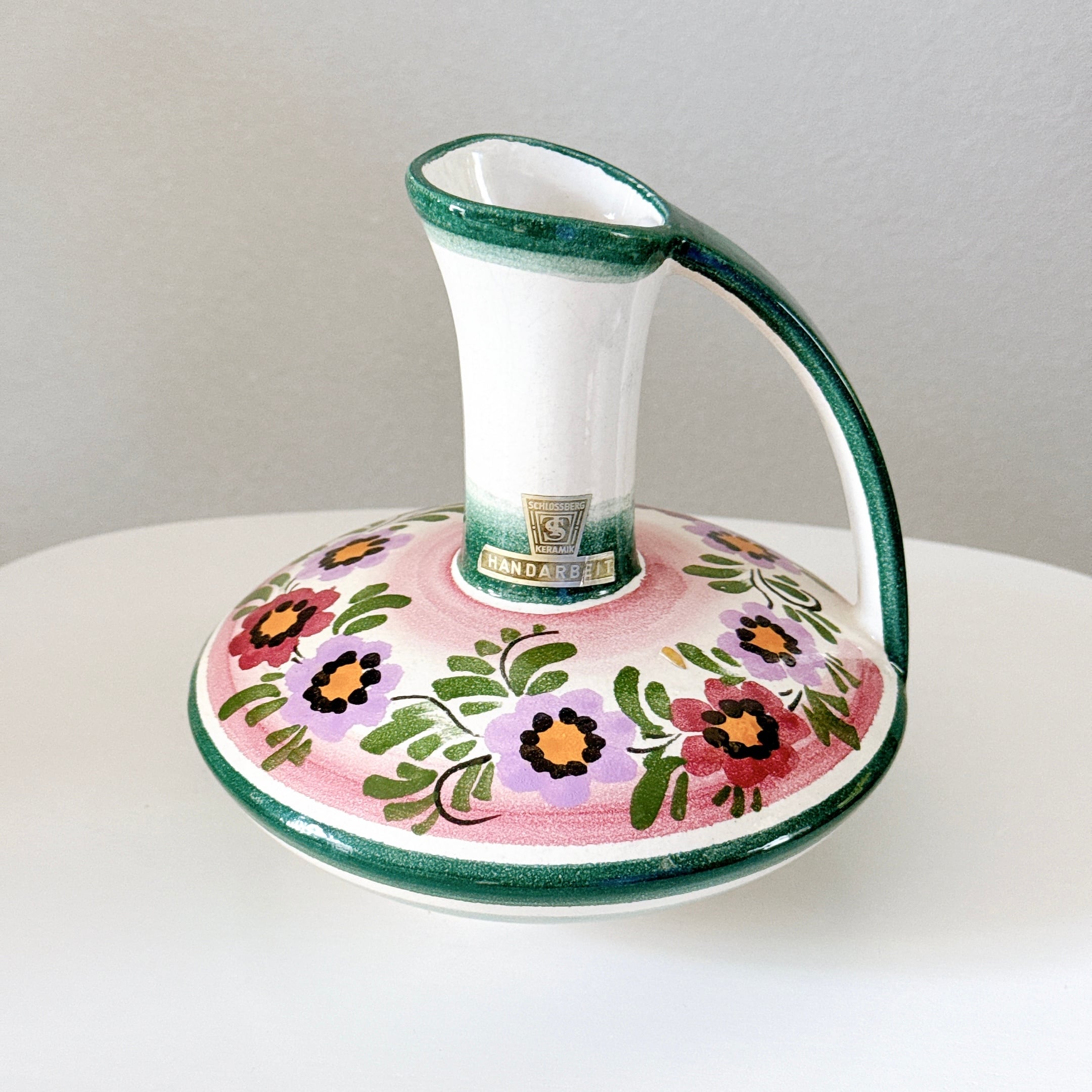 持ち手のデザインが可愛い、ドイツの陶器製ヴィンテージフラワーベースです。1点ものになります。