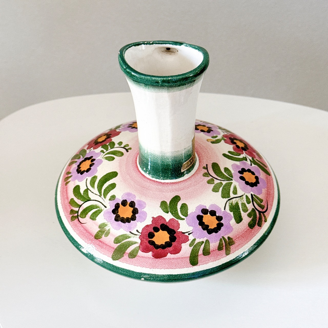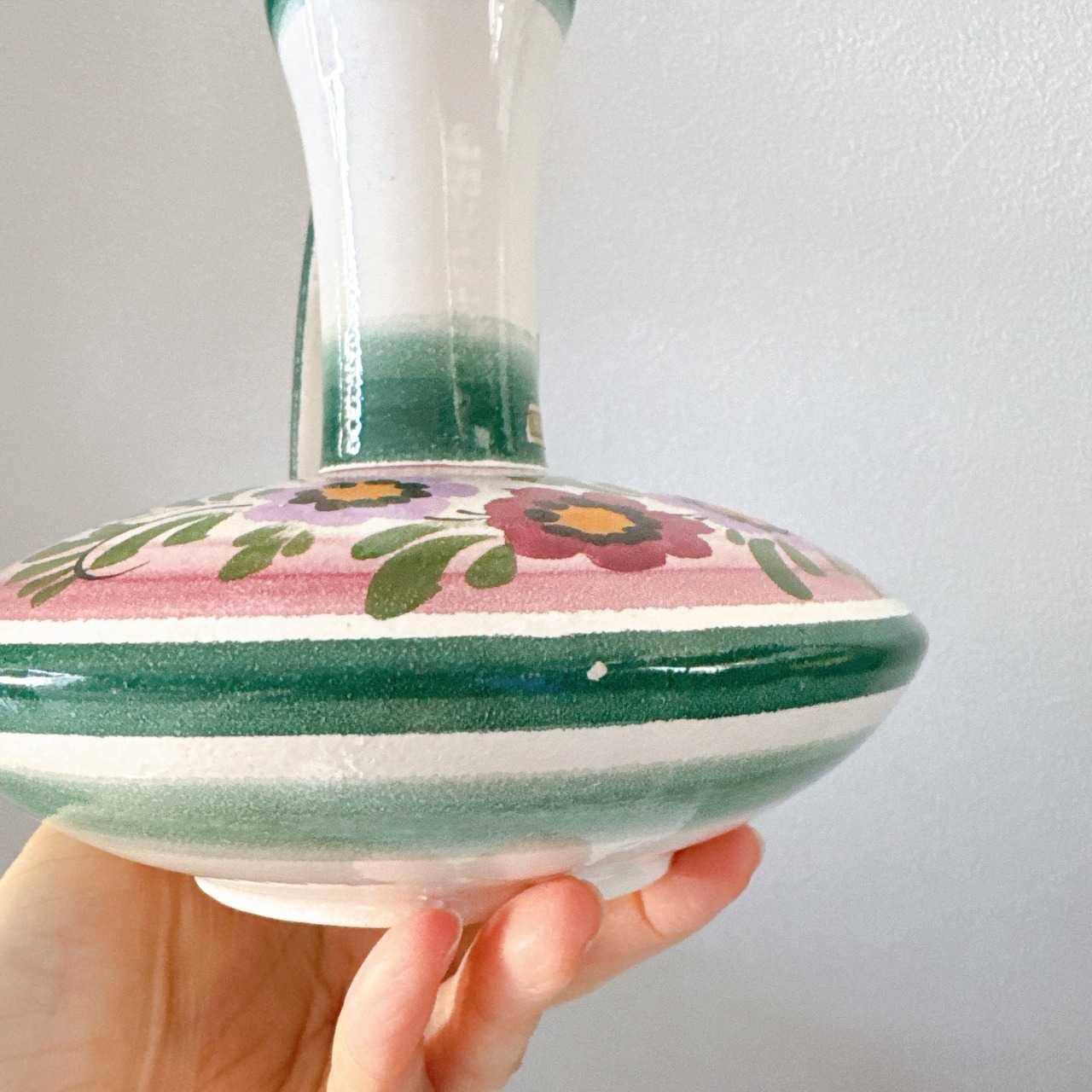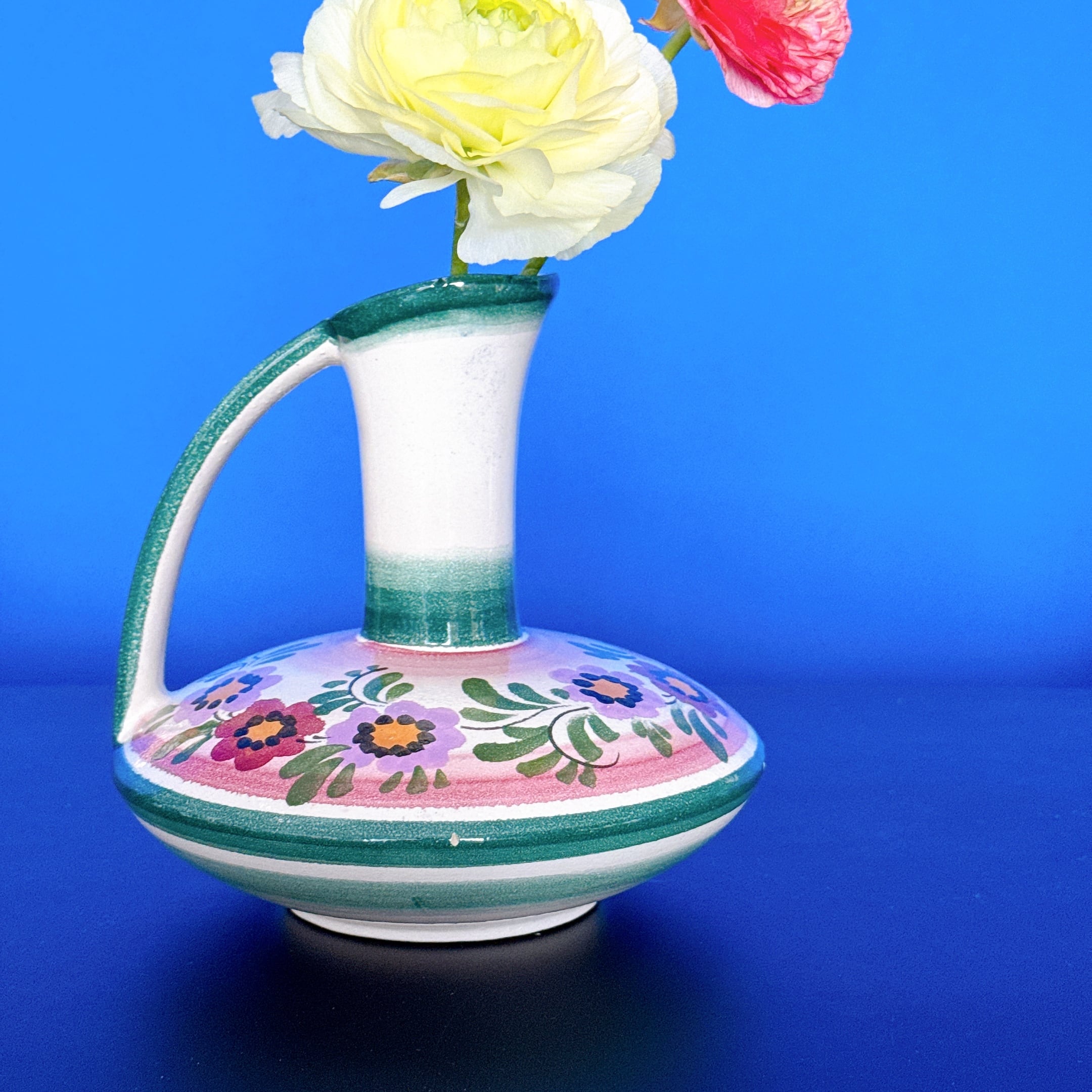 持ち手のデザインが可愛い、ドイツの陶器製ヴィンテージフラワーベースです。1点ものになります。