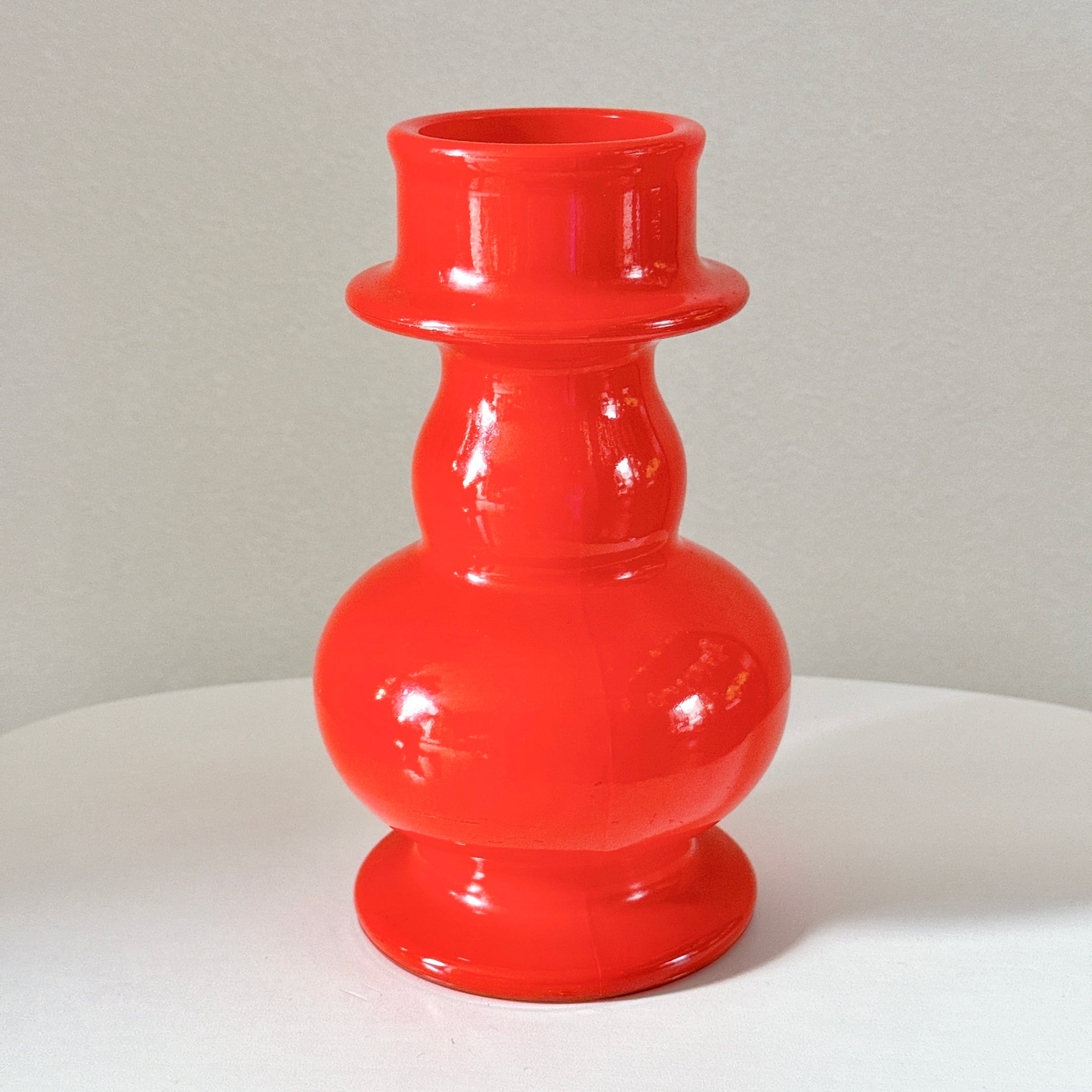 面白い形と鮮やかな赤が可愛い、ガラス製のヴィンテージフラワーベースです。1点ものになります。