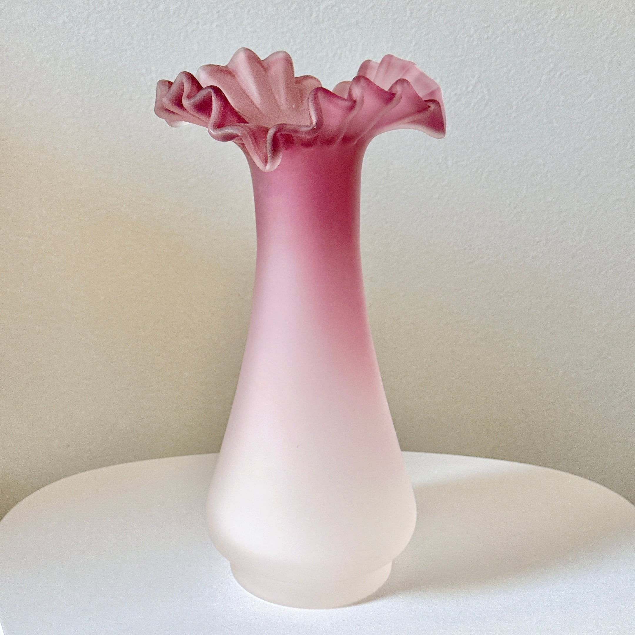 フリルとすりガラスが可愛い、昭和レトロなヴィンテージフラワーベースです。1点ものになります。