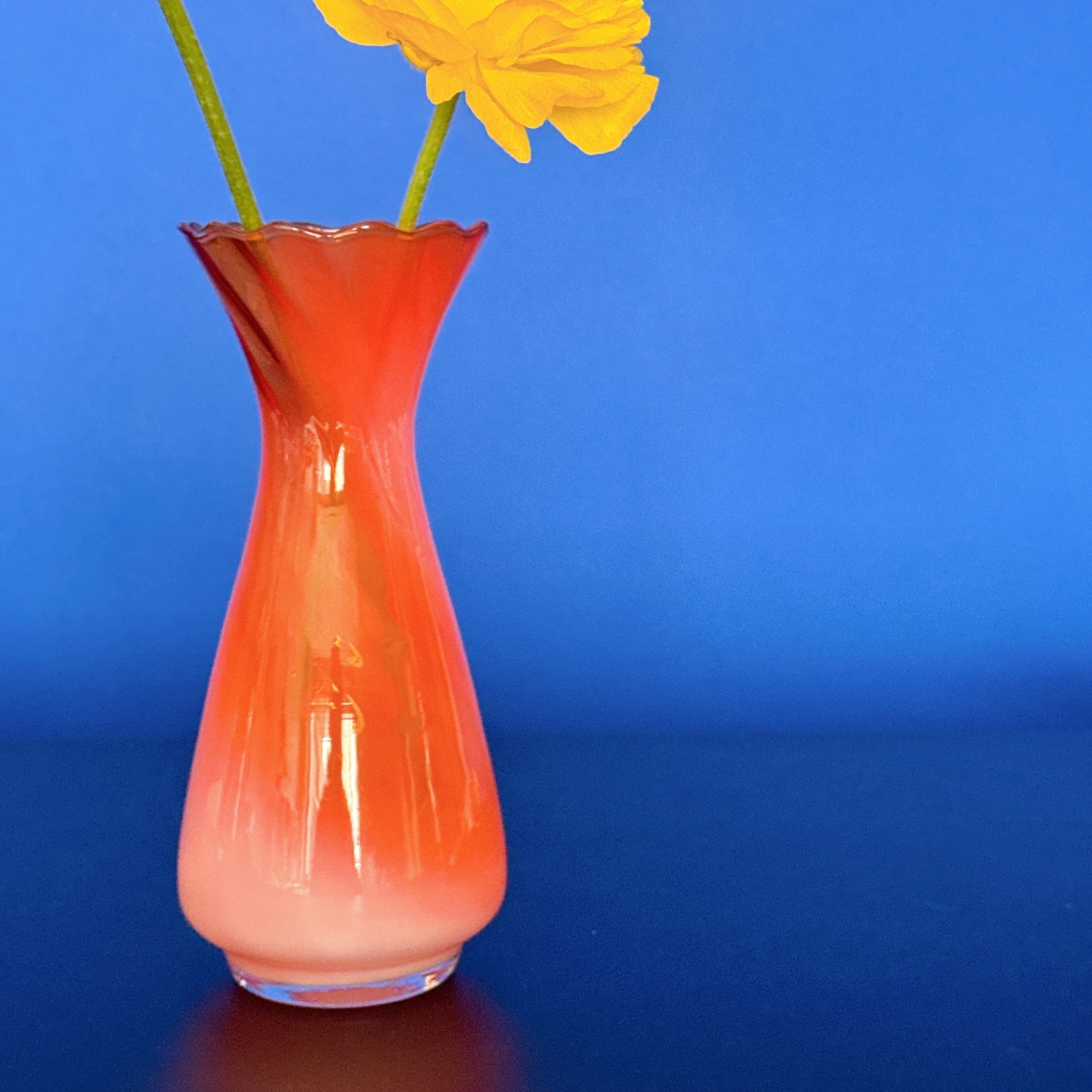 乳白色のグラデーションが可愛い、昭和レトロなヴィンテージフラワーベースです。1点ものになります。