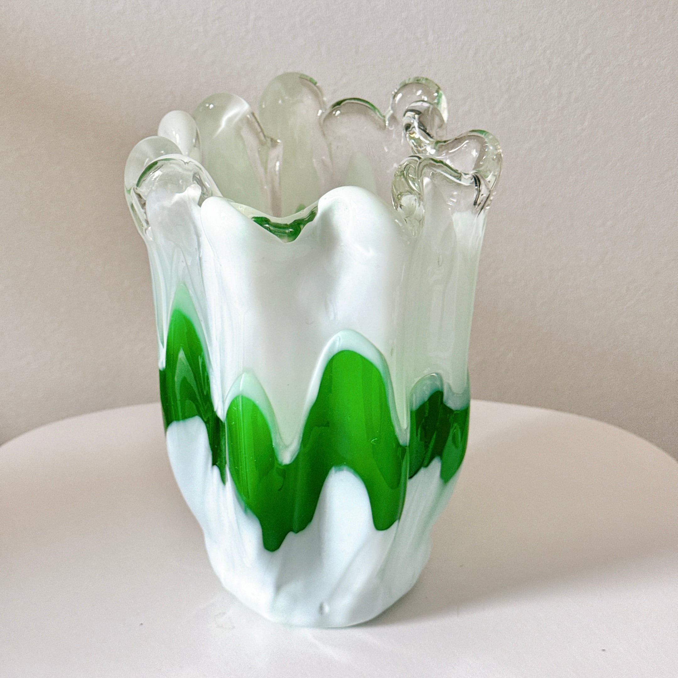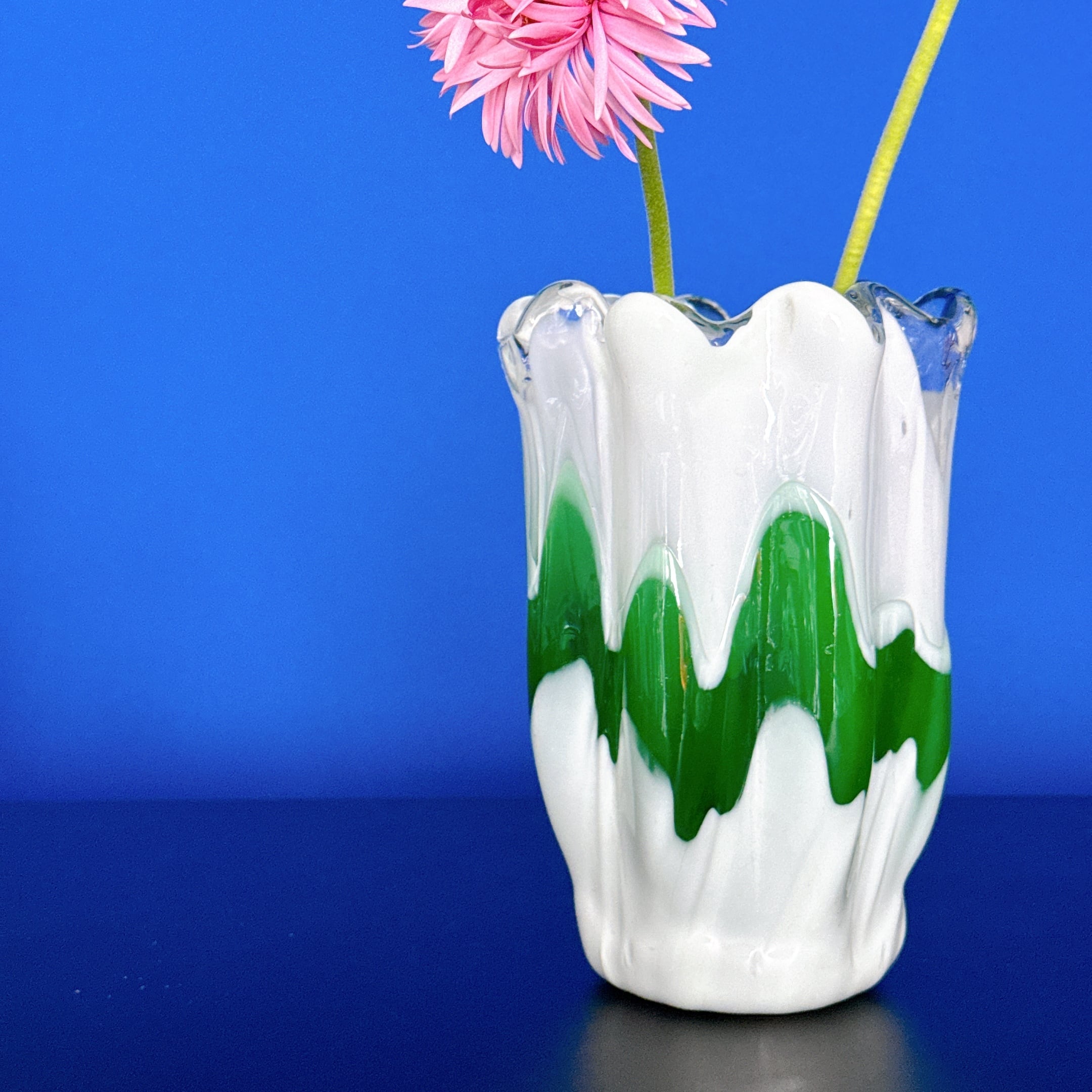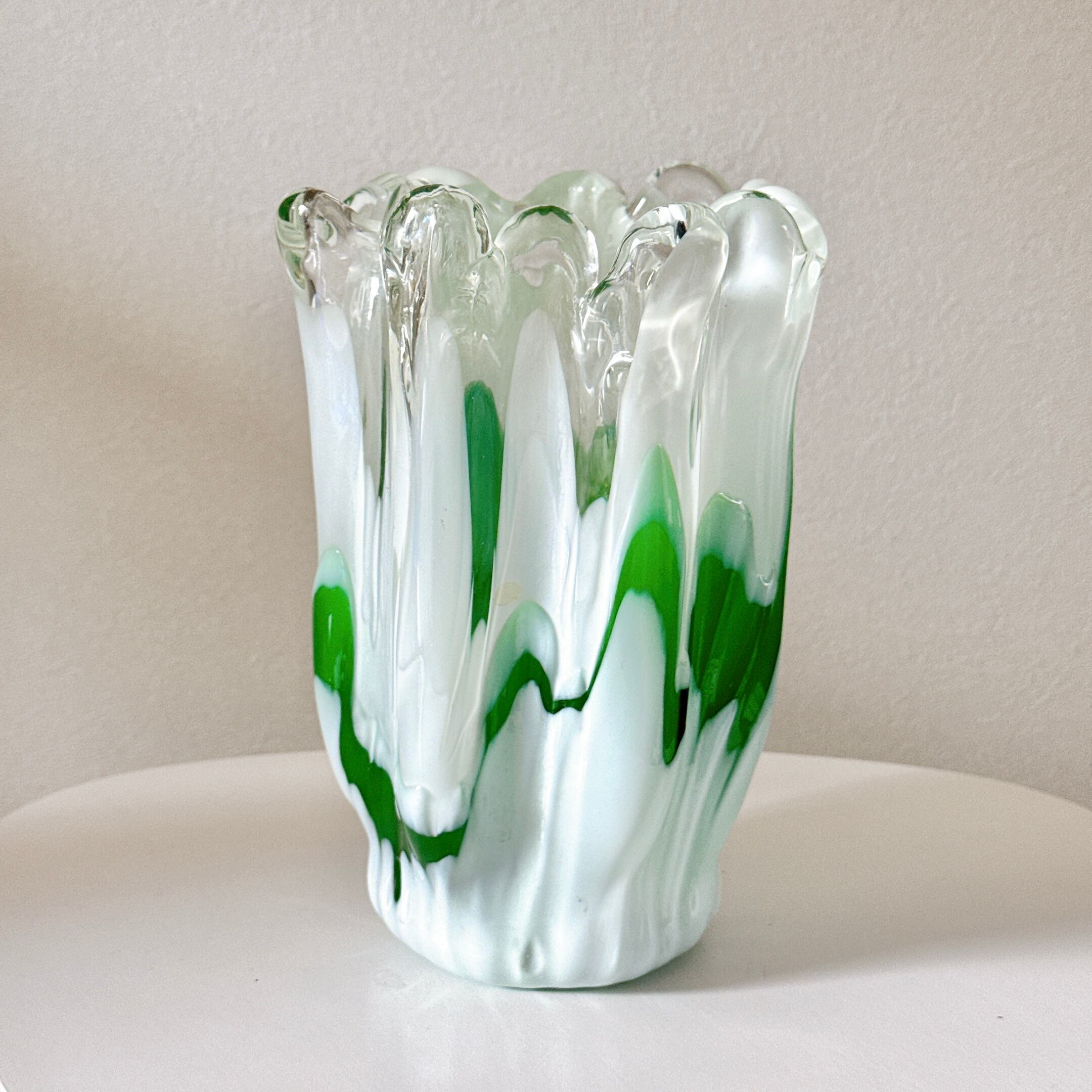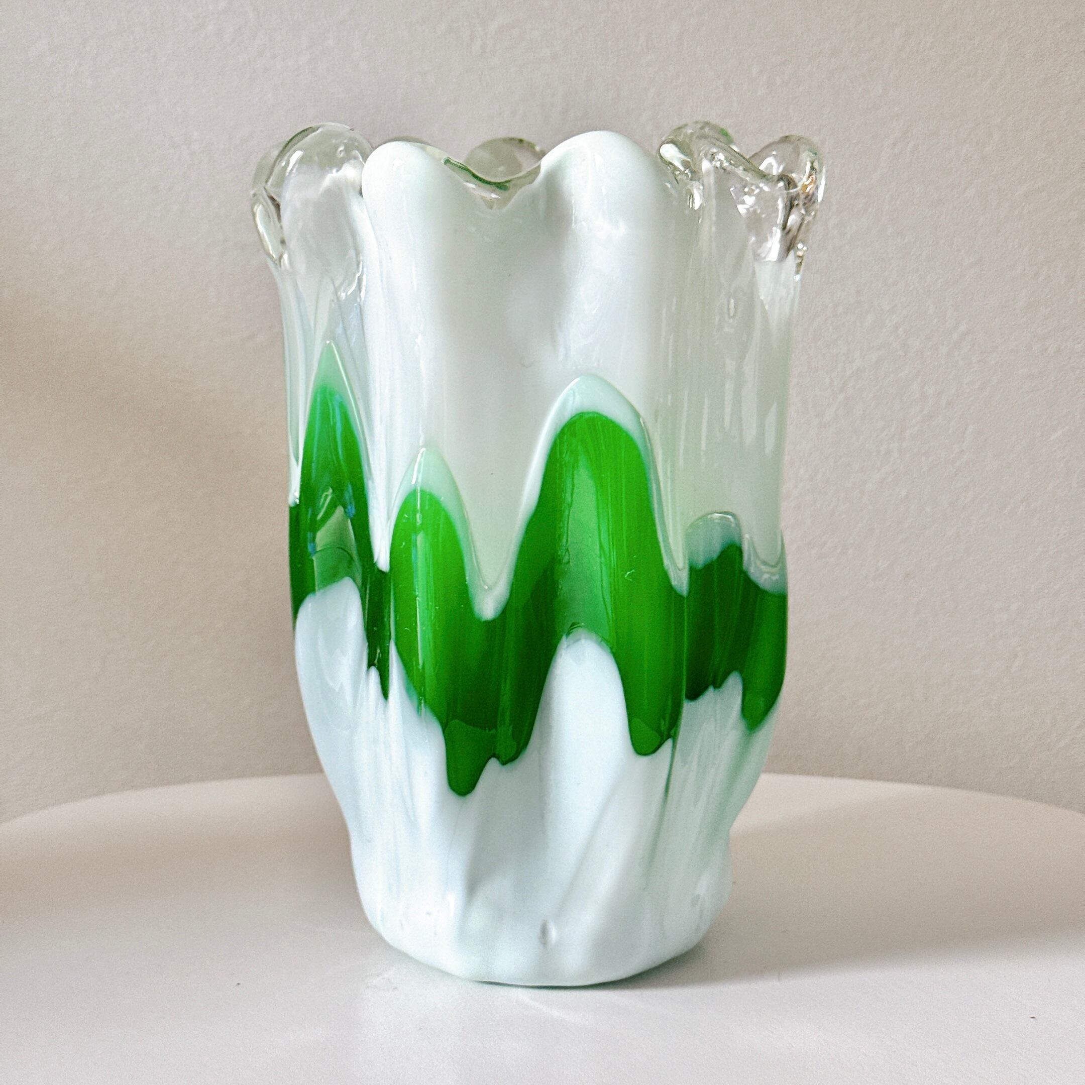 green and white vase