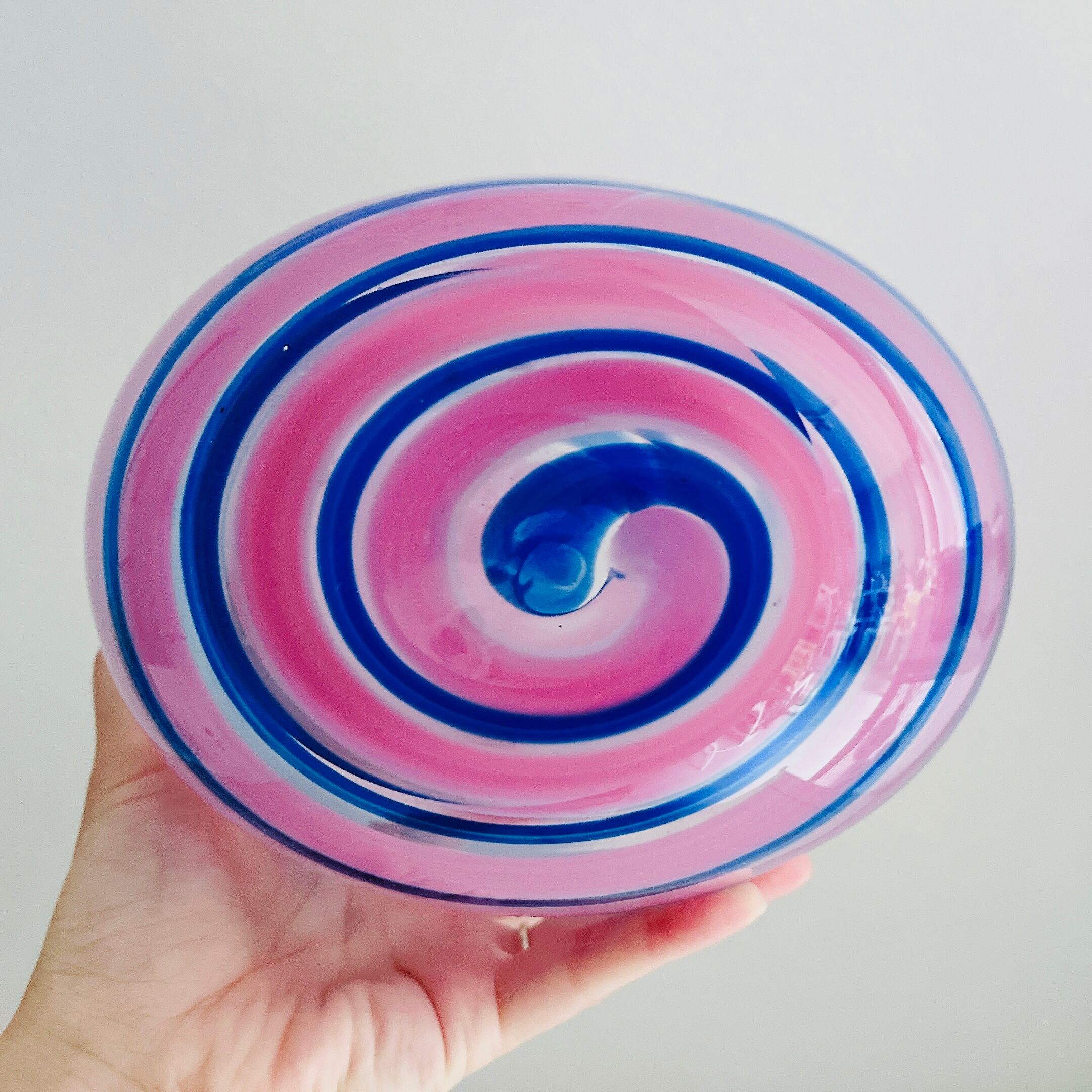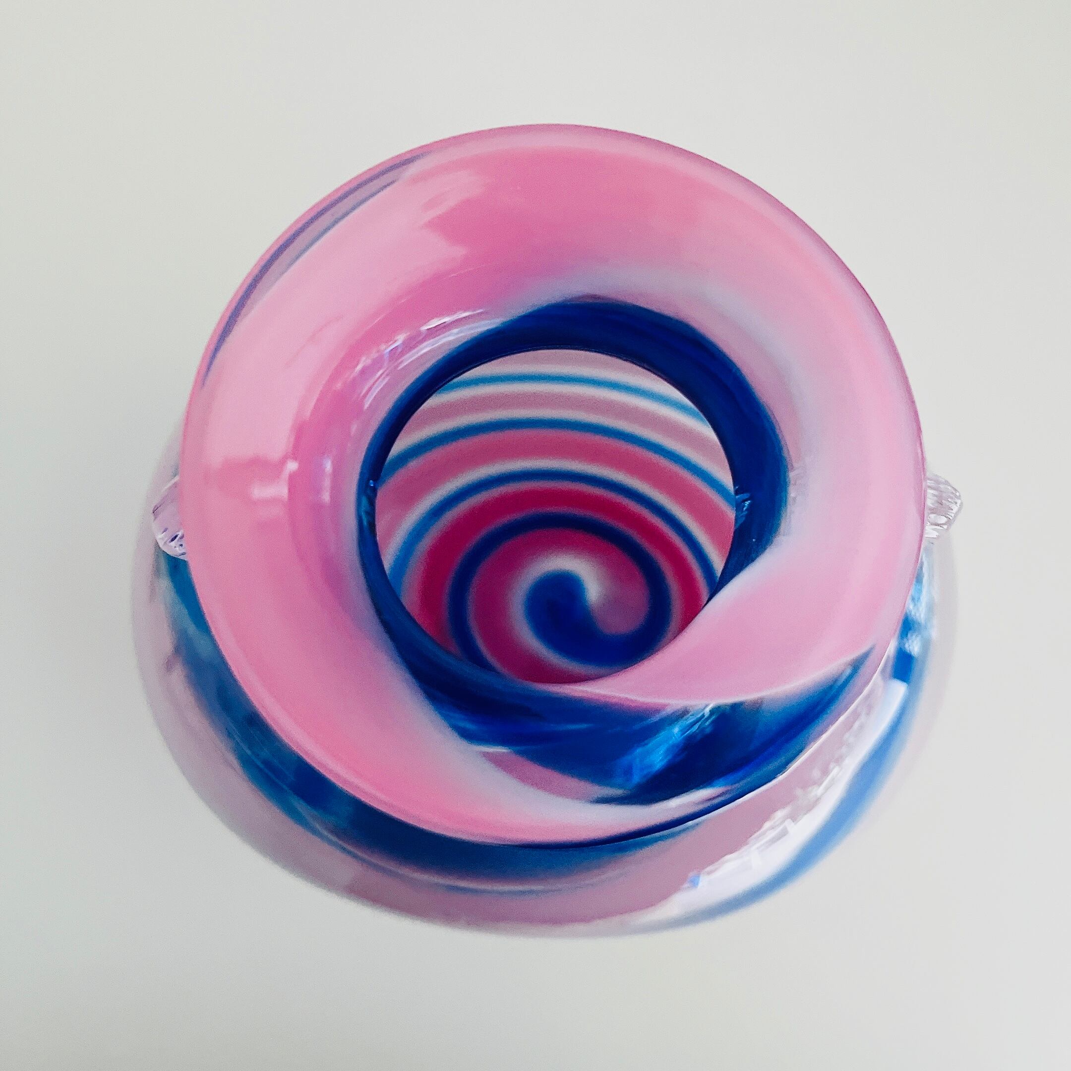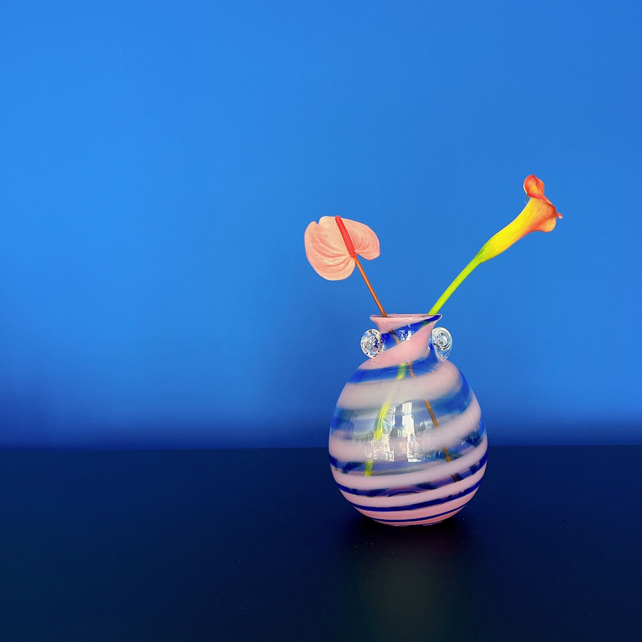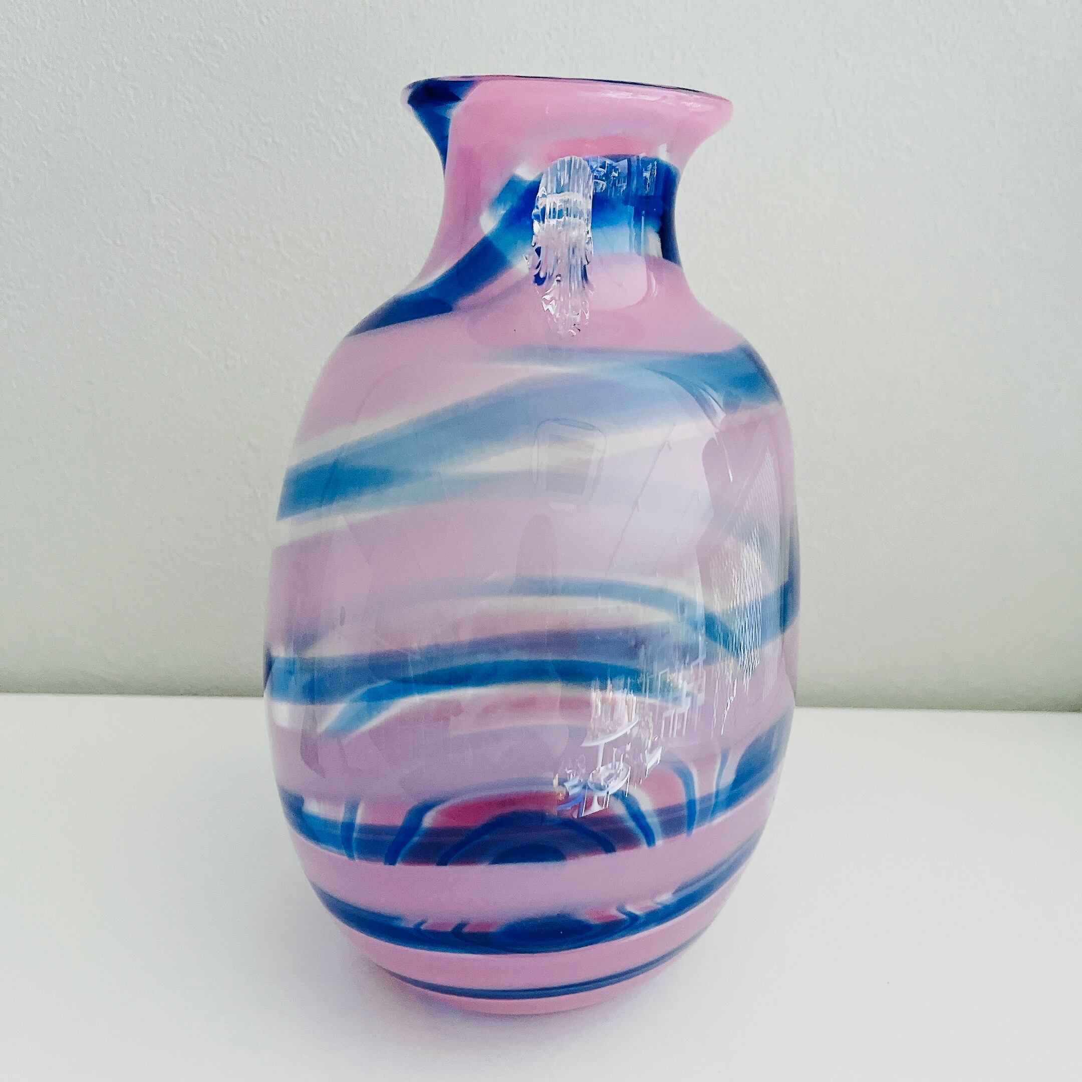 ピンクとブルーのマーブル模様が可愛い、昭和のレトロポップなヴィンテージフラワーベースです。1点ものになります。