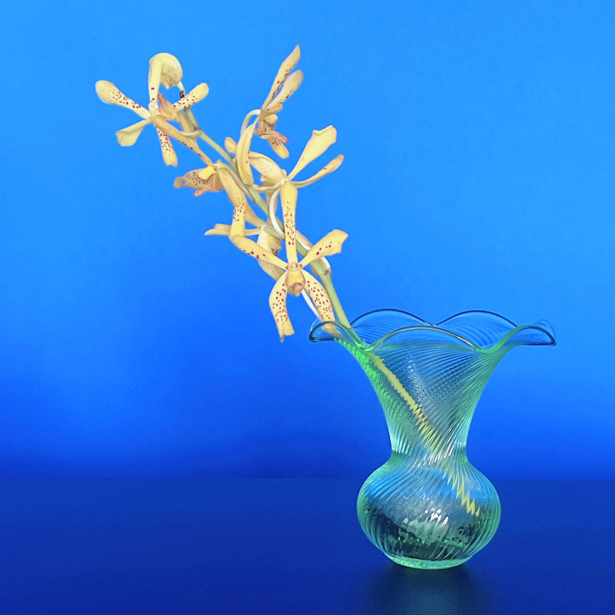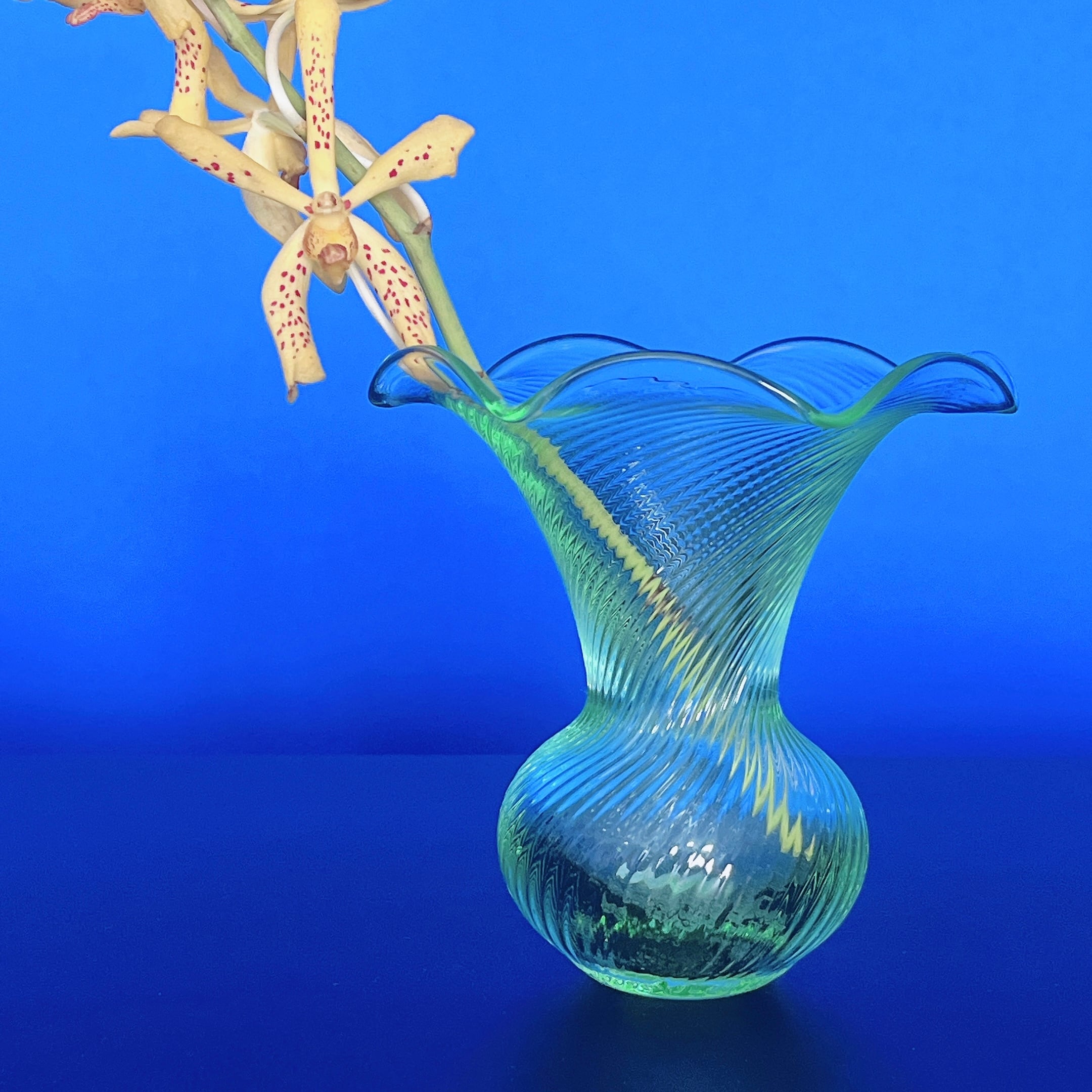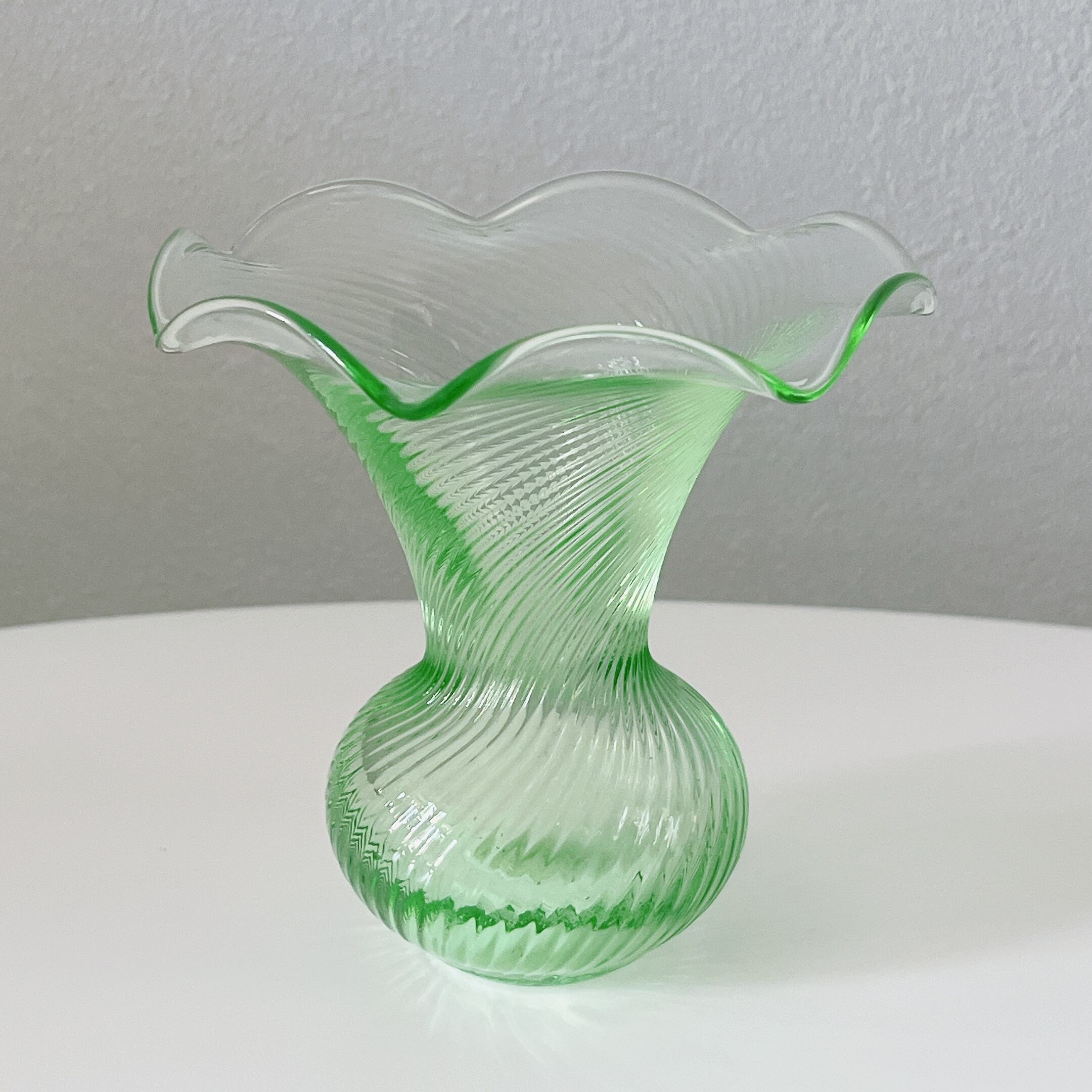 大きく広がったフリルの口が可愛い、イタリア製ヴィンテージフラワーベースです。1点ものになります。