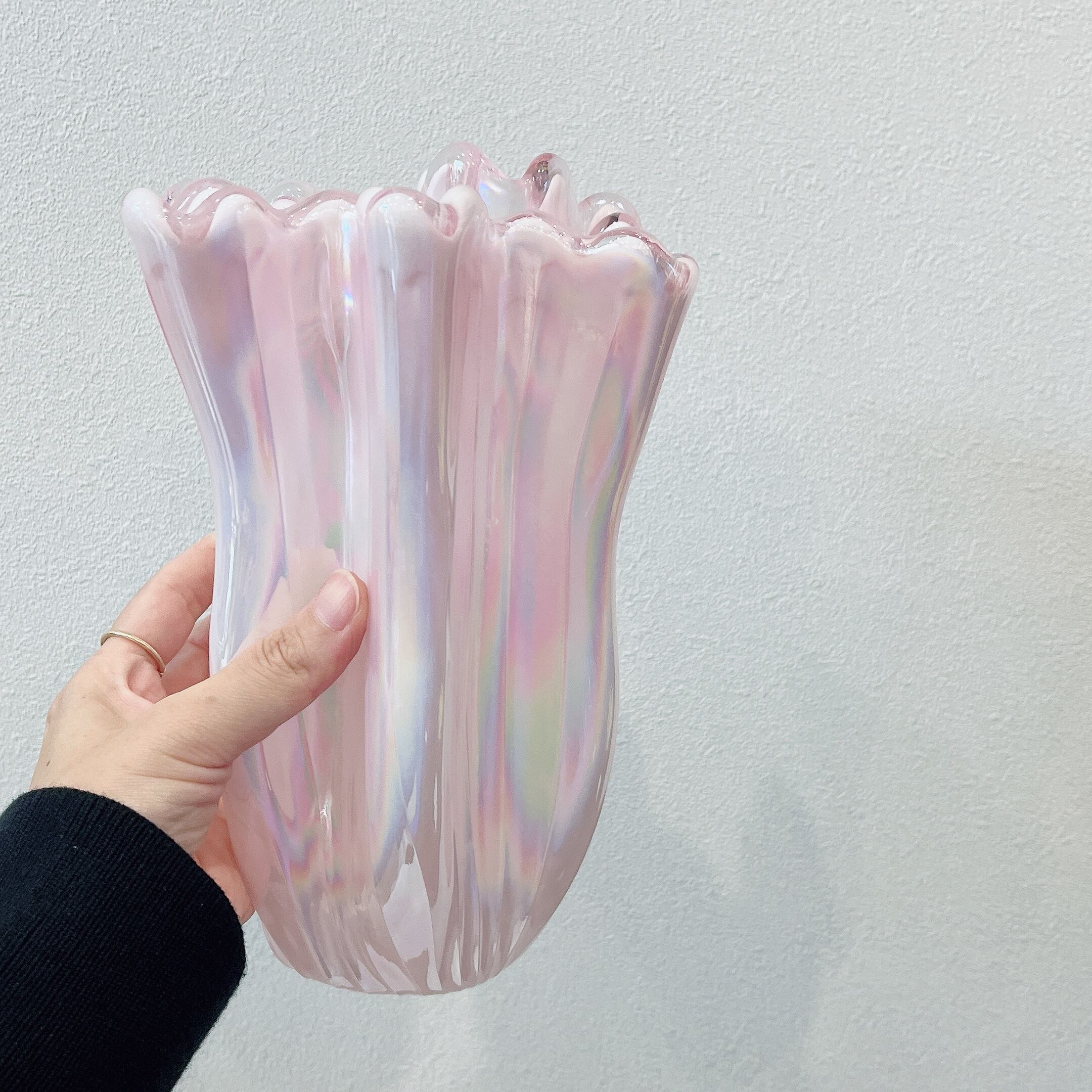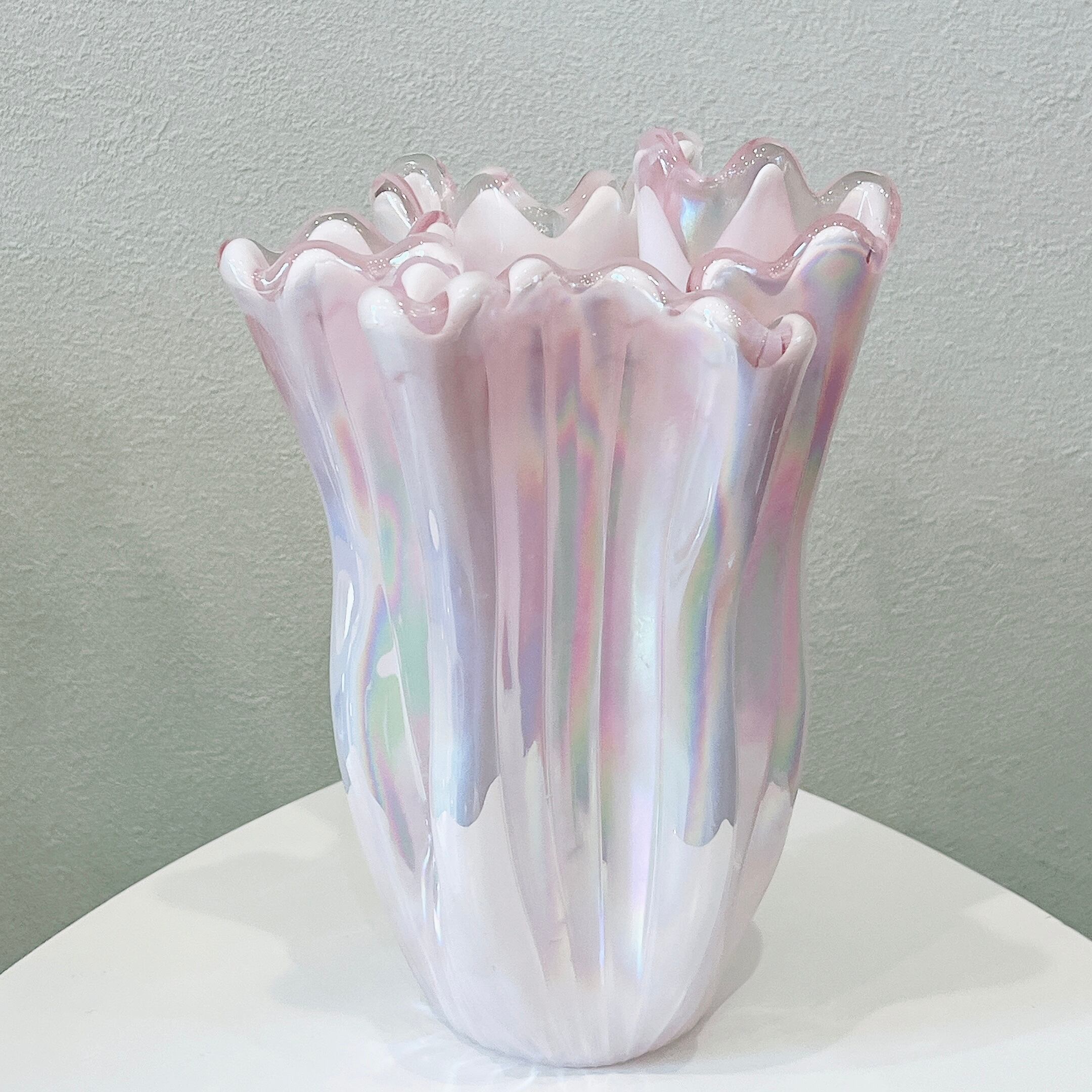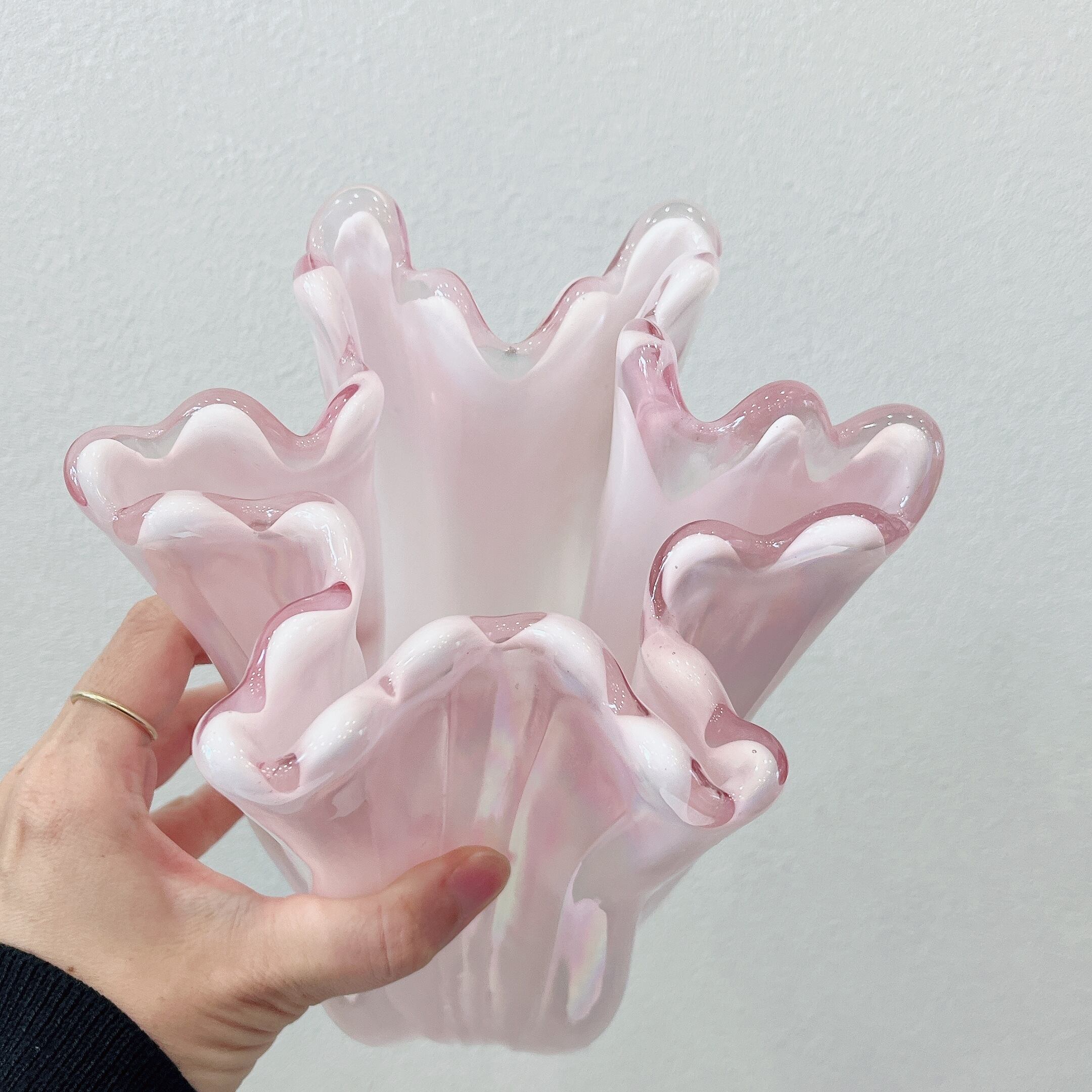 フリルが可愛い、昭和のレトロポップなヴィンテージフラワーベースです。全て手作りで、ひとつひとつ形が違うため、1点ものになります。